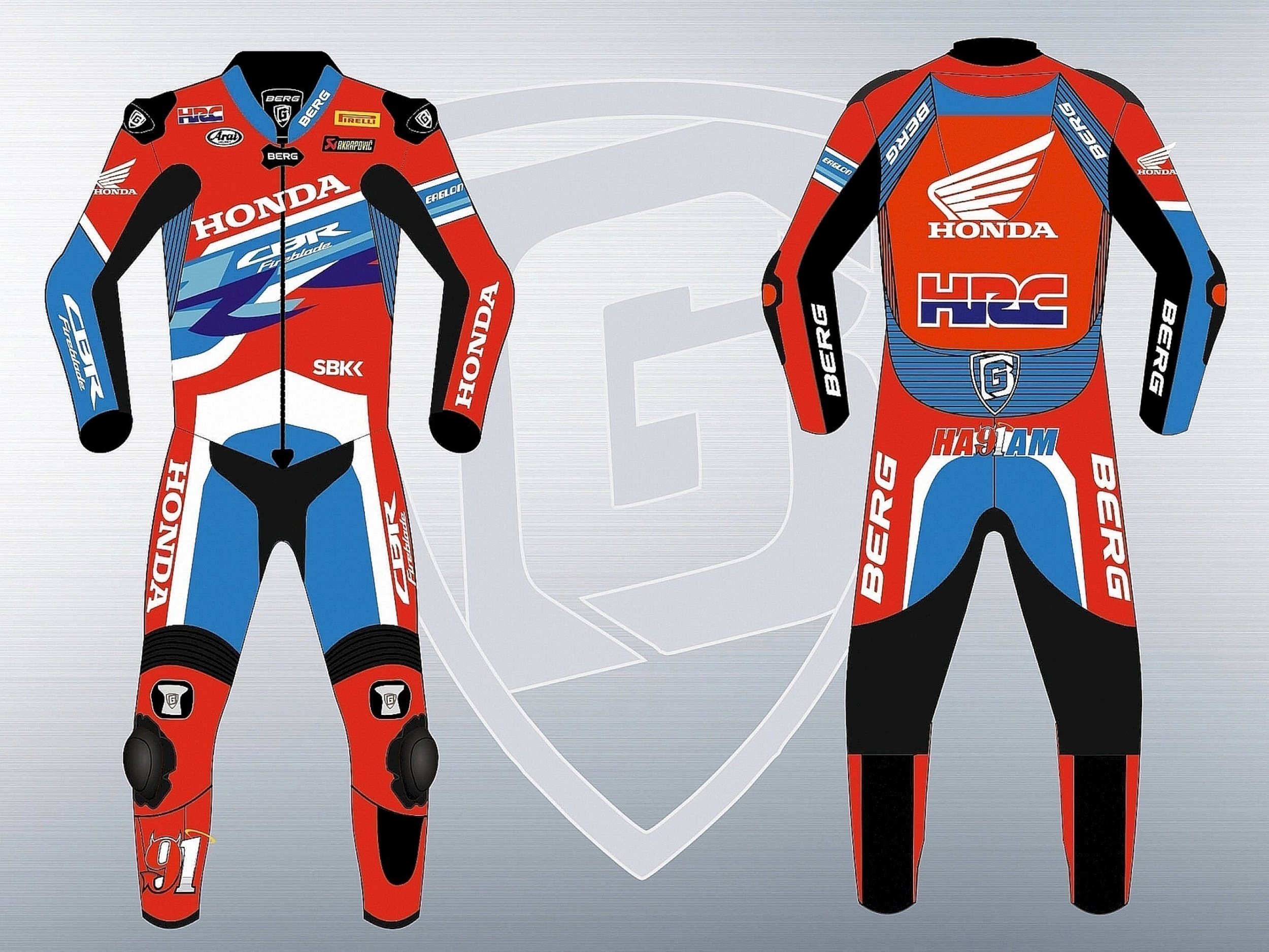 Мотокомбинезон BERG Honda Белый Красный Синий Голубой