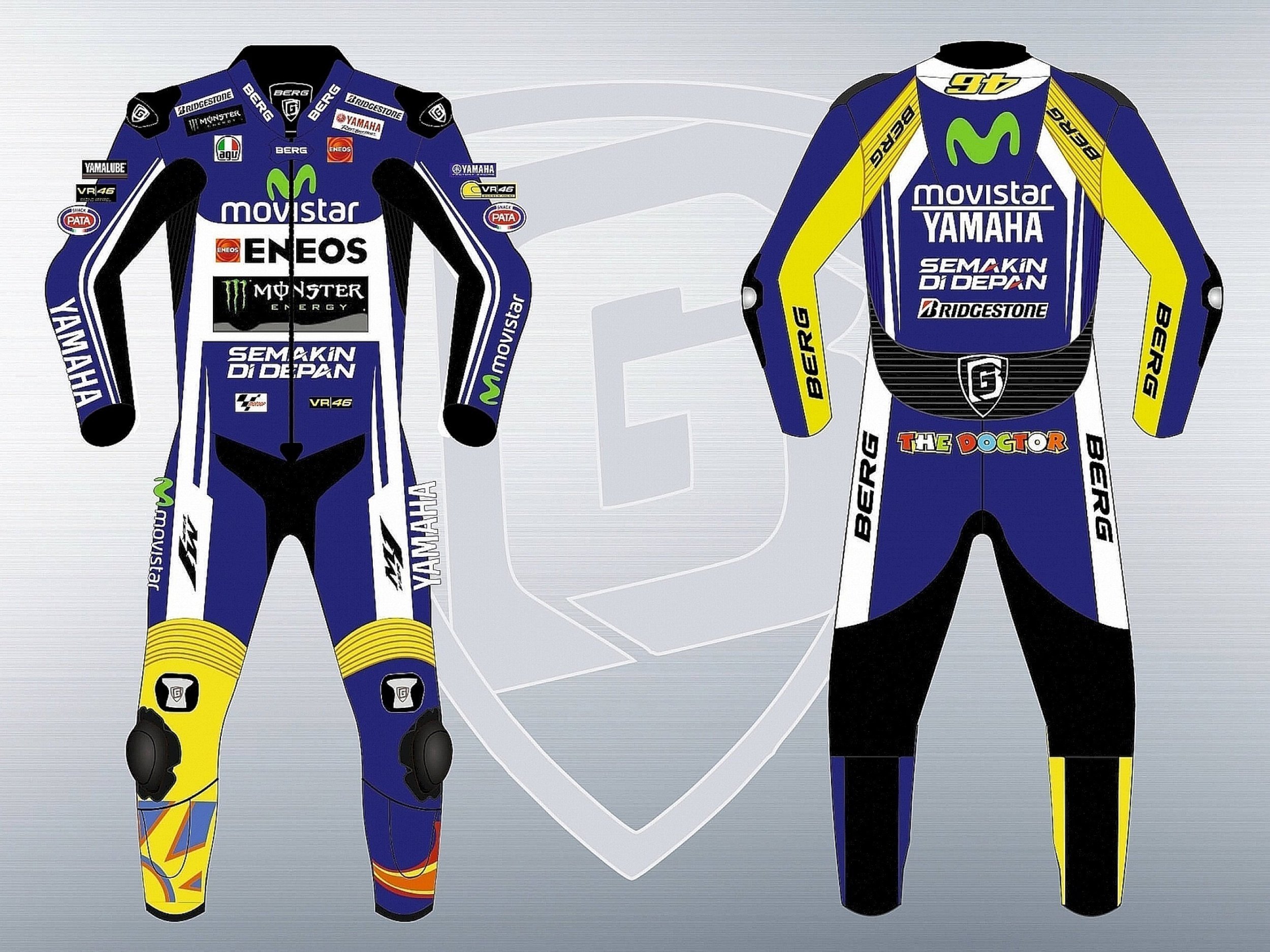Мотокомбинезон BERG Yamaha Белый Желтый Синий Monster