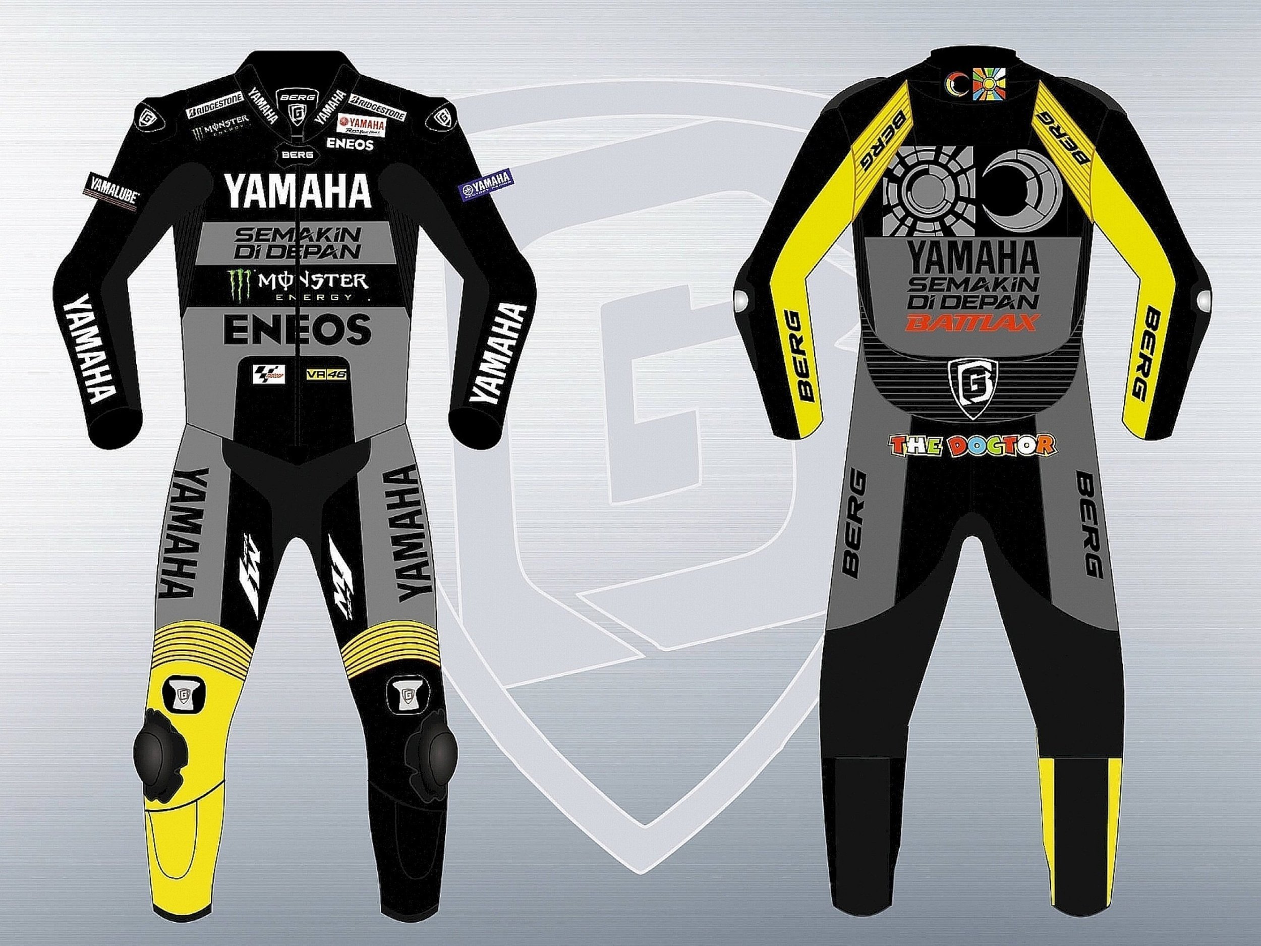 Мотокомбинезон BERG Yamaha Белый Желтый Серый Черный