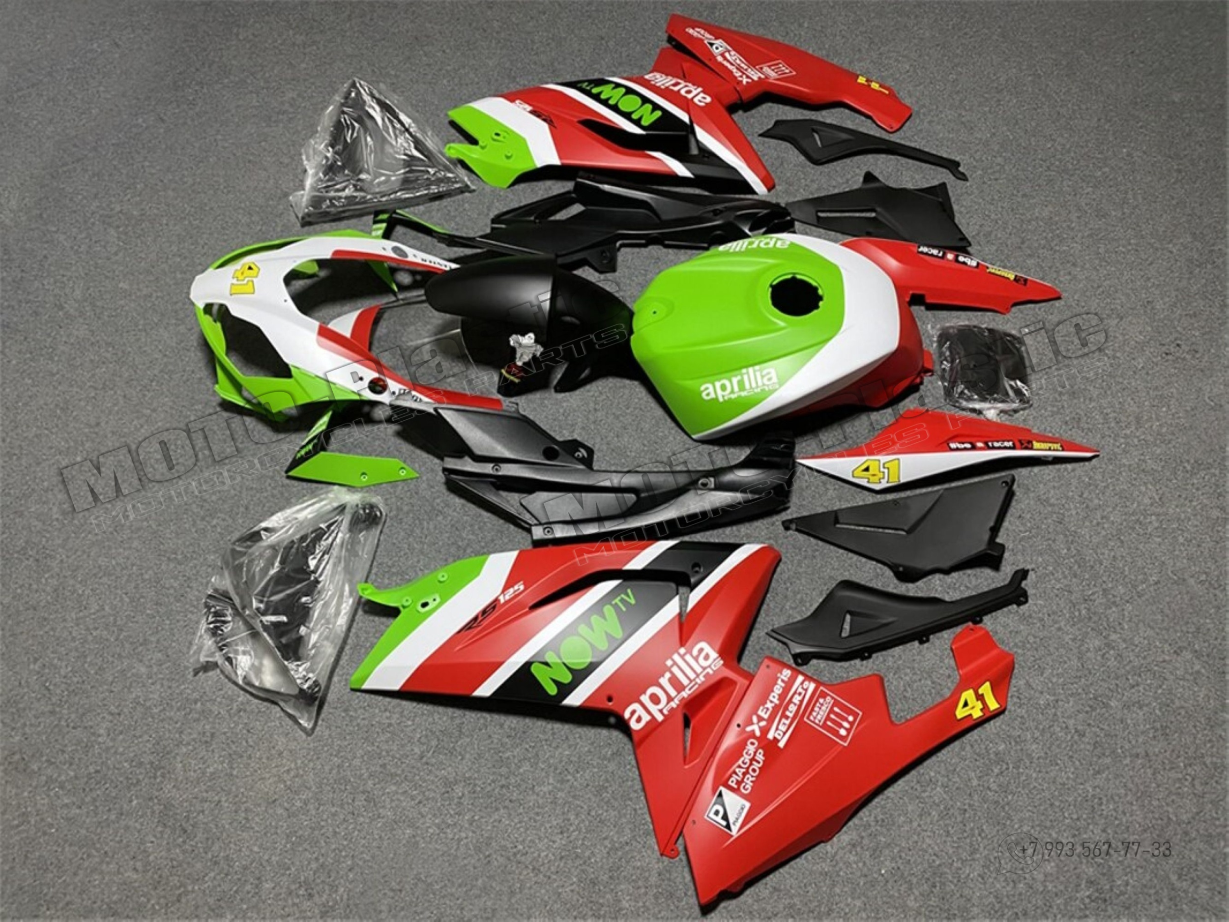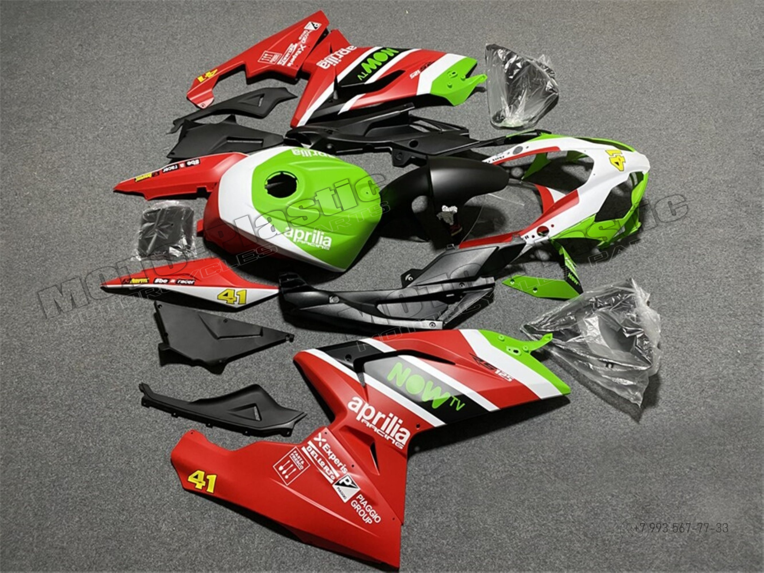 Комплект пластика Aprilia RS125 2006-2011 Repsol Черный Красный Зеленый Белый
