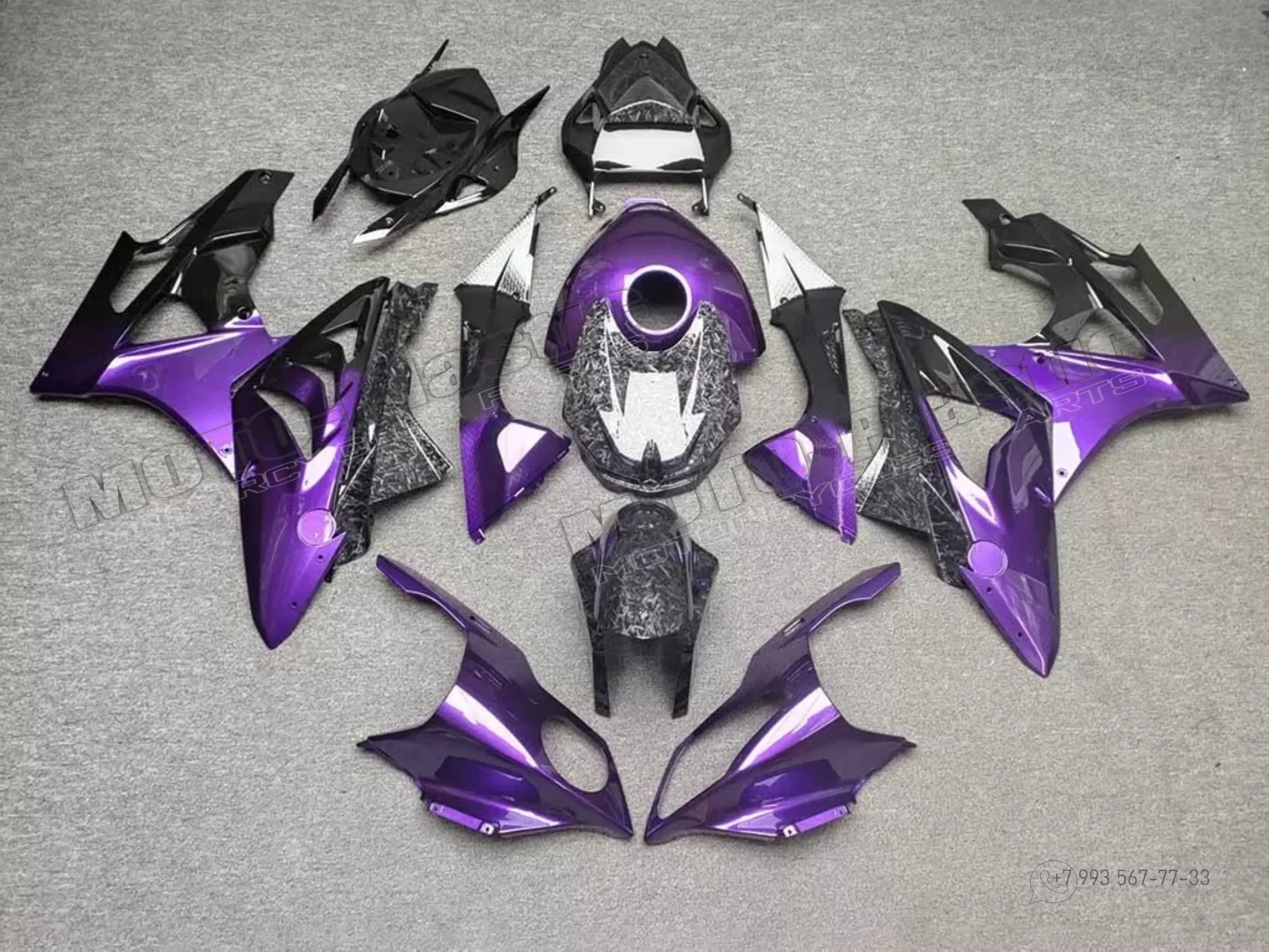 Комплект пластика BMW S1000RR 2015-2016 Аквапринт карбон (углеткань) Фиолетовый Карбон аквапринт Черный