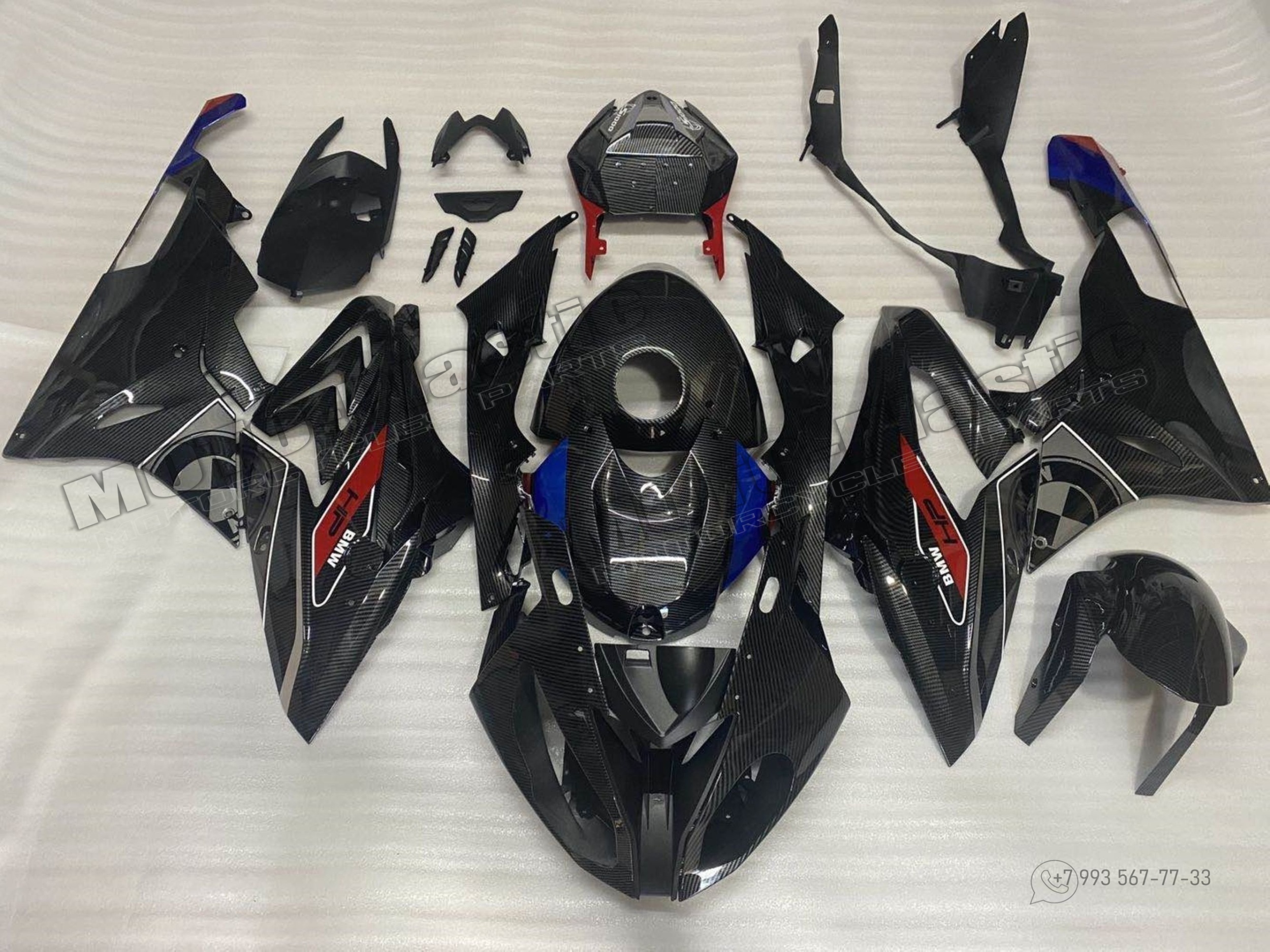 Комплект пластика BMW S1000RR 2017-2018 Карбон аквапринт Черный Синий Красный
