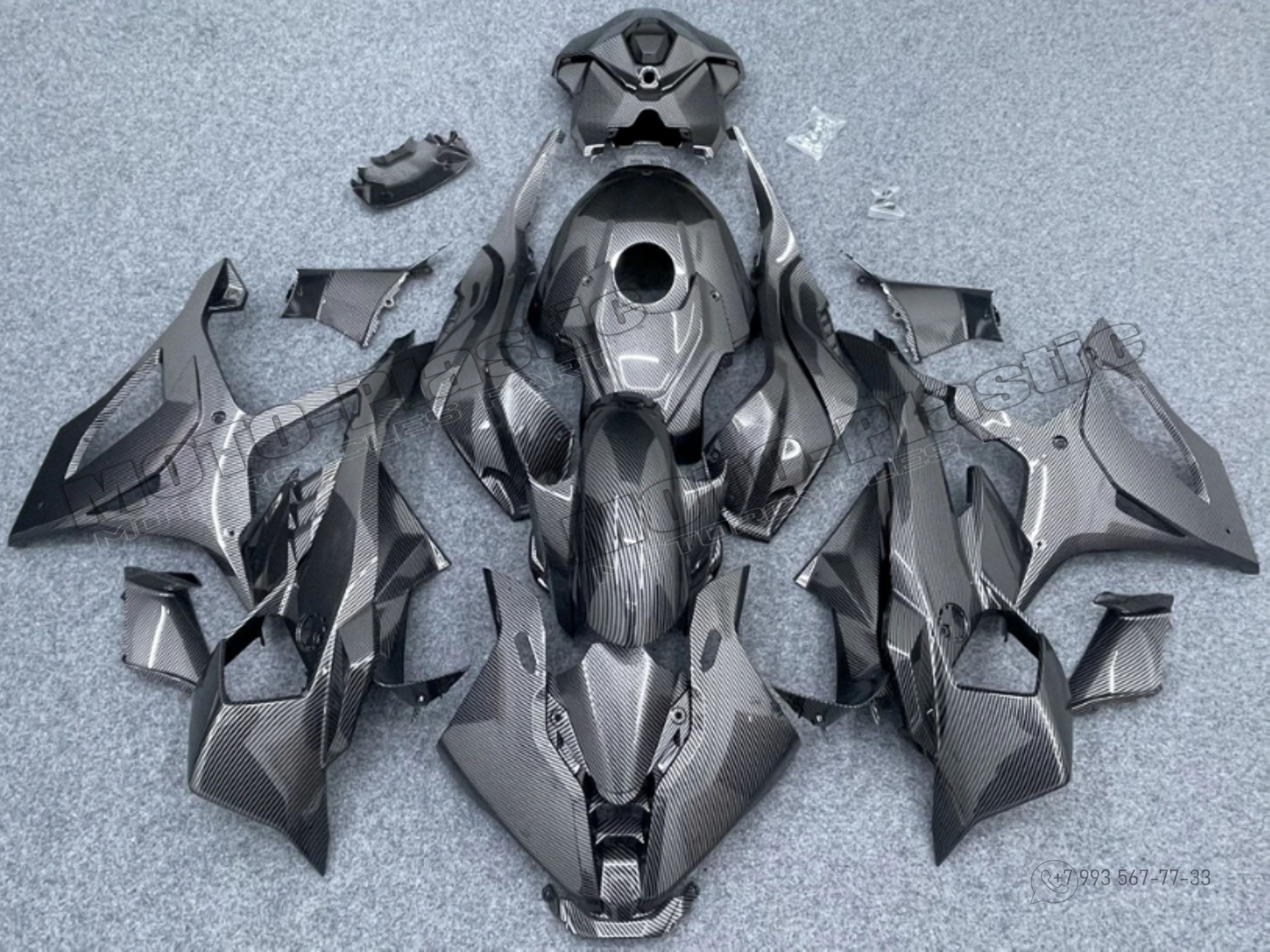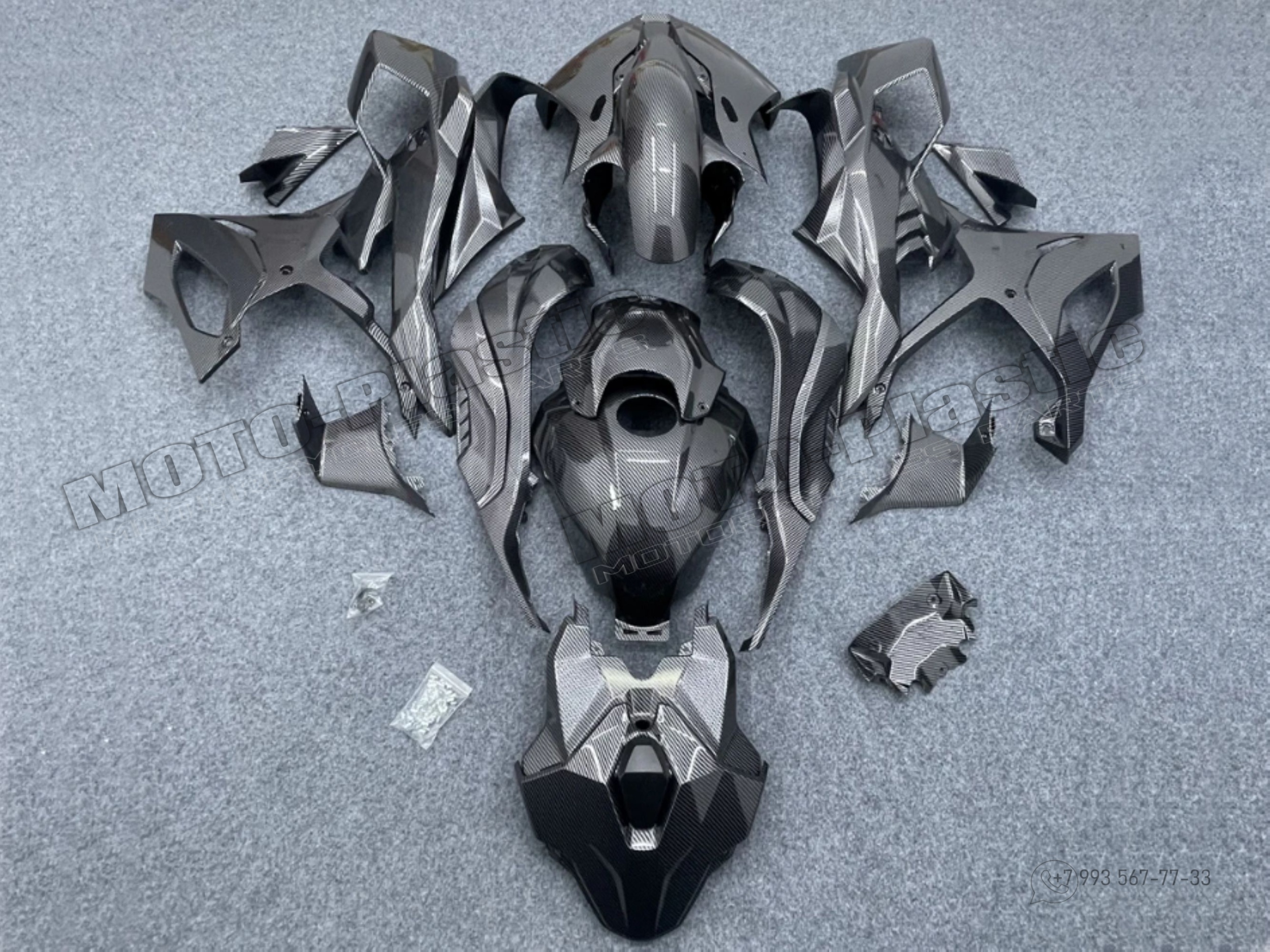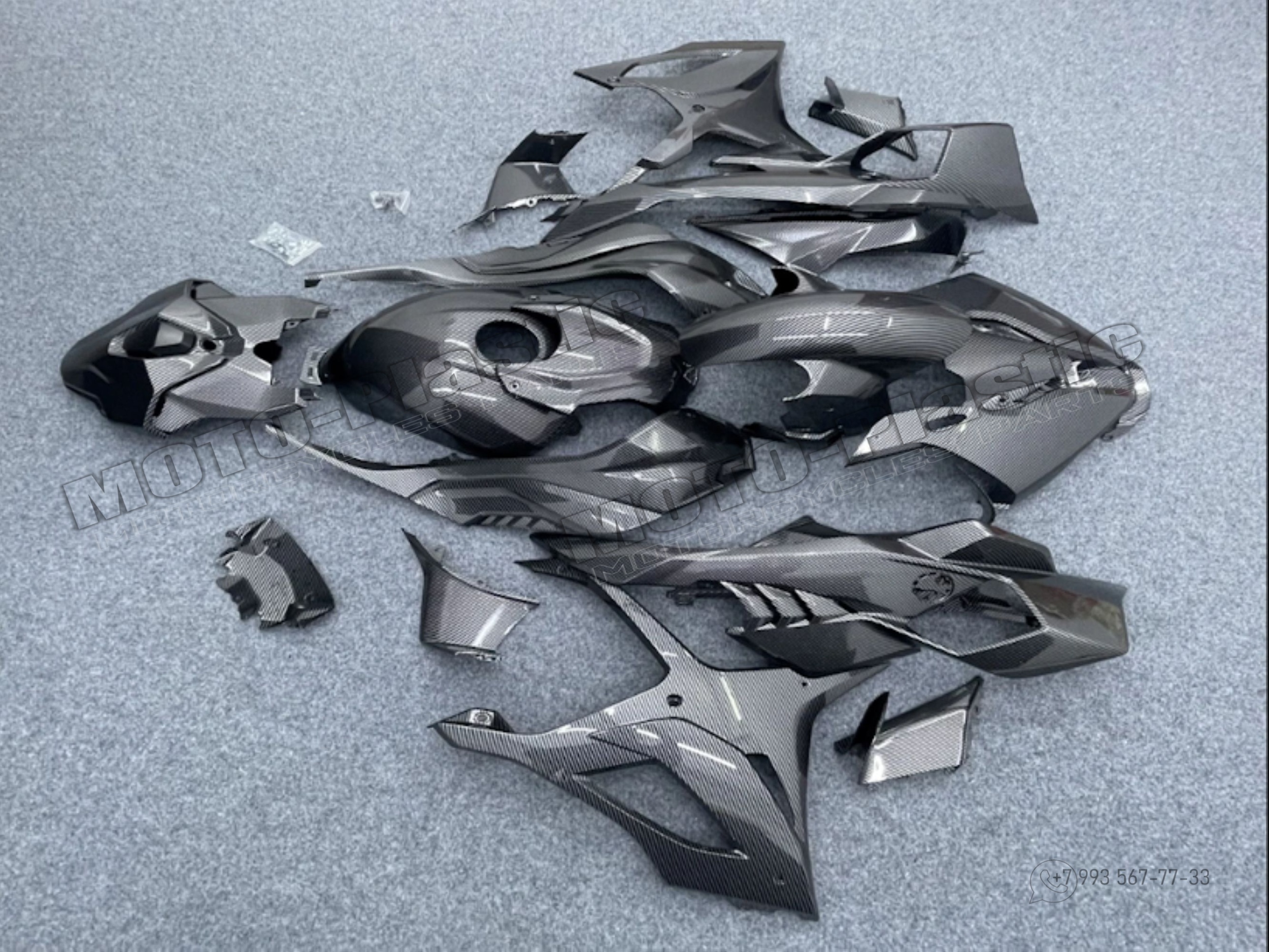 Комплект пластика BMW S1000RR 2025. / аквапринт карбон (углеткань) Карбон аквапринт Серый Черный