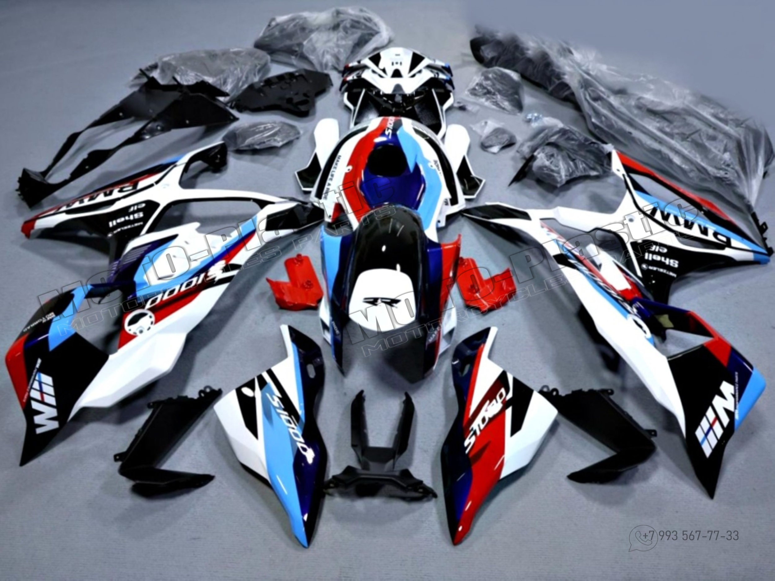 Комплект пластика BMW S1000RR 2025. Голубой Черный Красный Белый