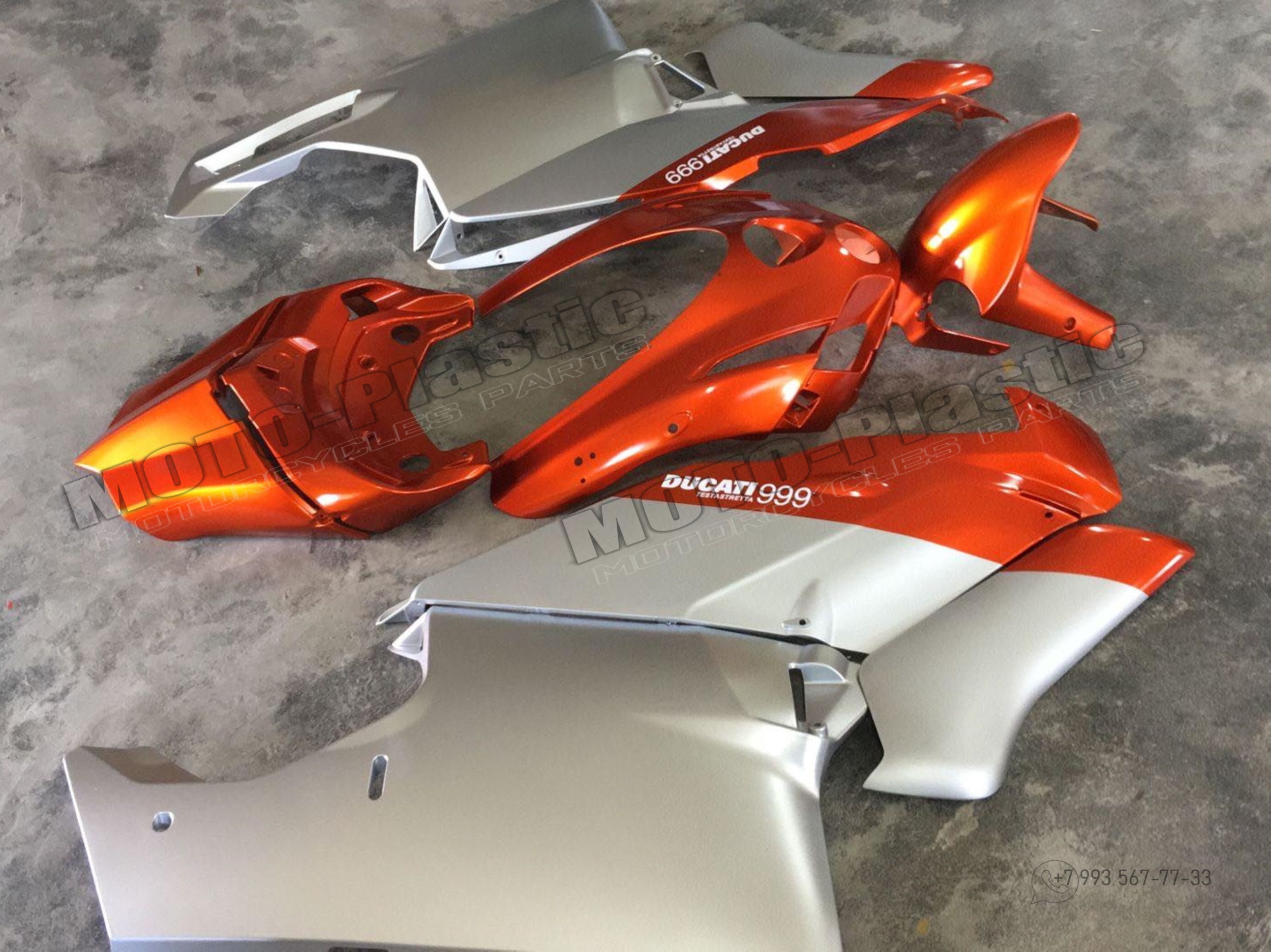 Комплект пластика Ducati 999/749 2003-2004 Серебряный Оранжевый