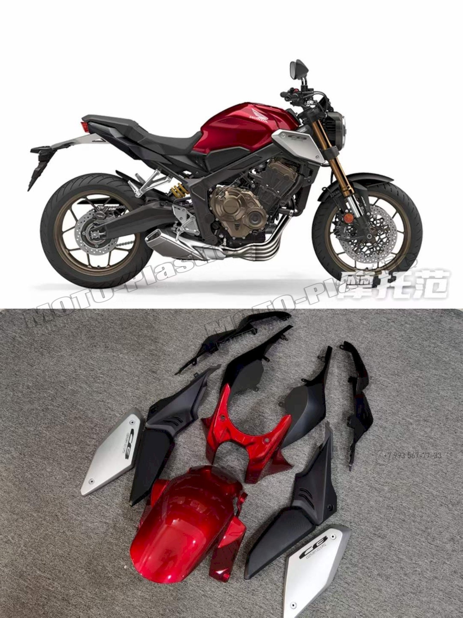 Комплект пластика Honda CB650R 2019-2020 Черный Серебряный Красный