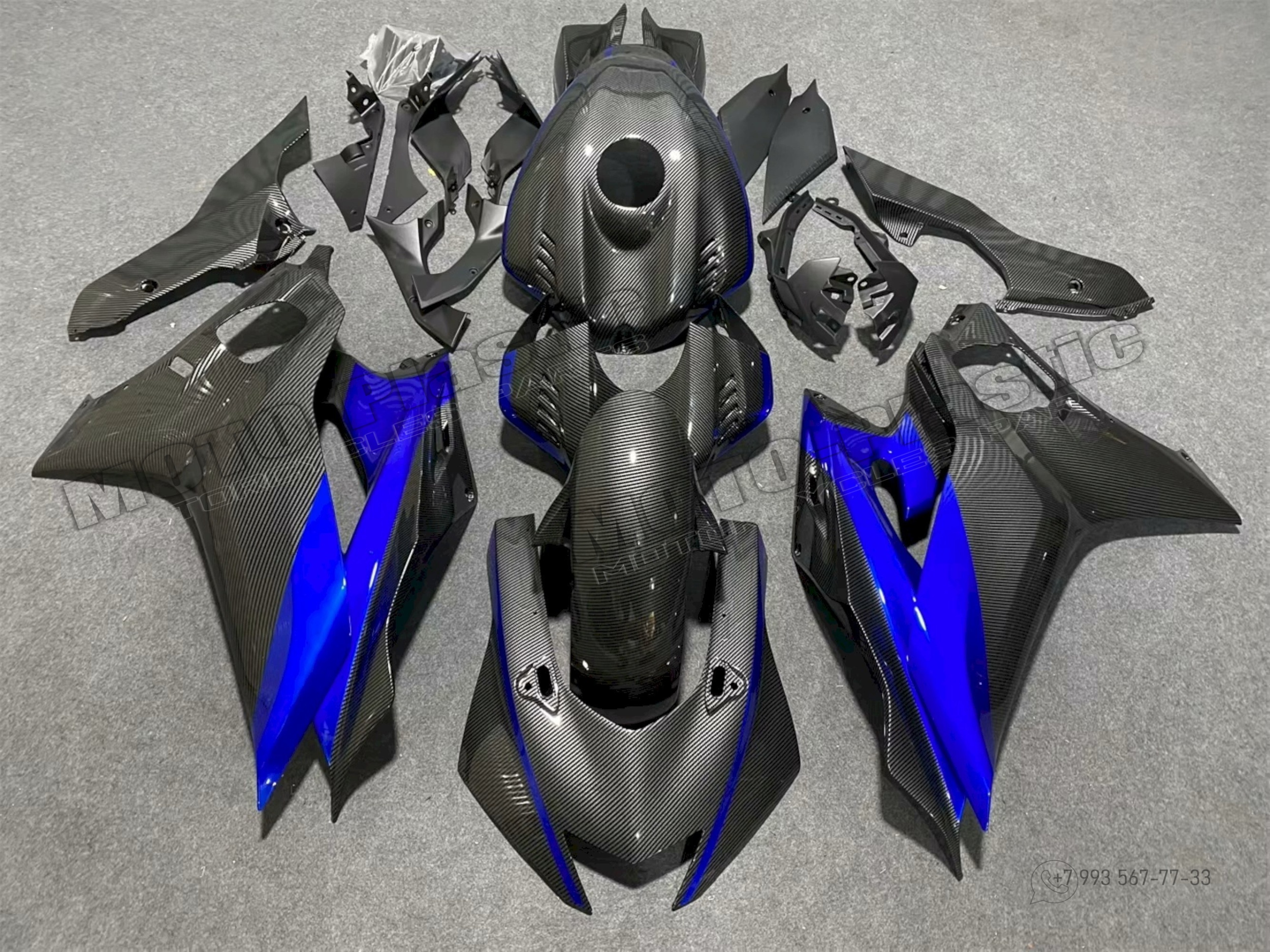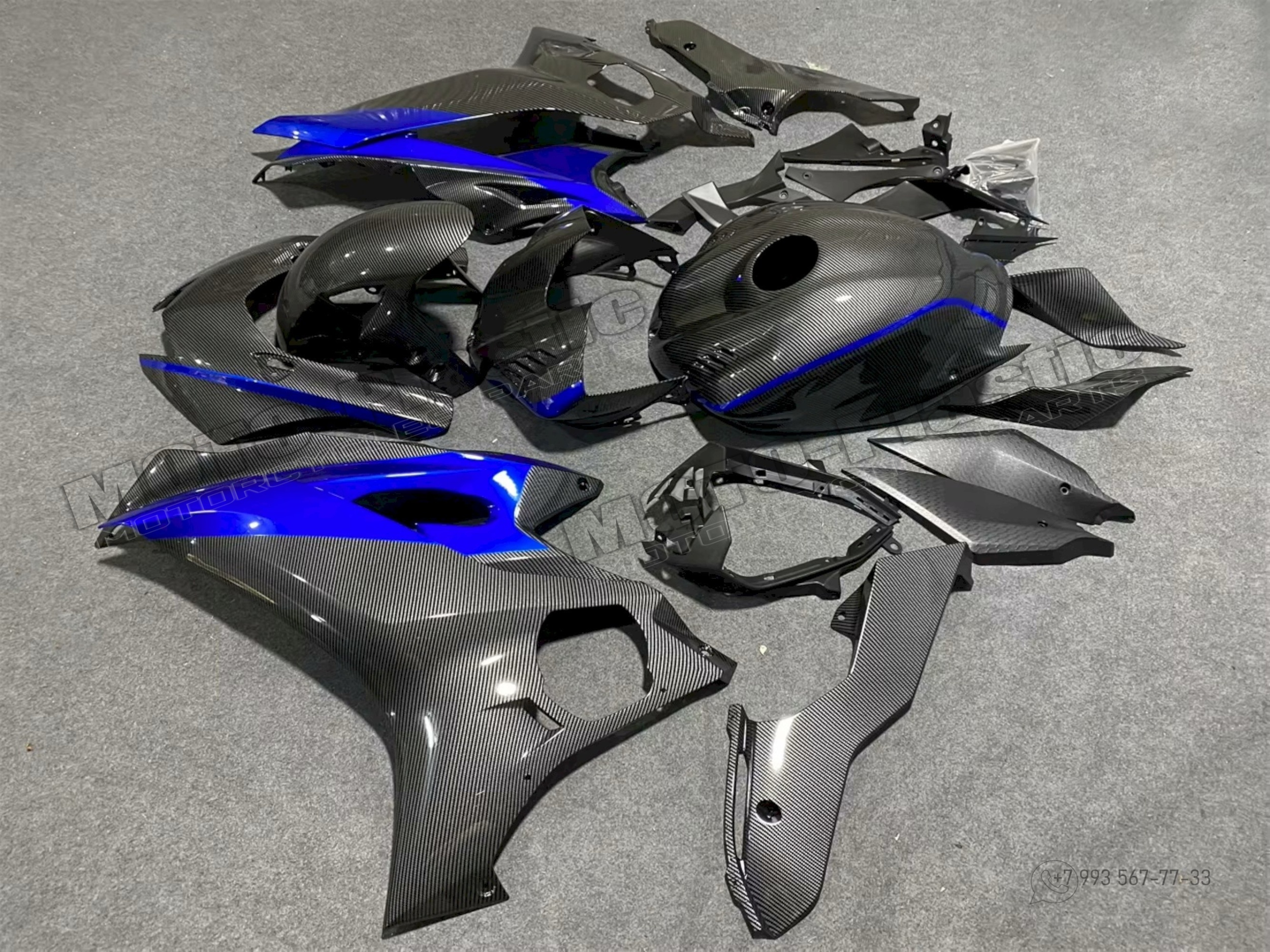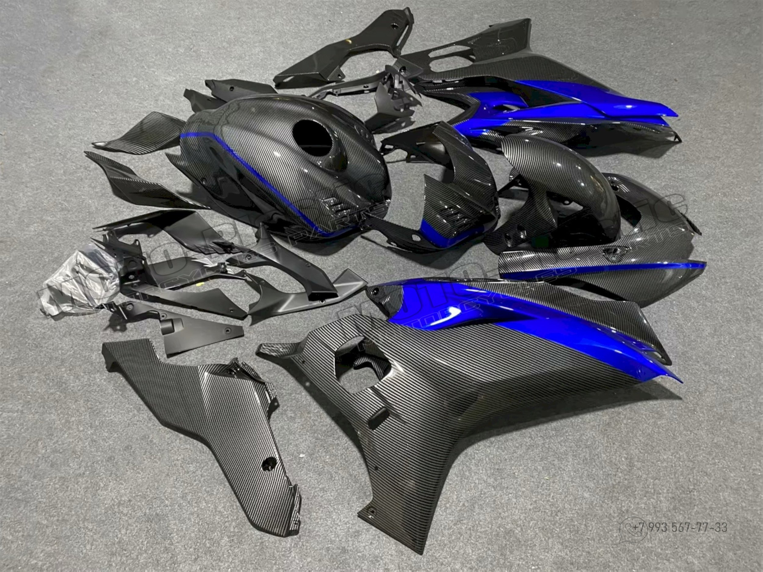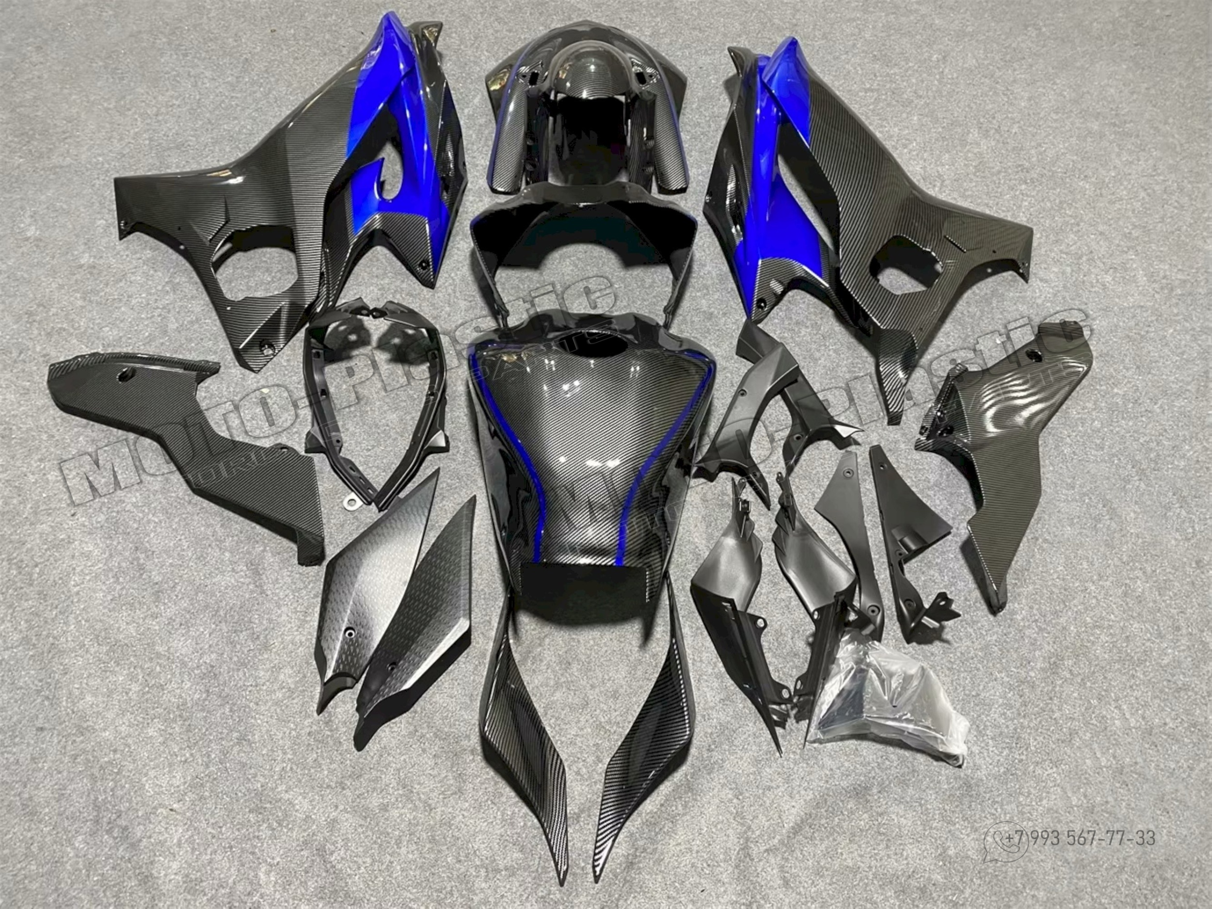 Комплект пластика Honda CBR1000RR-R 2020-2022 / АКВАПРИНТ КАРБОН (УГЛЕТКАНЬ) Карбон аквапринт Серый Синий Черный