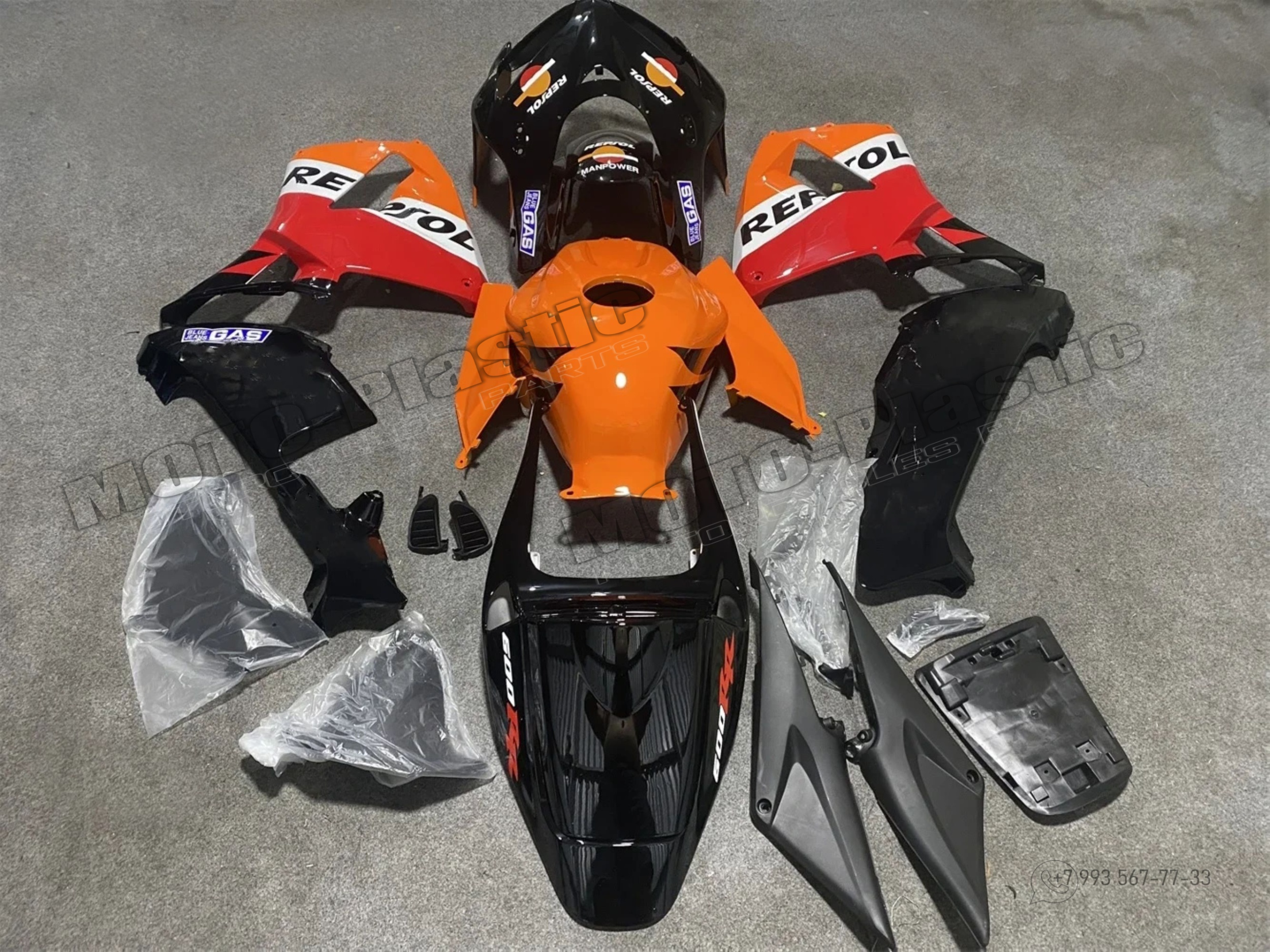 Комплект пластика Honda CBR600RR 2005-2006 Красный Оранжевый Белый Черный Repsol