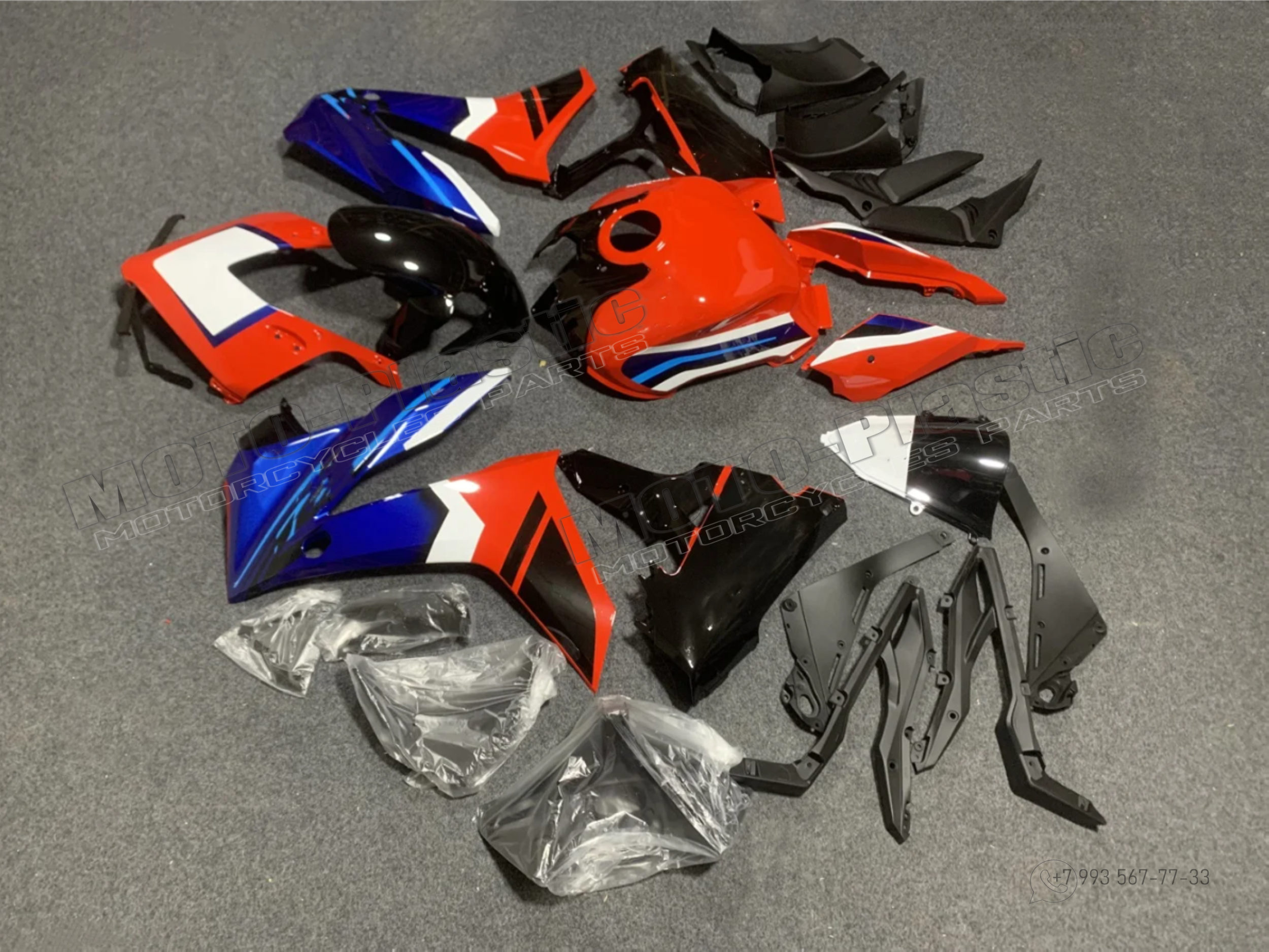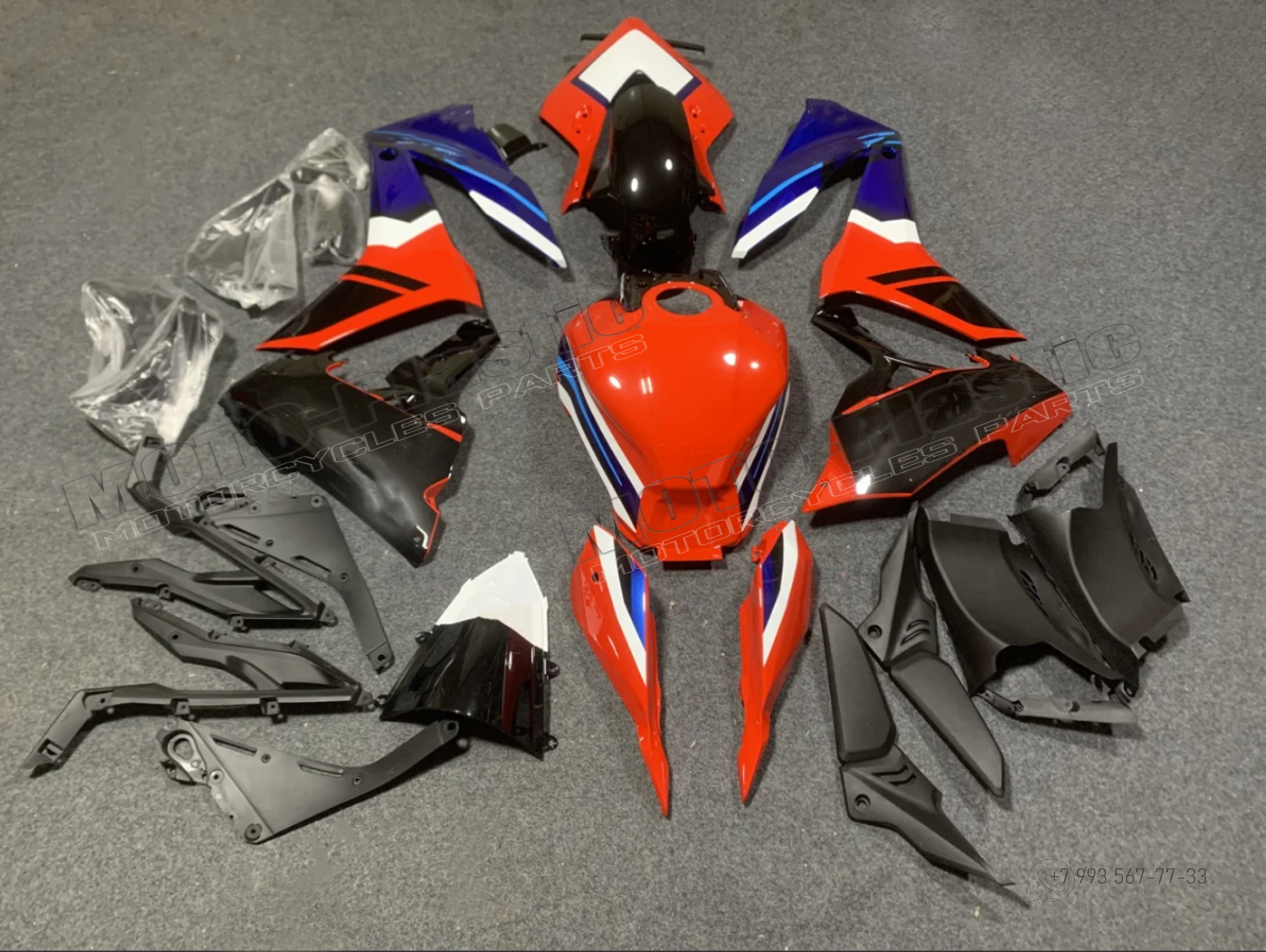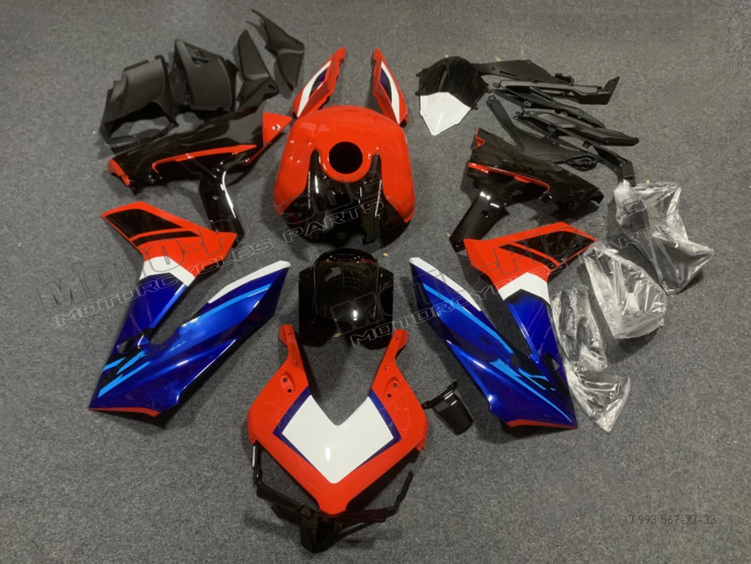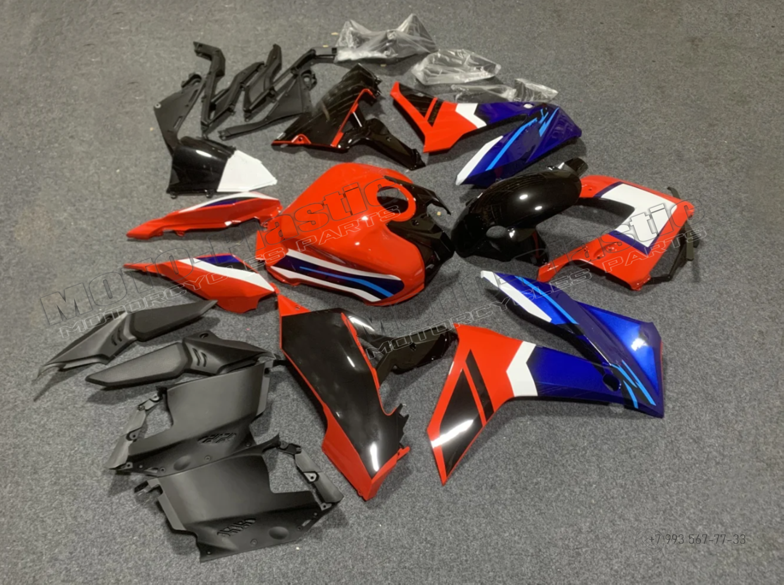 Комплект пластика Honda CBR650R 2023-2024. Черный Синий Красный Белый
