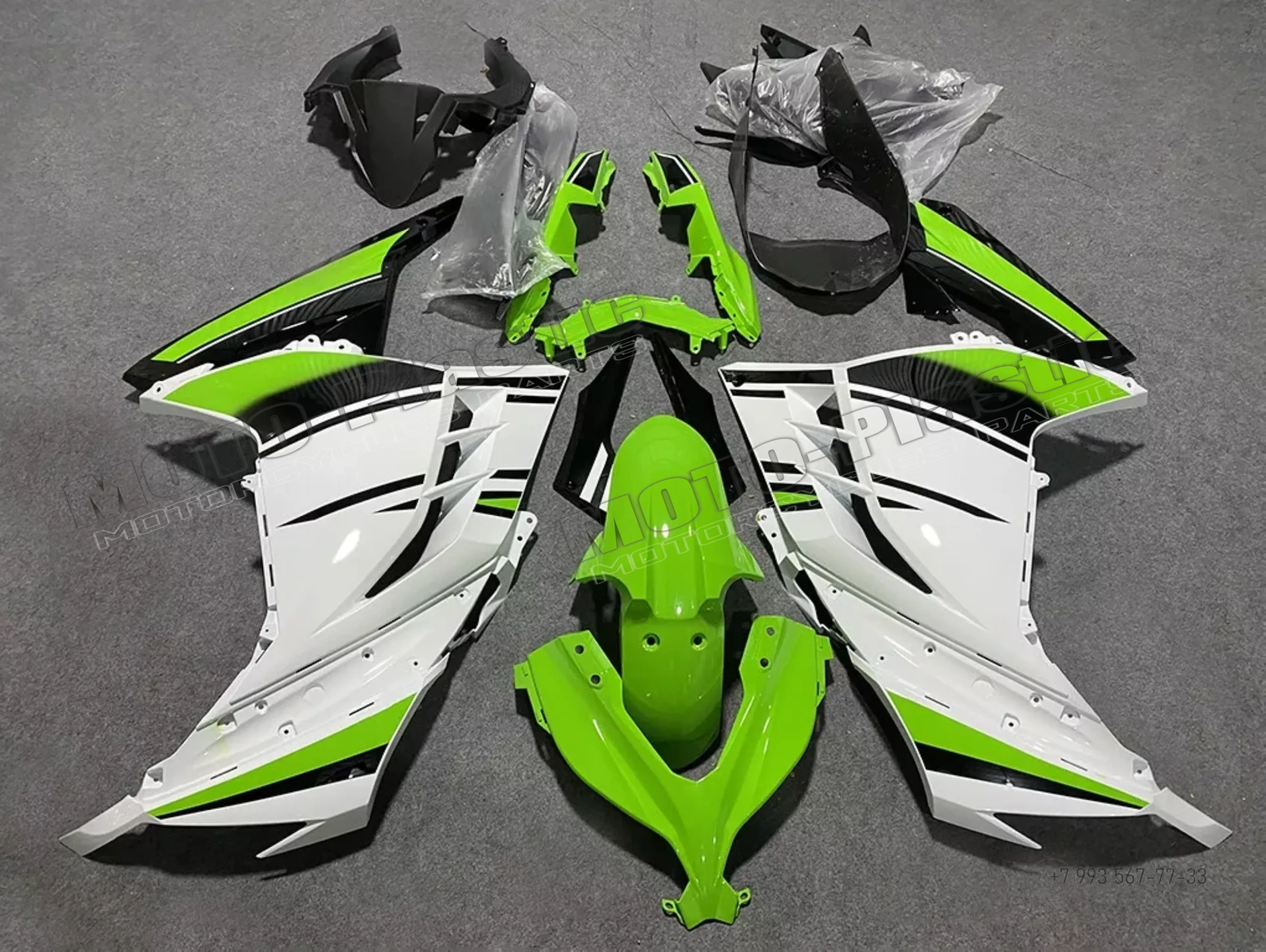 Комплект пластика Kawasaki ZX-300R 2013-2019 Черный Зеленый Белый