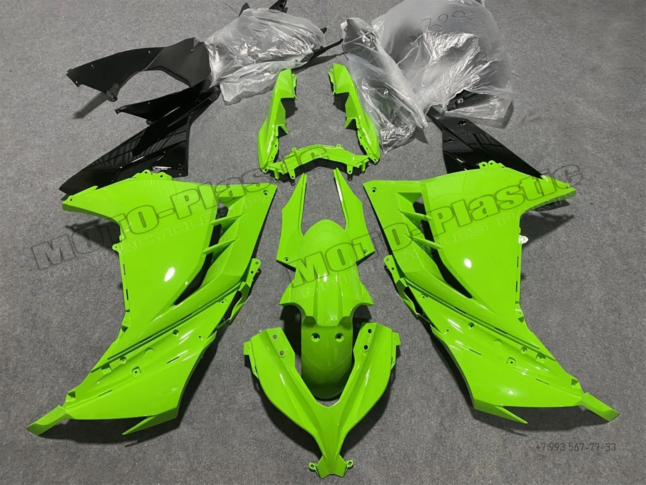 Комплект пластика Kawasaki ZX-300R 2013-2019 Зеленый Черный
