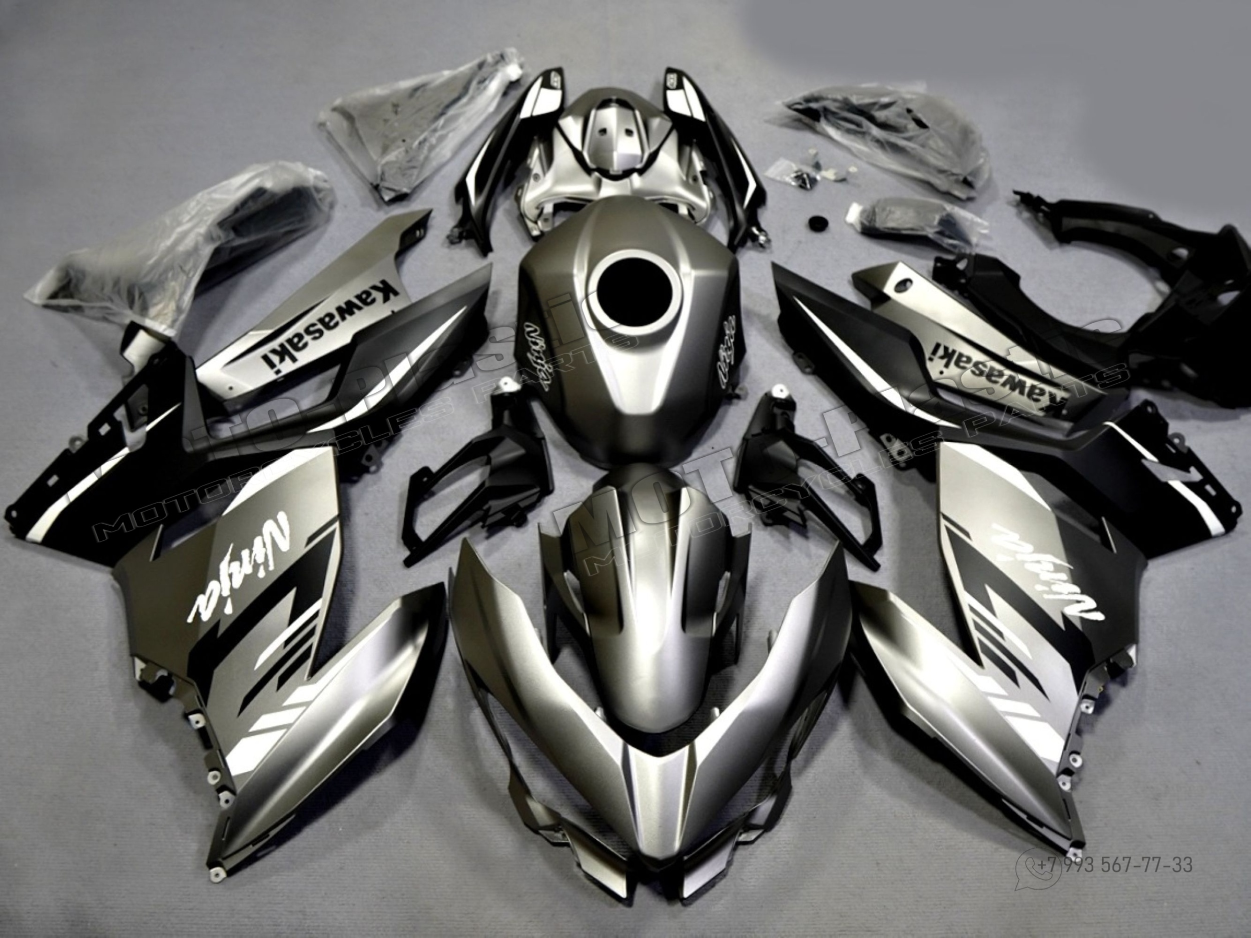 Комплект пластика Kawasaki Ninja 400 2018-2023 Черный Белый Серый