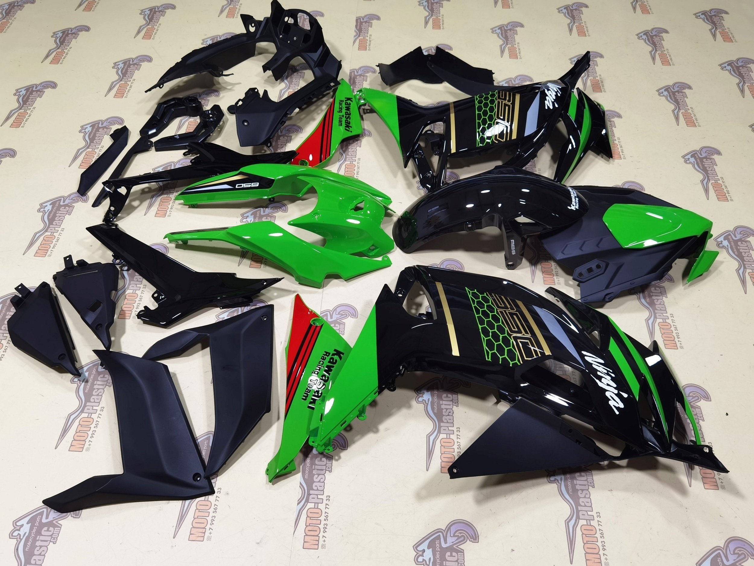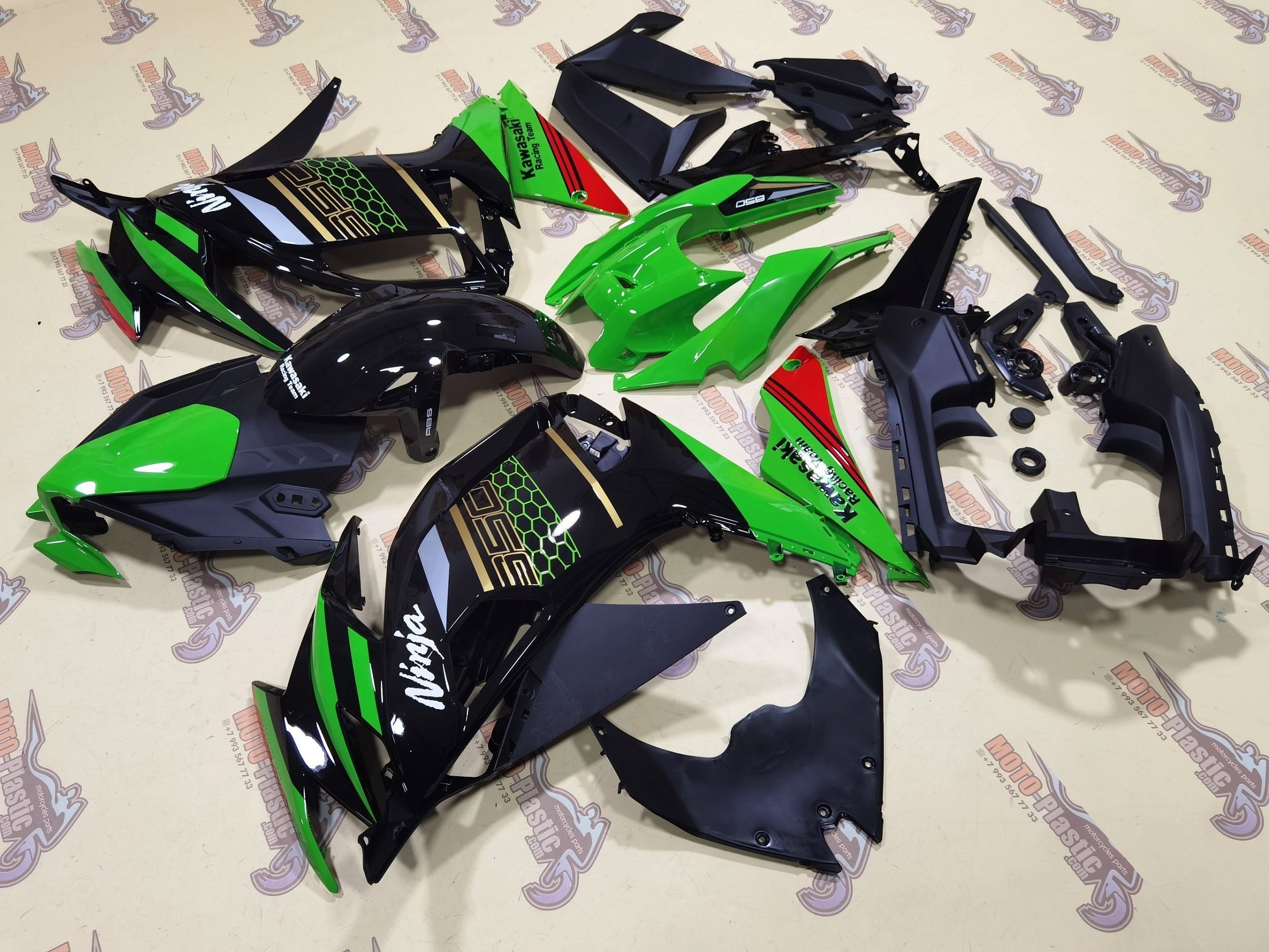 Комплект пластика Kawasaki Ninja 650 2020-2022 Красный Зеленый Серебряный Черный Золотистый