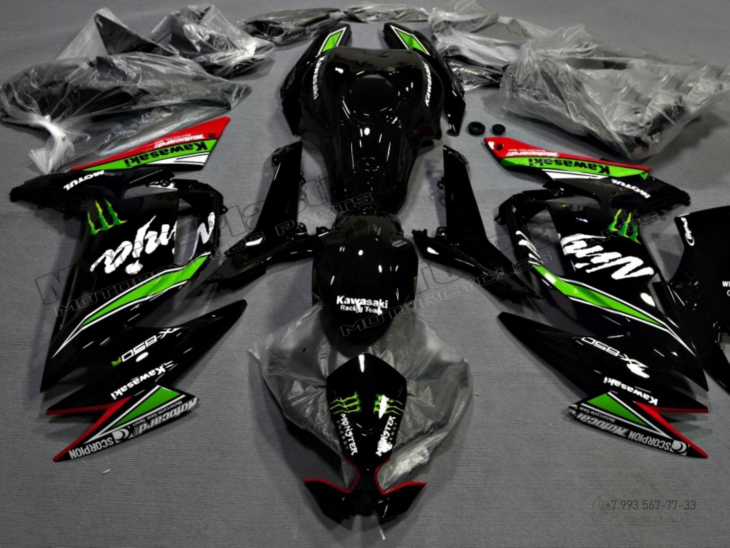 Комплект пластика Kawasaki Ninja 650 2020-2022 Белый Зеленый Красный Черный Monster