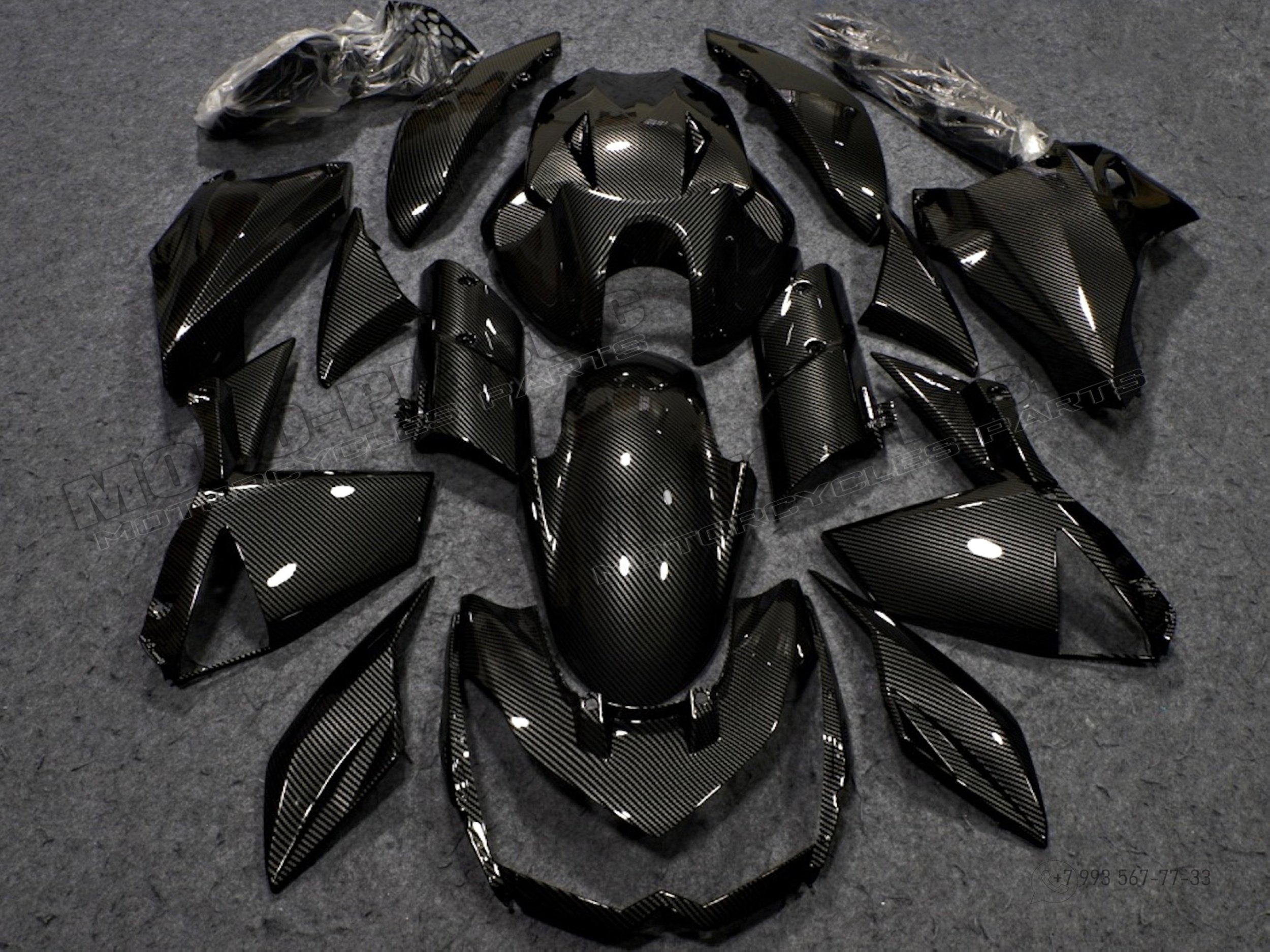Комплект пластика Kawasaki Z1000 2010-2013. Аквапринт карбон (углеткань) Карбон аквапринт Черный