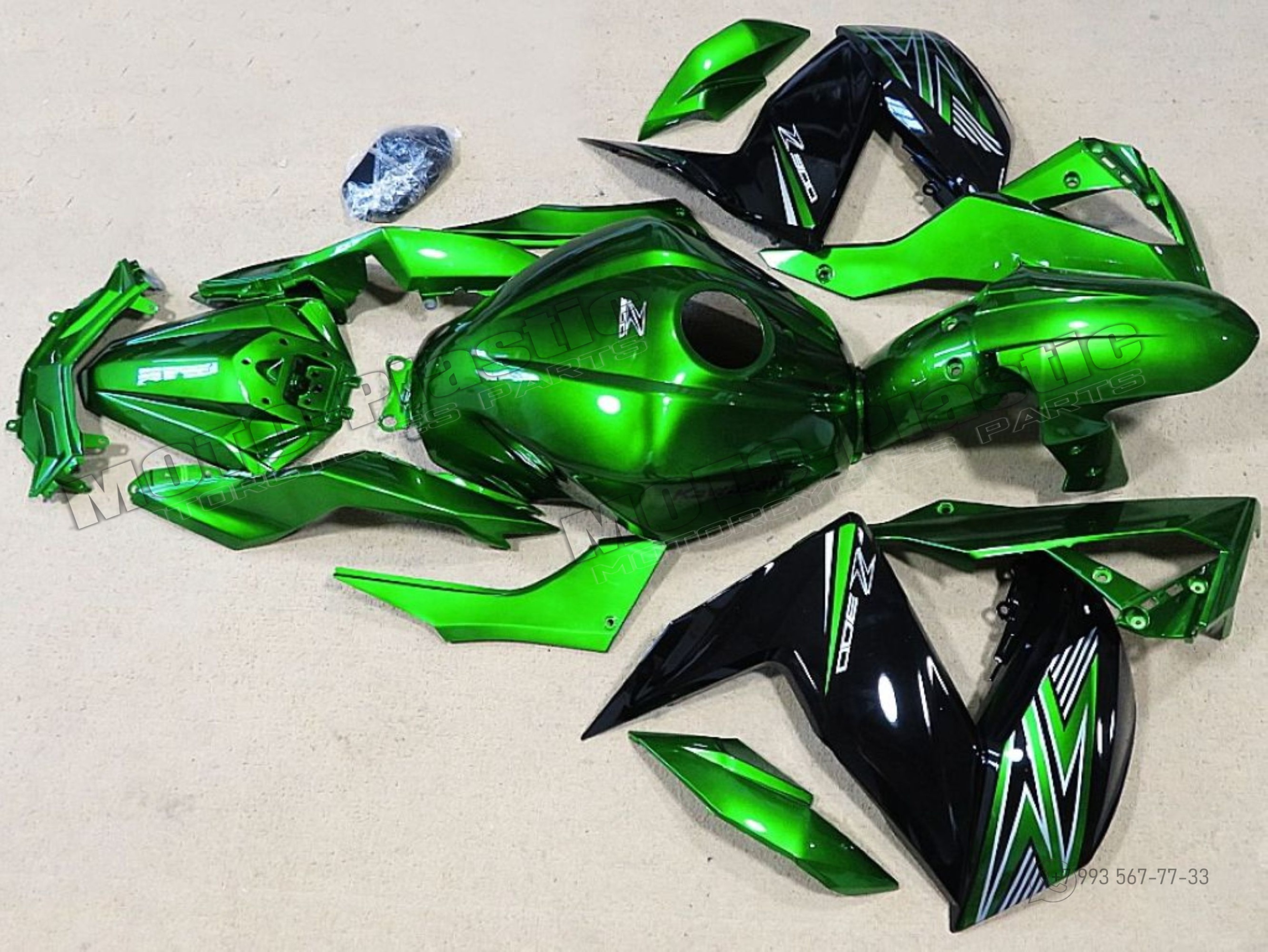 Комплект пластика Kawasaki Z250 2015-2016 Черный Зеленый Белый
