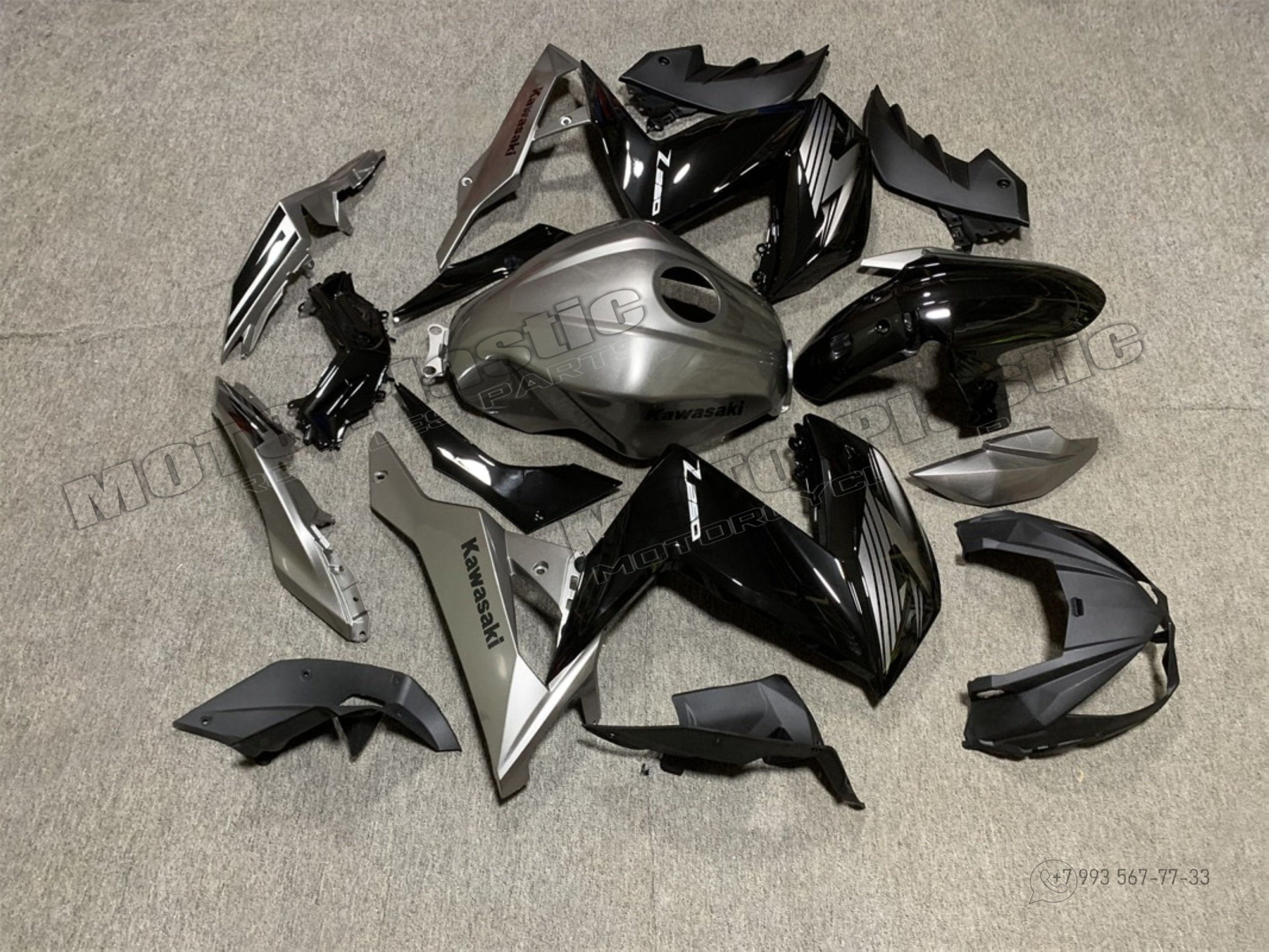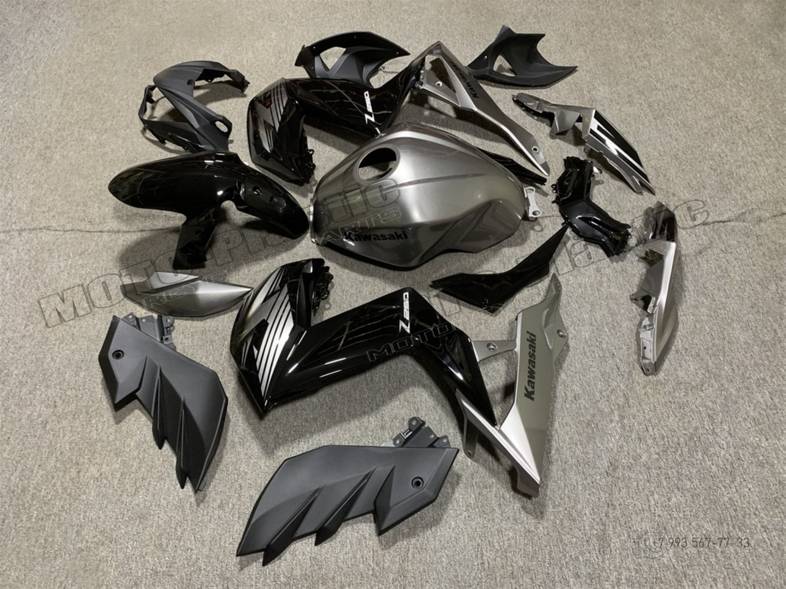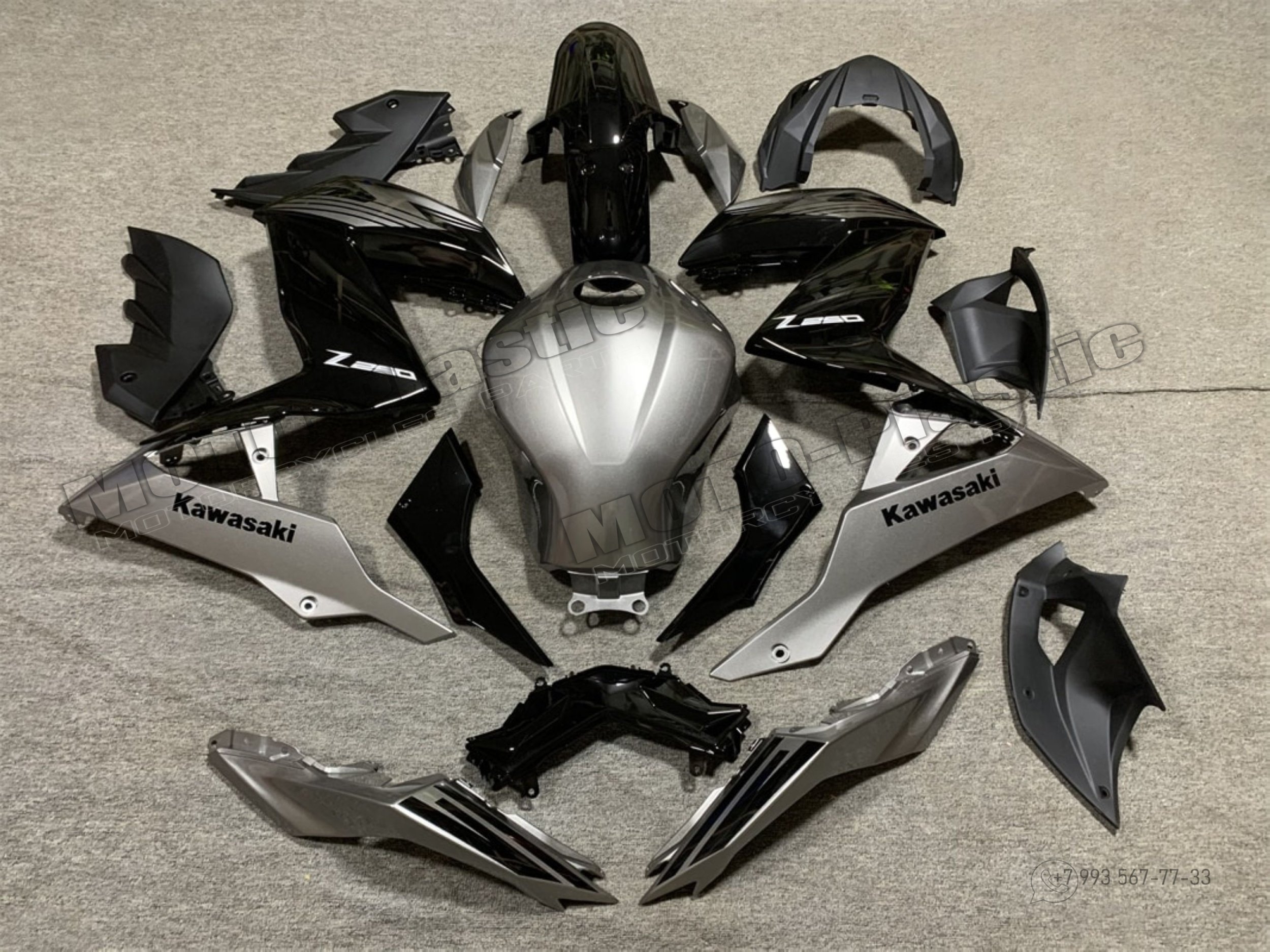 Комплект пластика Kawasaki Z250 2015-2016 Черный Серый