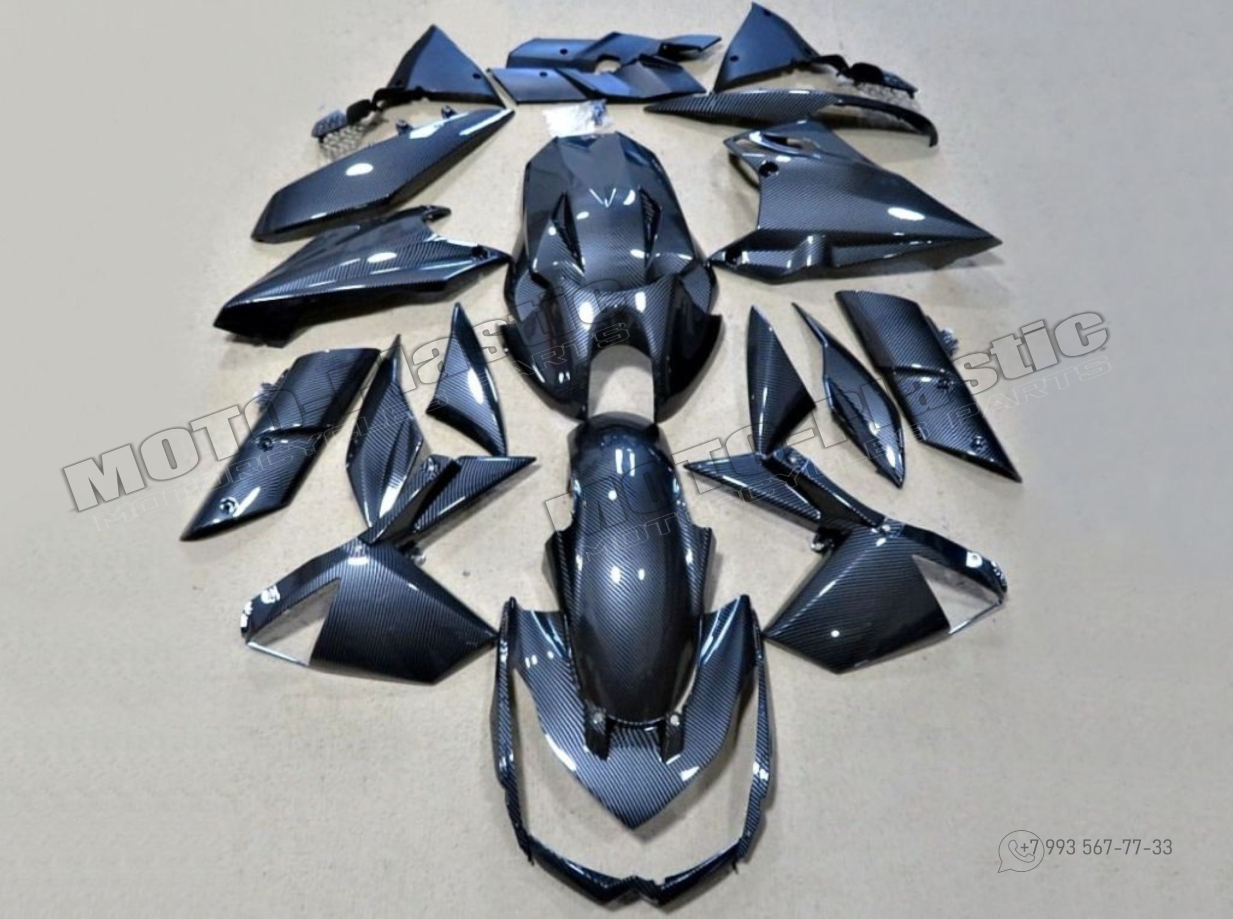 Комплект пластика Kawasaki Z800 2013-2018 / аквапринт карбон (углеткань) Карбон аквапринт Черный