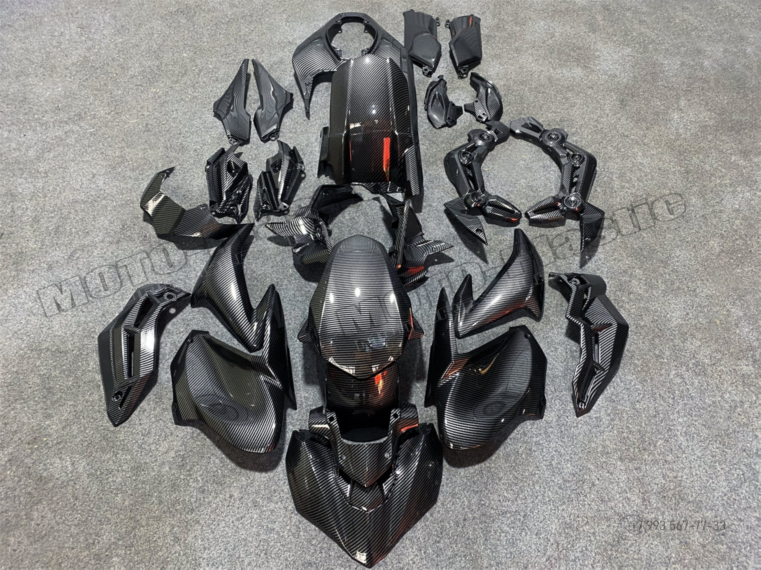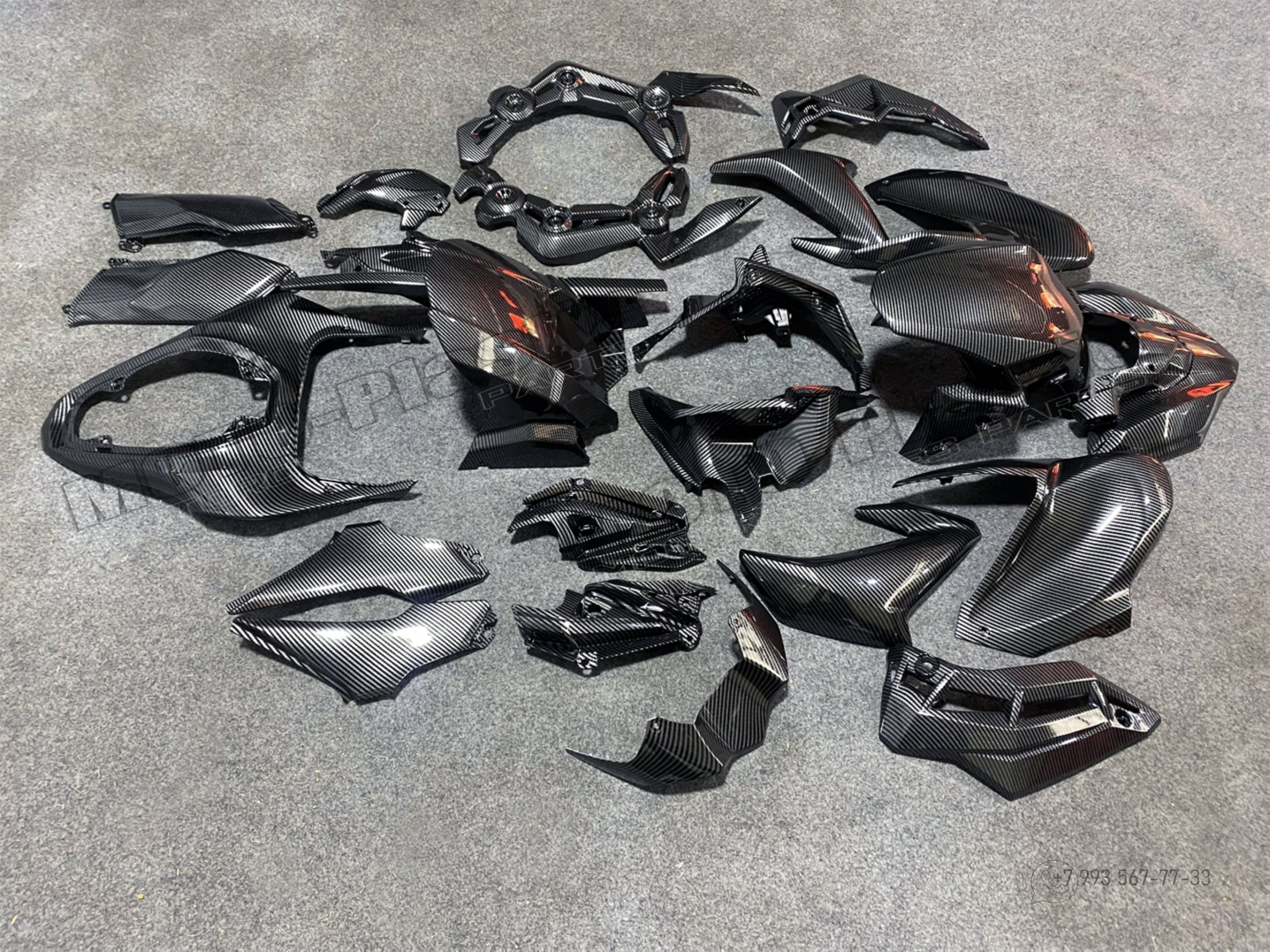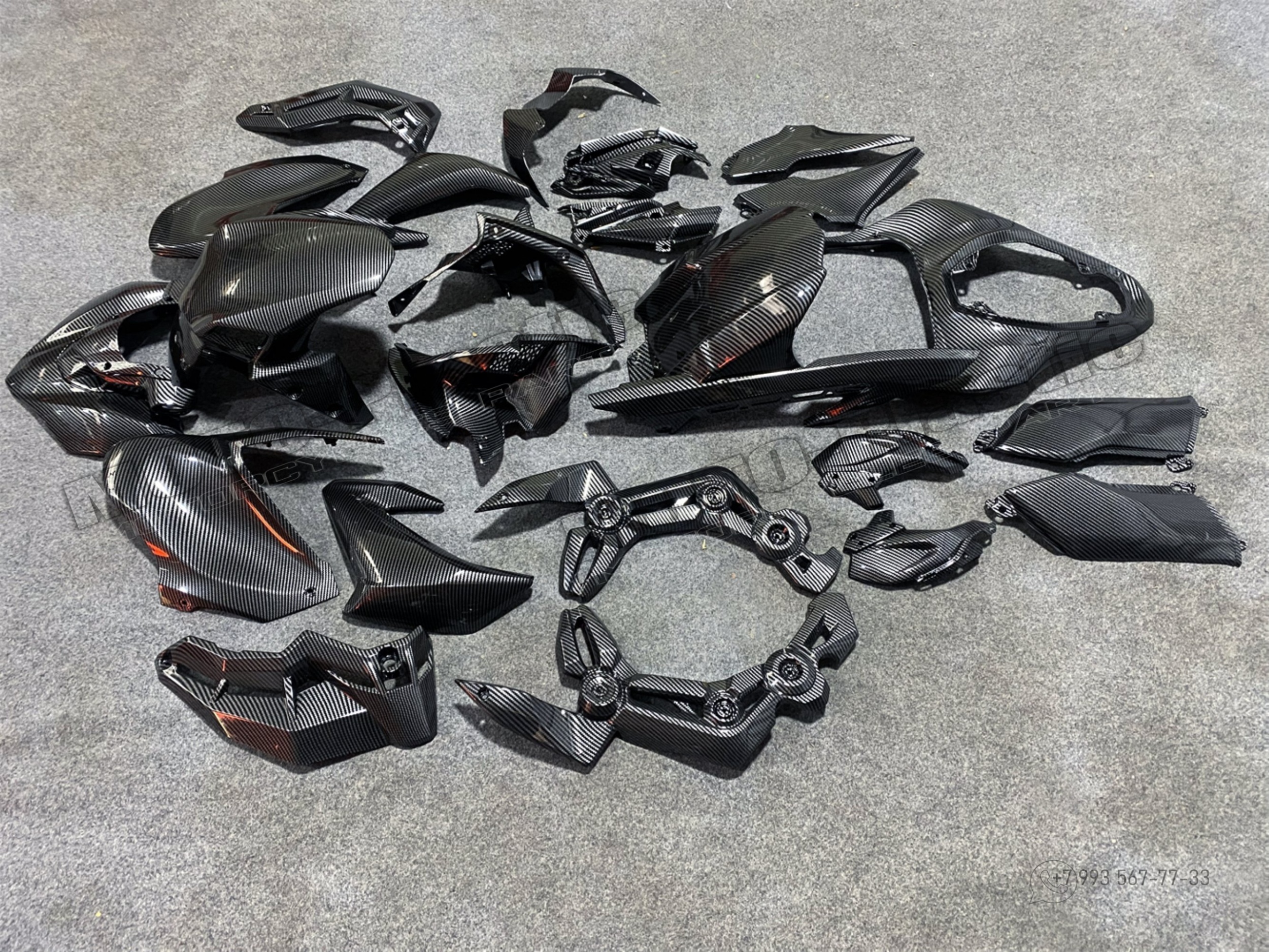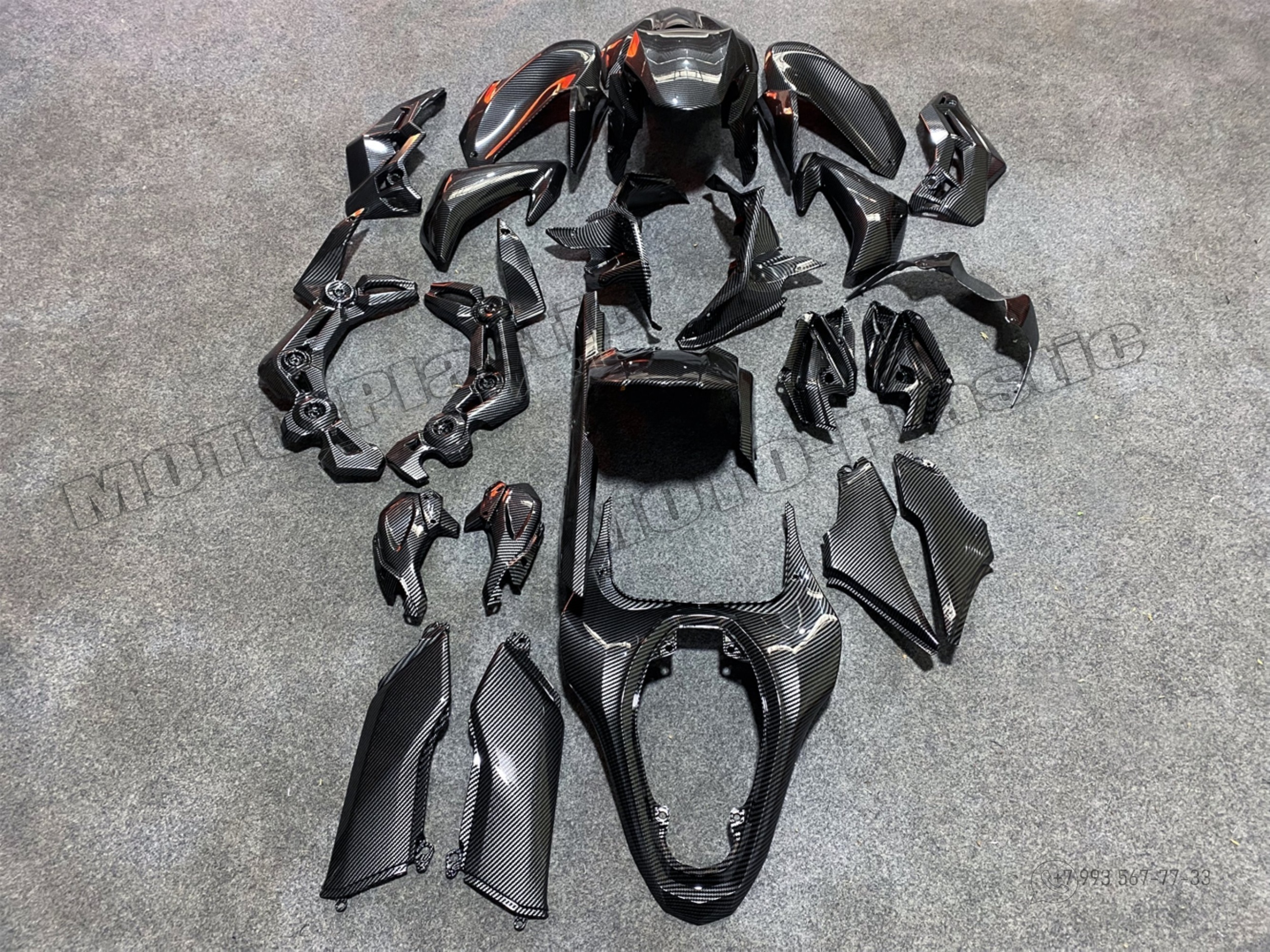 Комплект пластика Kawasaki Z900 2017-2019. Аквапринт карбон (углеткань) Карбон аквапринт Черный