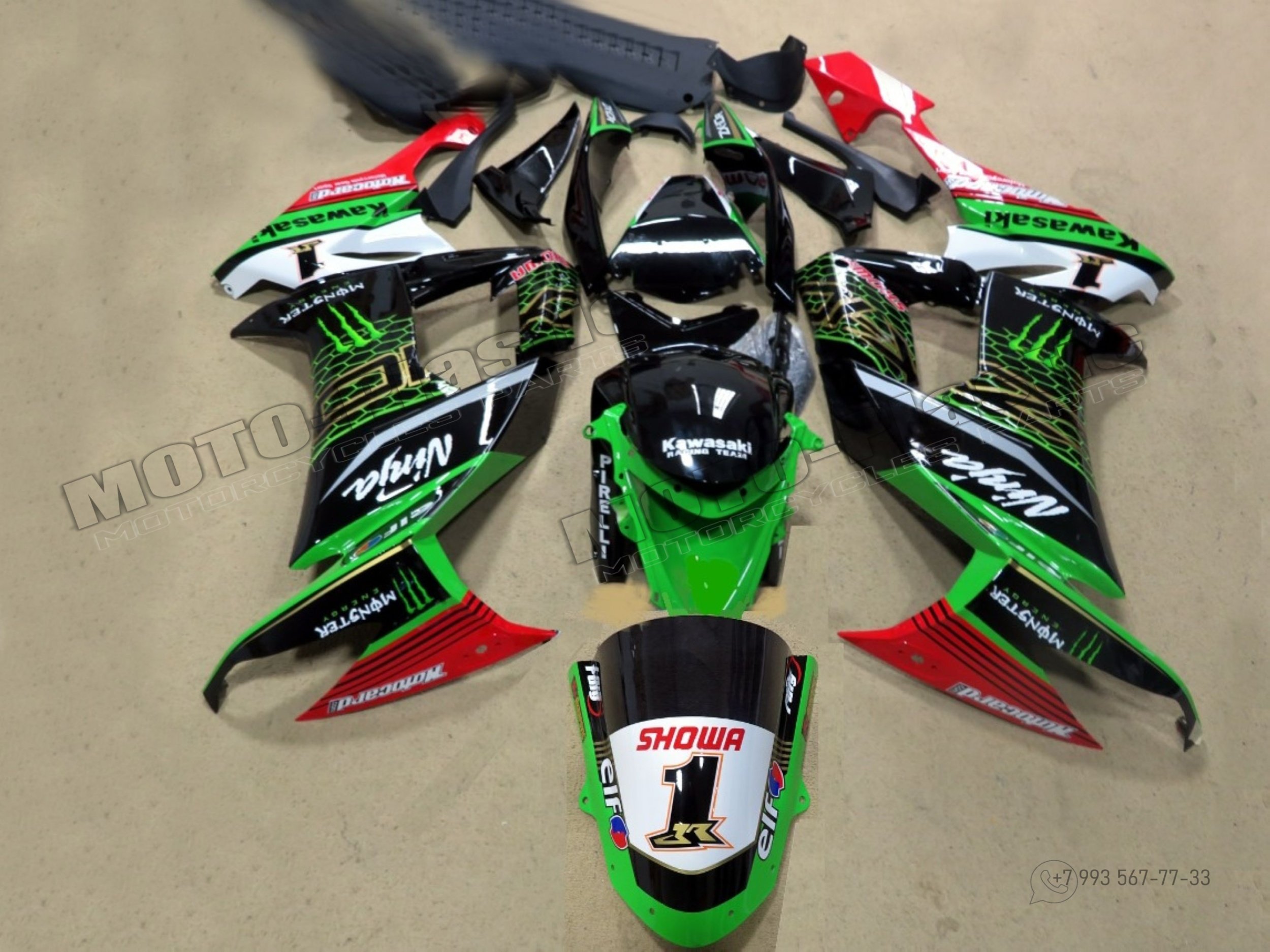 Комплект пластика Kawasaki ZX-10R 2008-2010 Monster Черный Красный Зеленый Белый