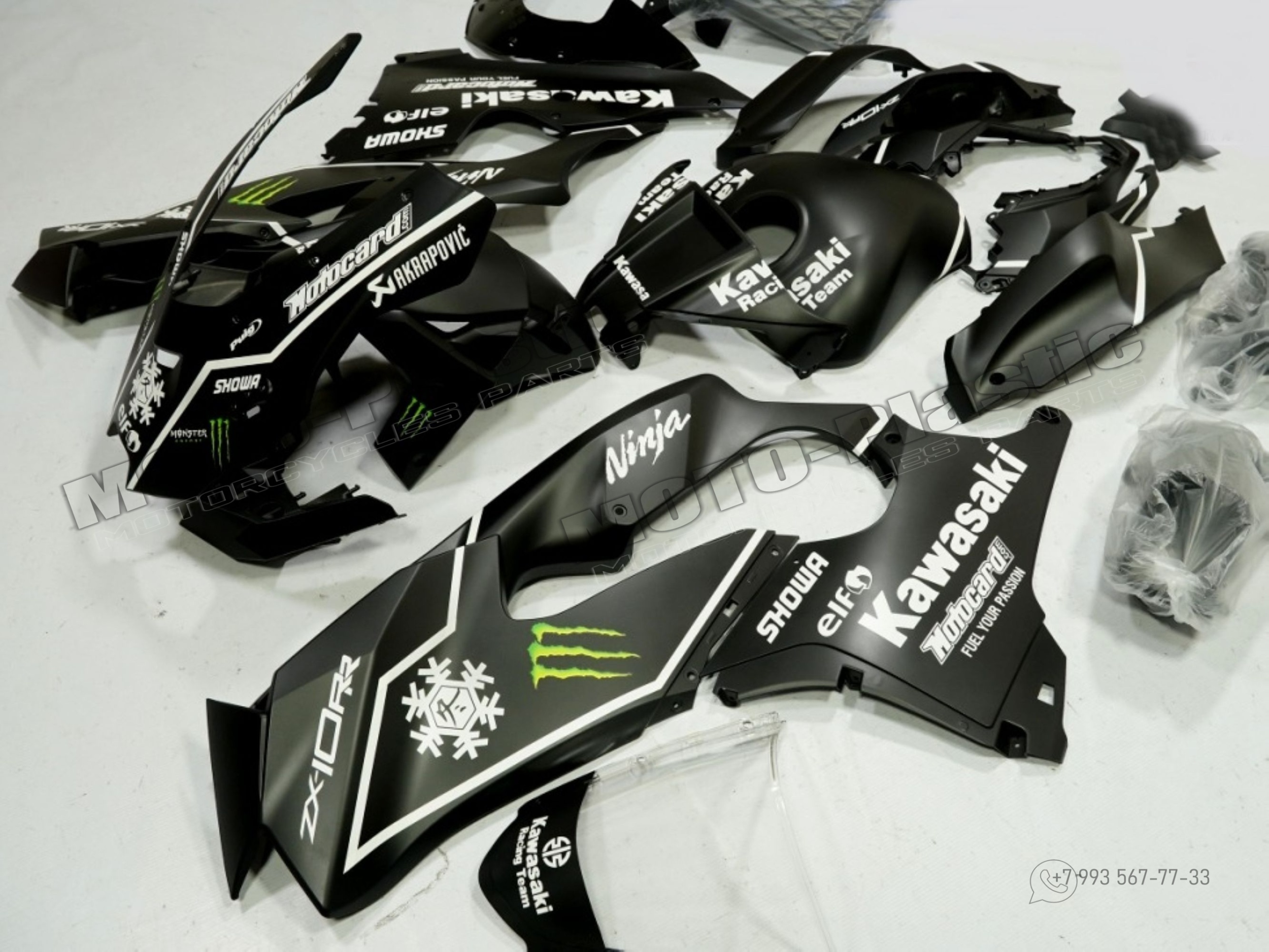 Комплект пластика Kawasaki ZX-10R 2021-2023 Monster Черный Белый