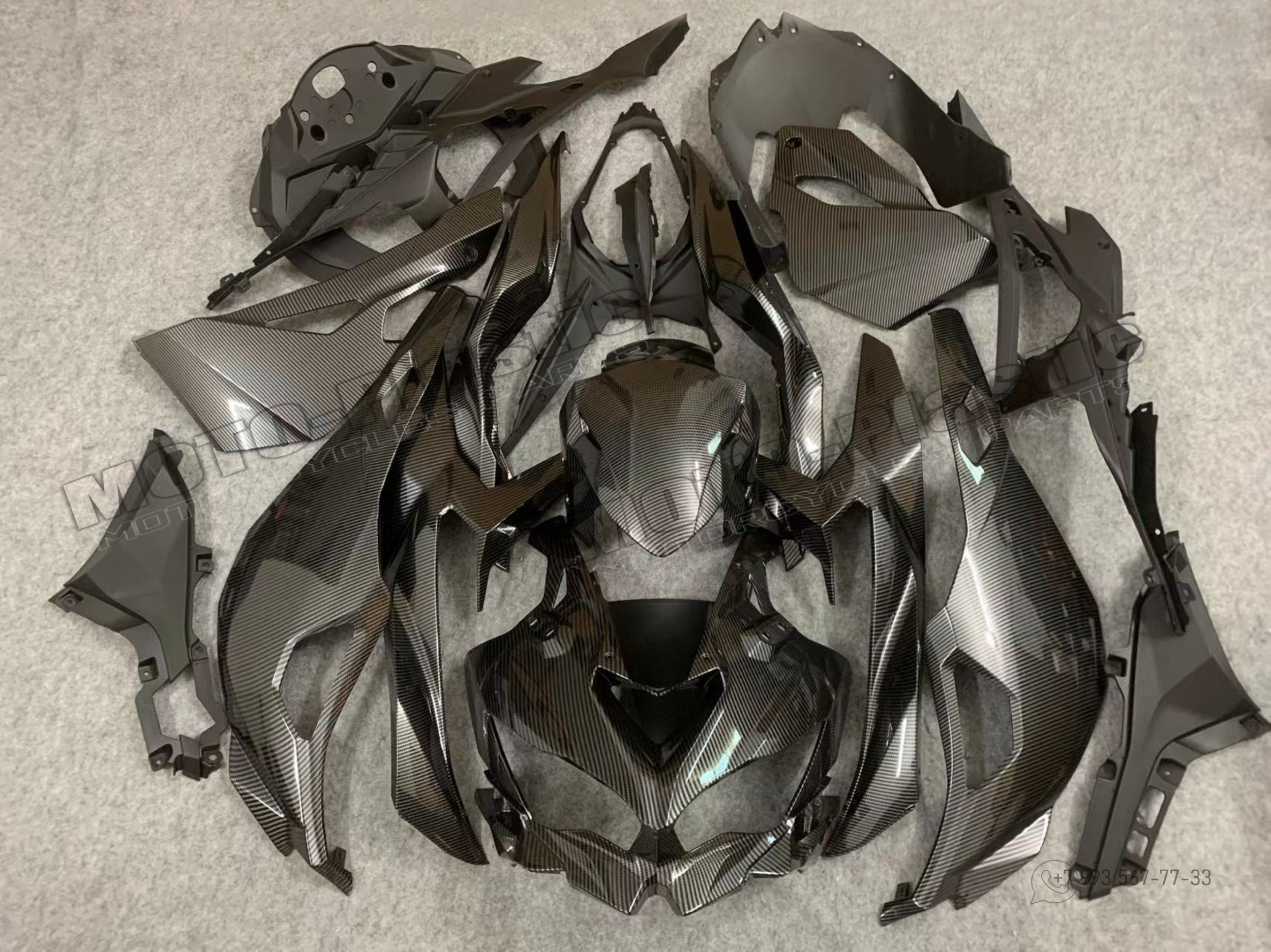 Комплект пластика Kawasaki ZX-25R 2020. Аквапринт карбон (углеткань) Черный Карбон аквапринт