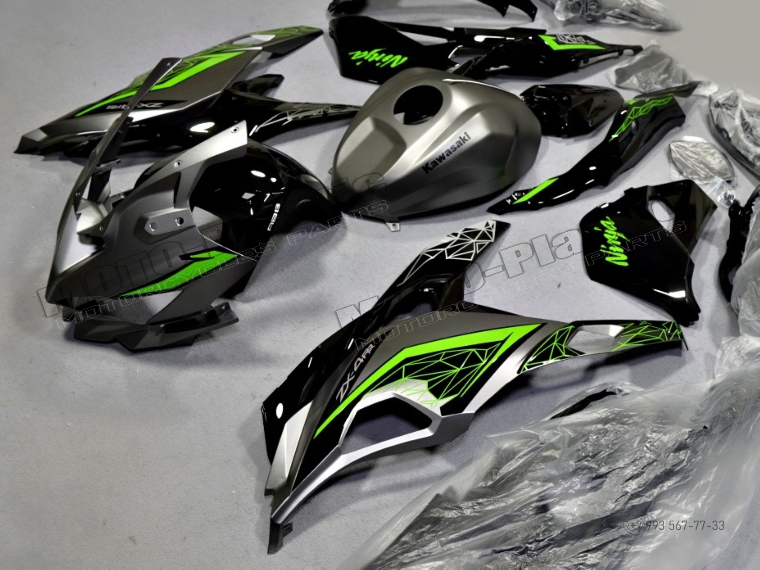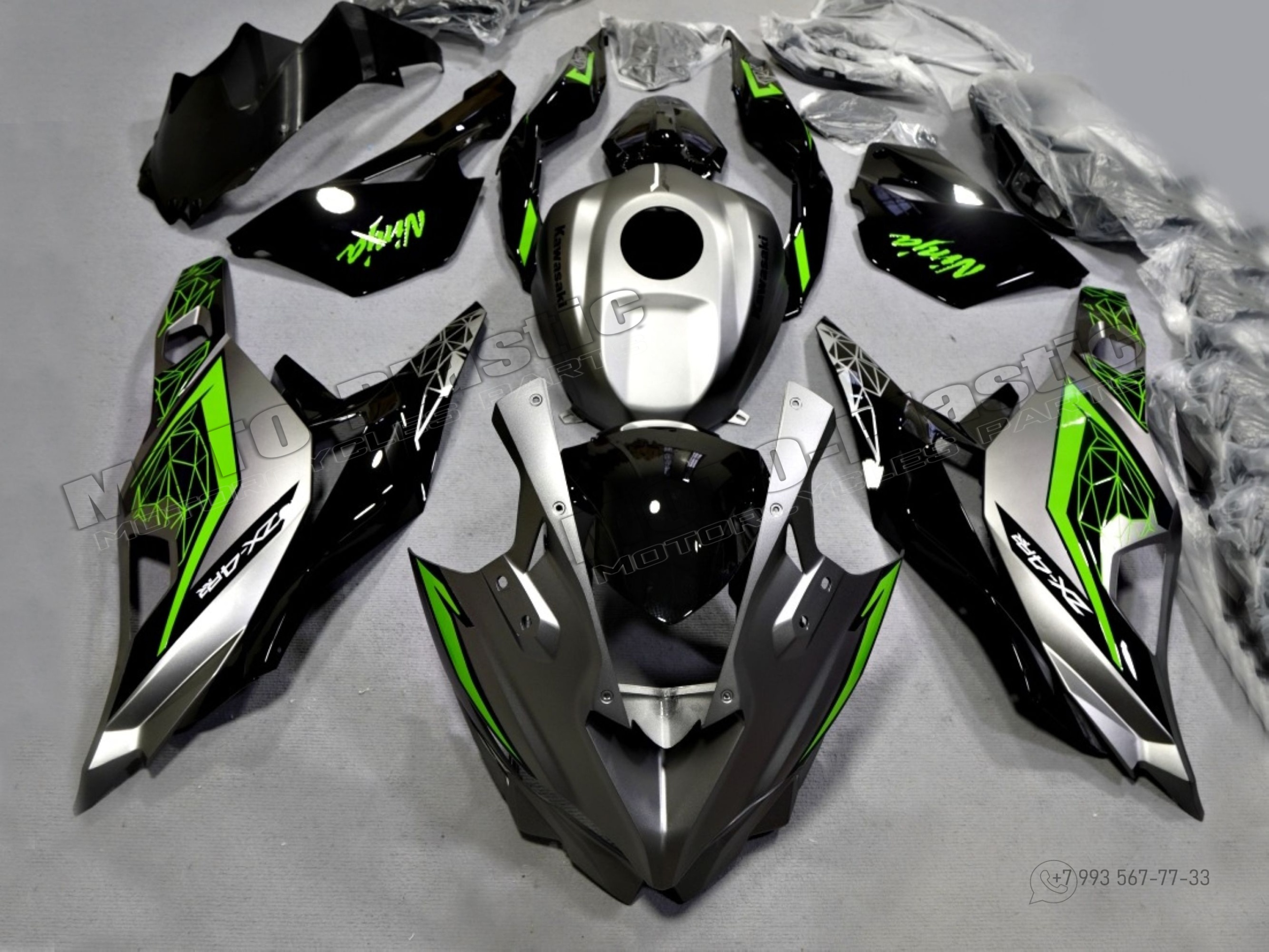 Комплект пластика Kawasaki Ninja ZX-4R 2023 Черный Серый Зеленый