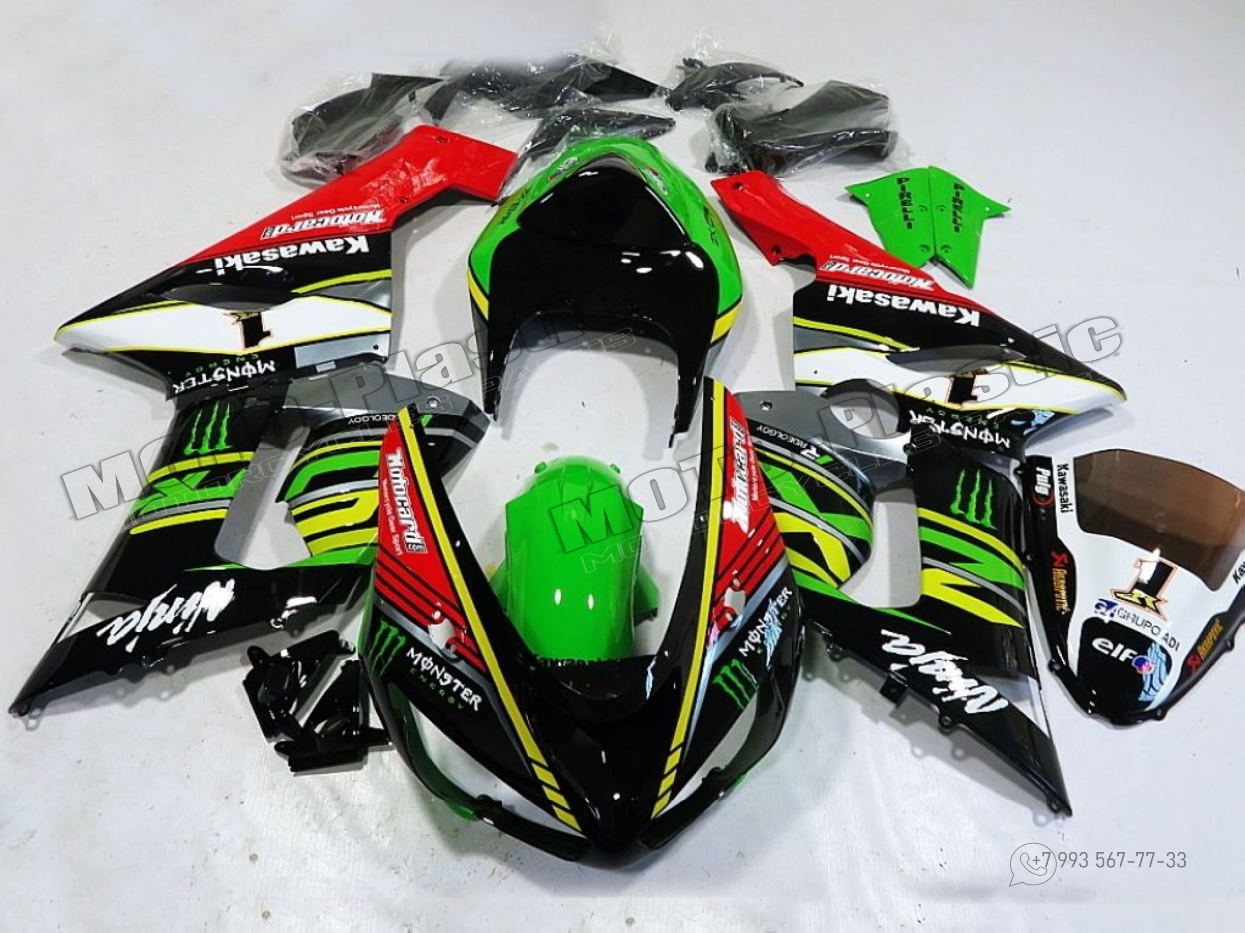 Комплект пластика Kawasaki ZX-6R 2005-2006 Зеленый Желтый Черный Monster Белый Красный