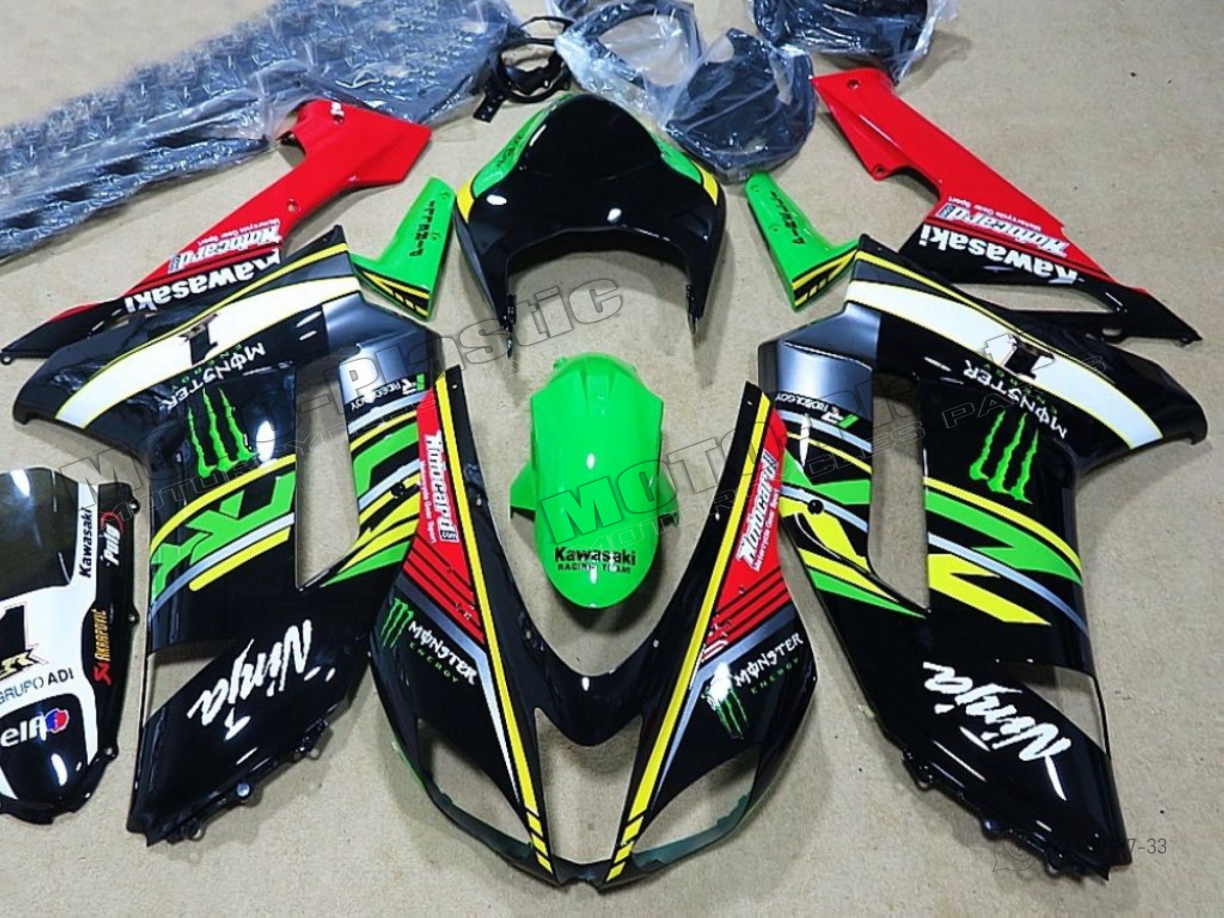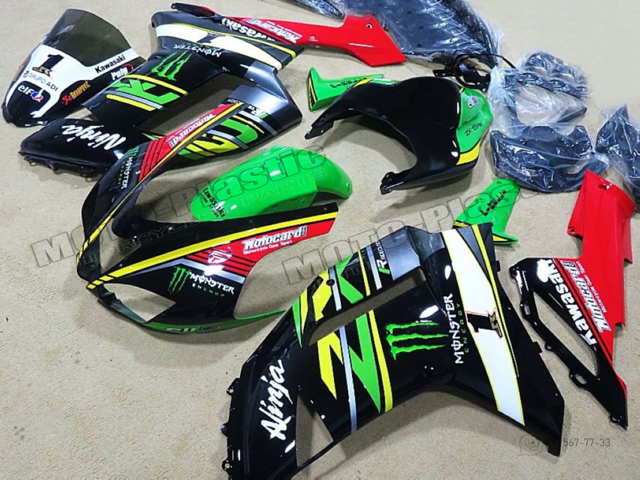 Комплект пластика Kawasaki ZX-6R 2007-2008 Черный Белый Желтый Зеленый Красный Monster