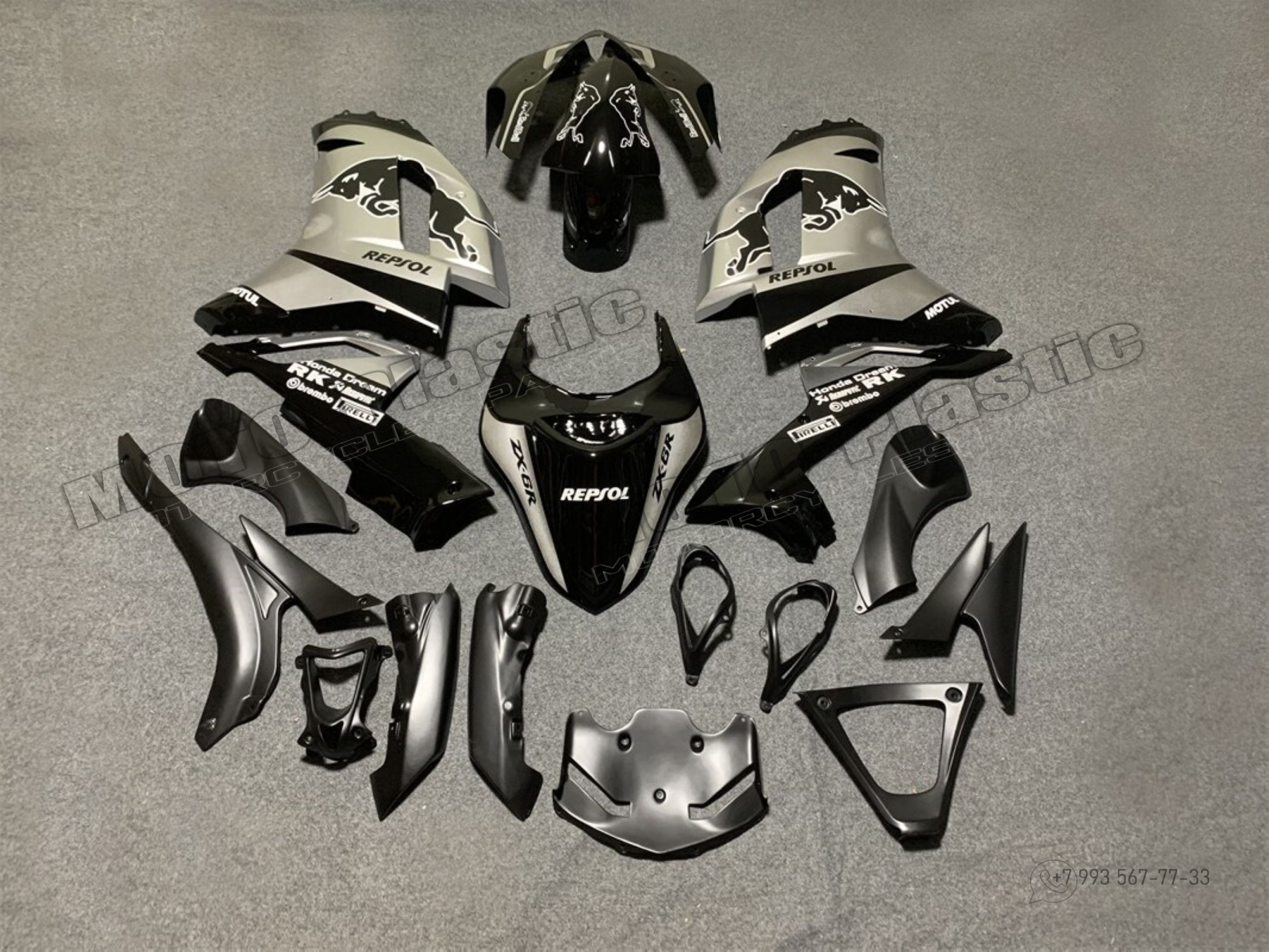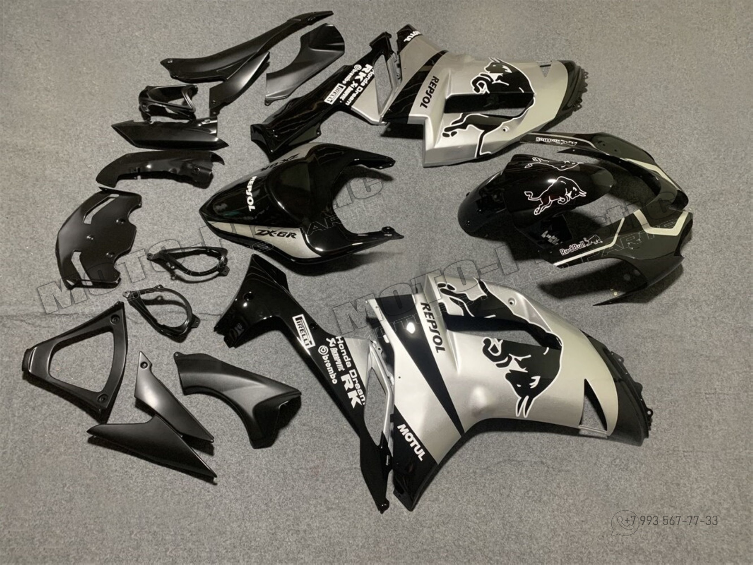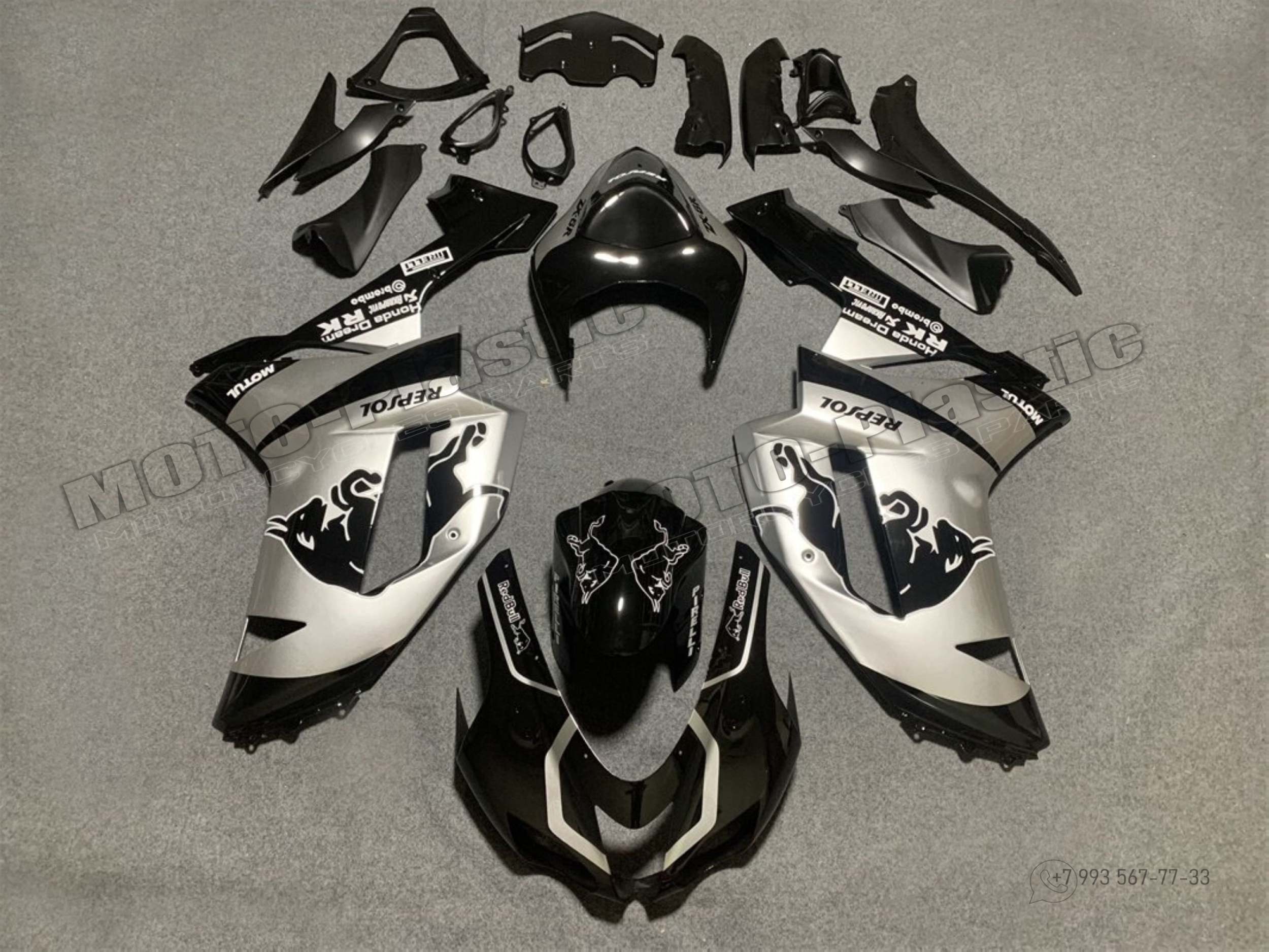 Комплект пластика Kawasaki ZX-6R 2007-2008 Red Bull Серый Черный