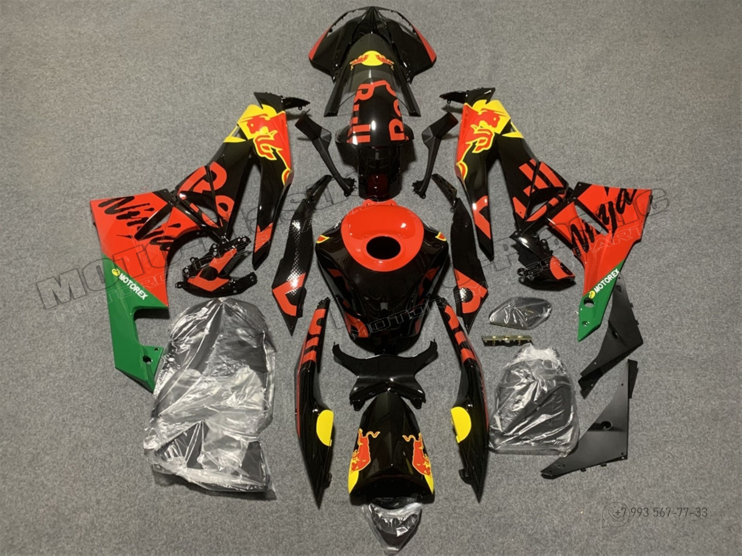 Комплект пластика Kawasaki ZX-6R 2009-2012 Красный Желтый Черный