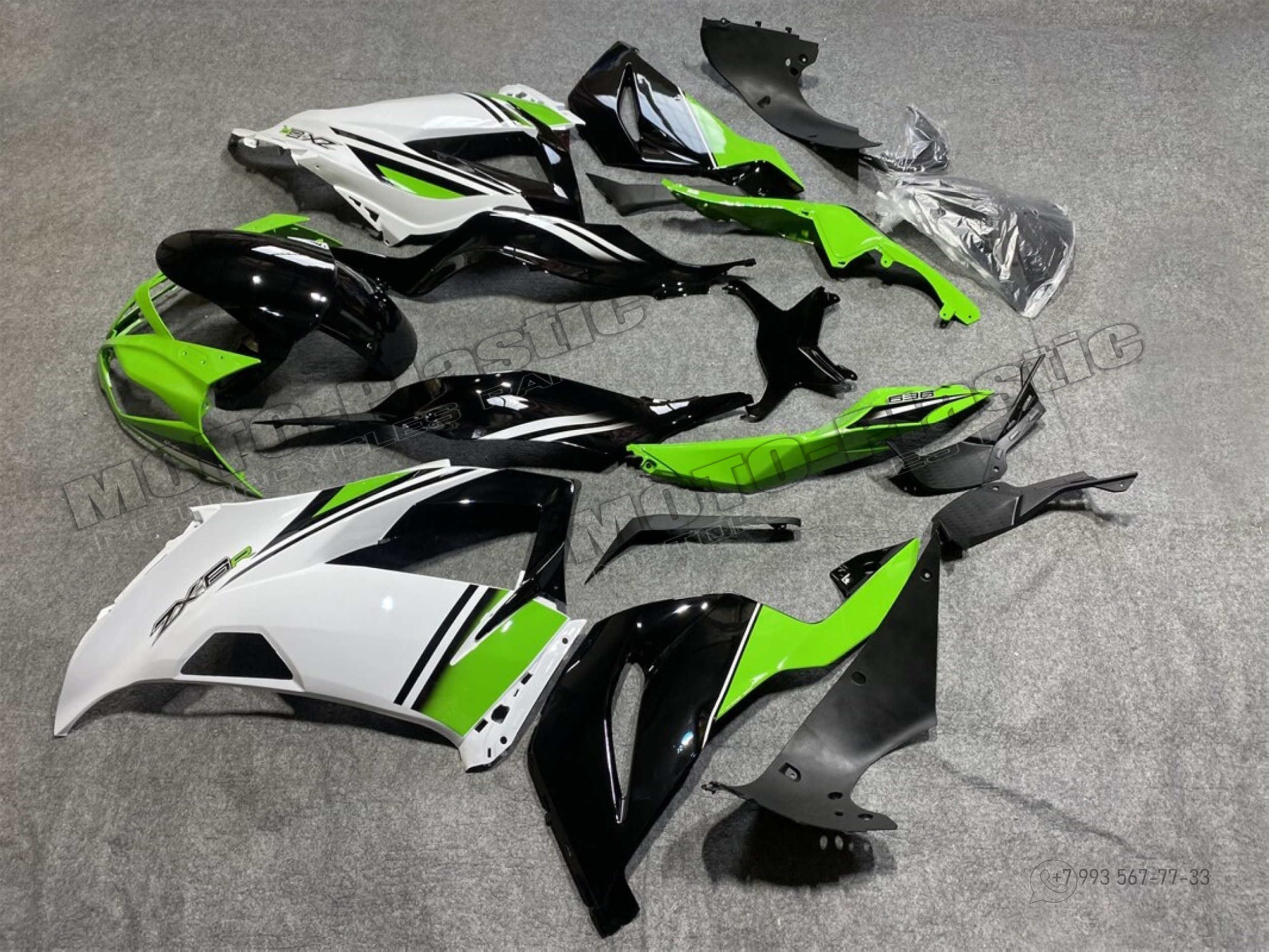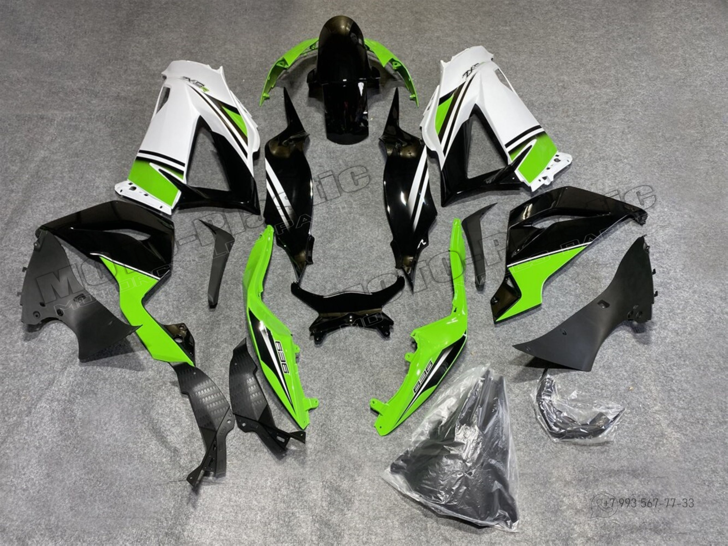 Комплект пластика Kawasaki ZX-6R 2013-2018 Зеленый Белый Черный