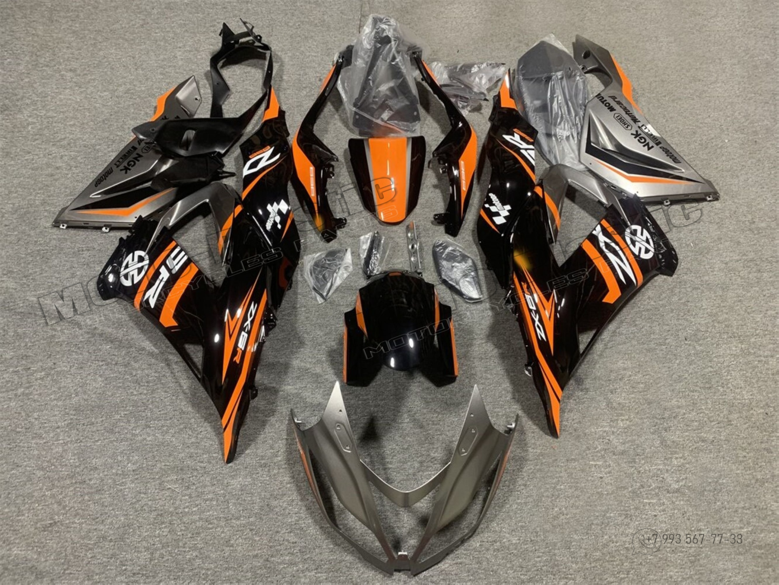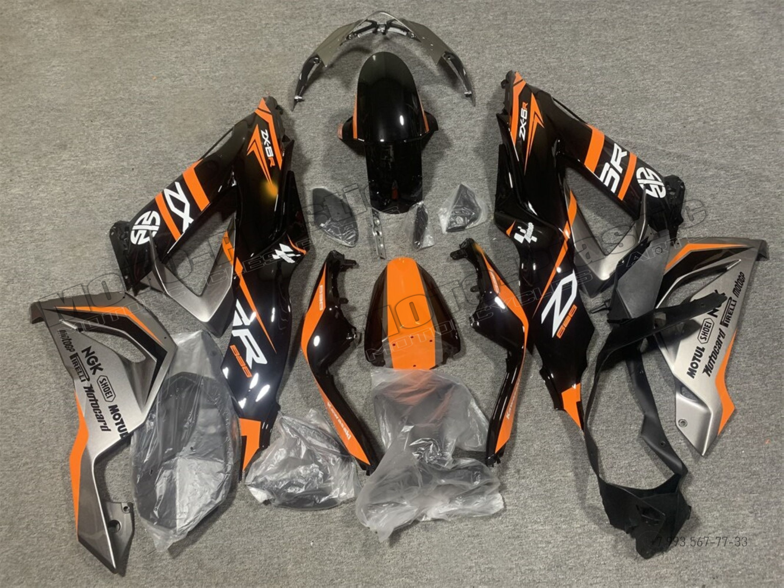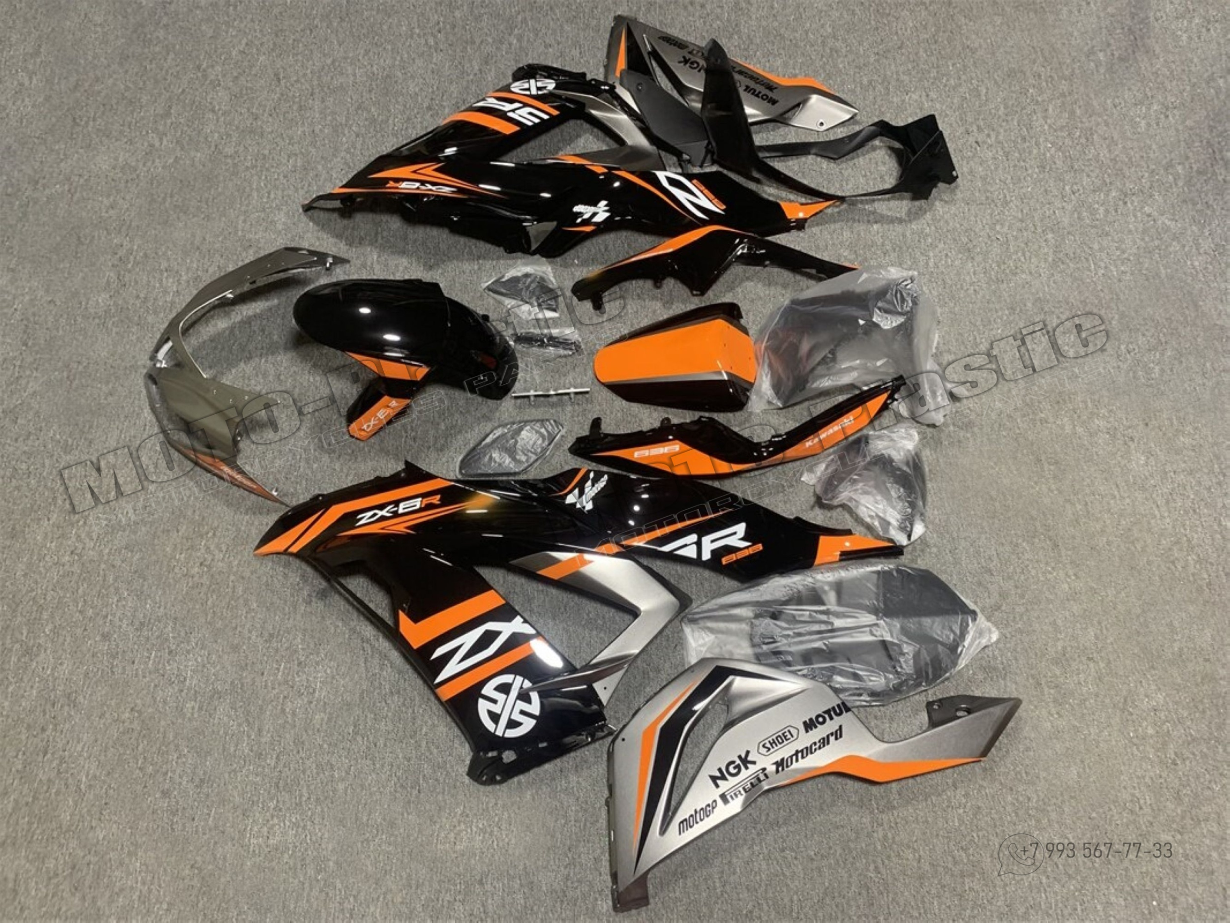 Комплект пластика Kawasaki ZX-6R 2013-2018 Черный Оранжевый