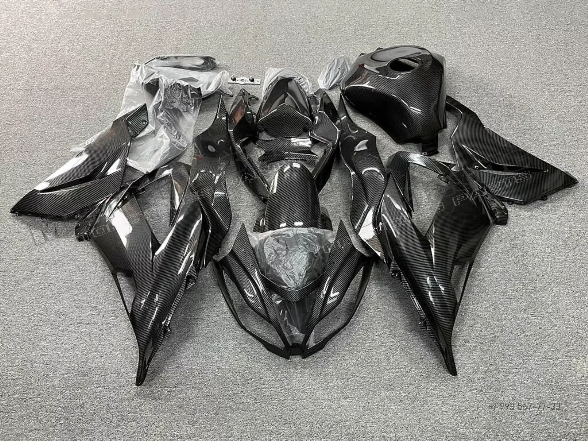 Комплект пластика Kawasaki ZX-6R 2013-2018 / аквапринт карбон (углеткань) Карбон аквапринт Черный