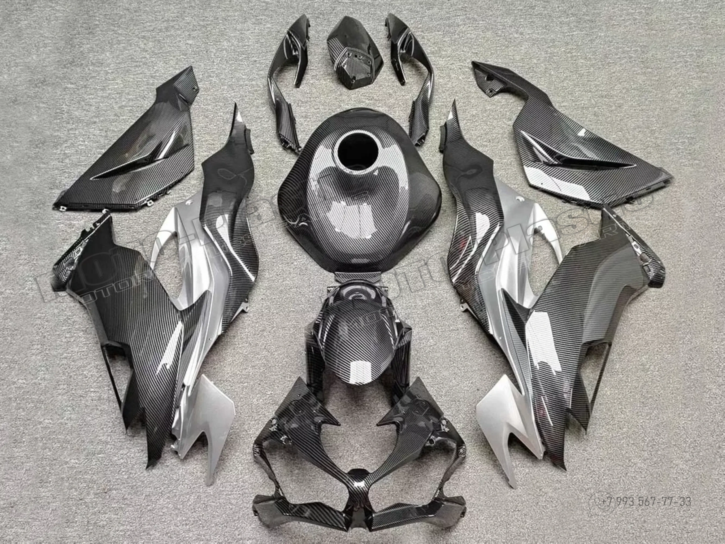 Комплект пластика Kawasaki ZX-6R 2019-2021 / аквапринт карбон (углеткань) Карбон аквапринт Черный