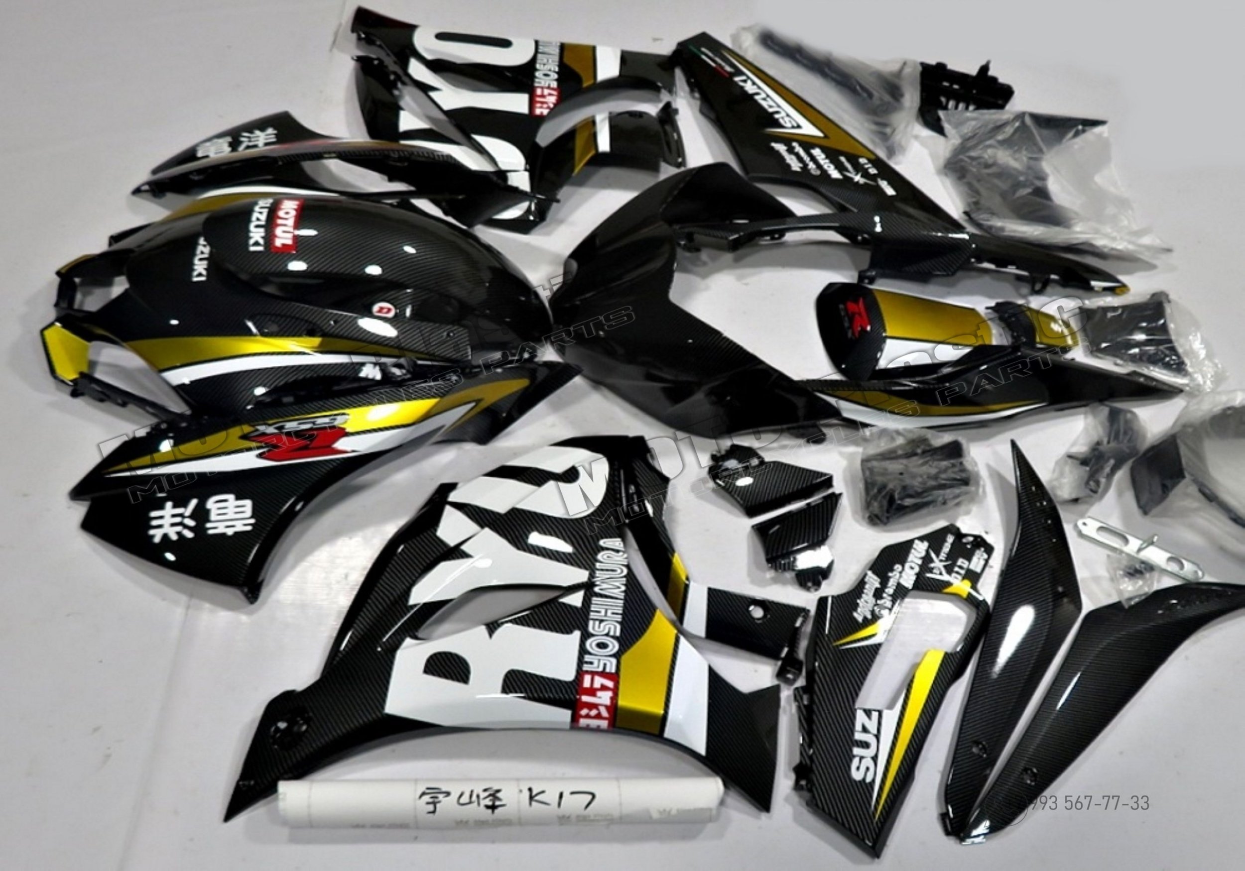 Комплект пластика Suzuki GSX-R1000 2017-2023 / аквапринт карбон (углеткань) Черный Желтый