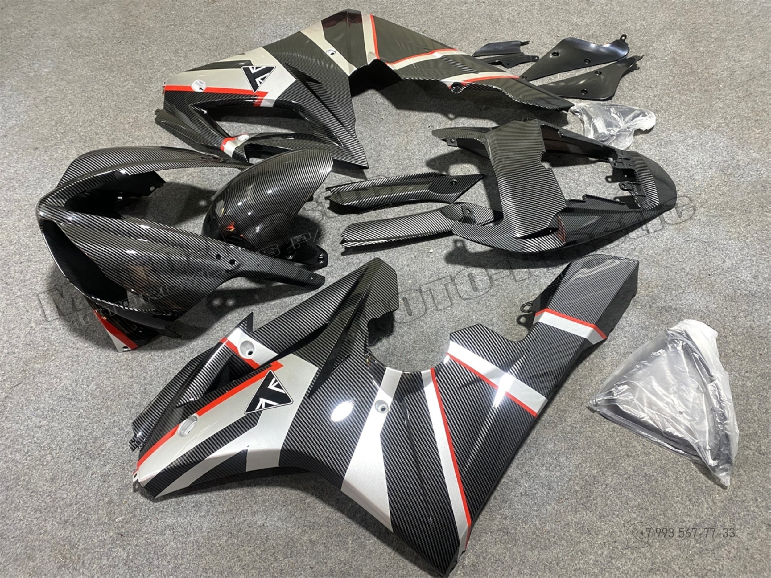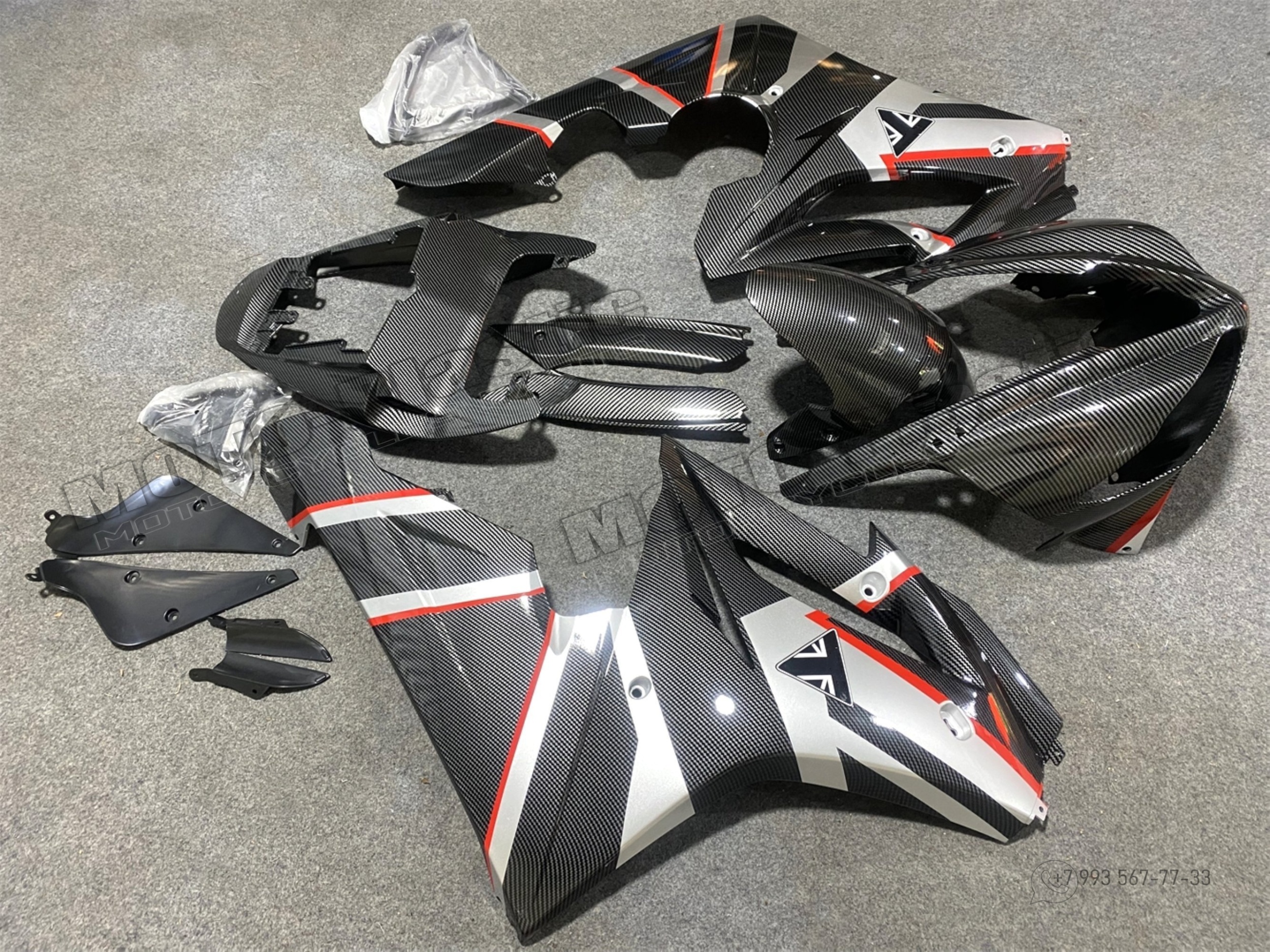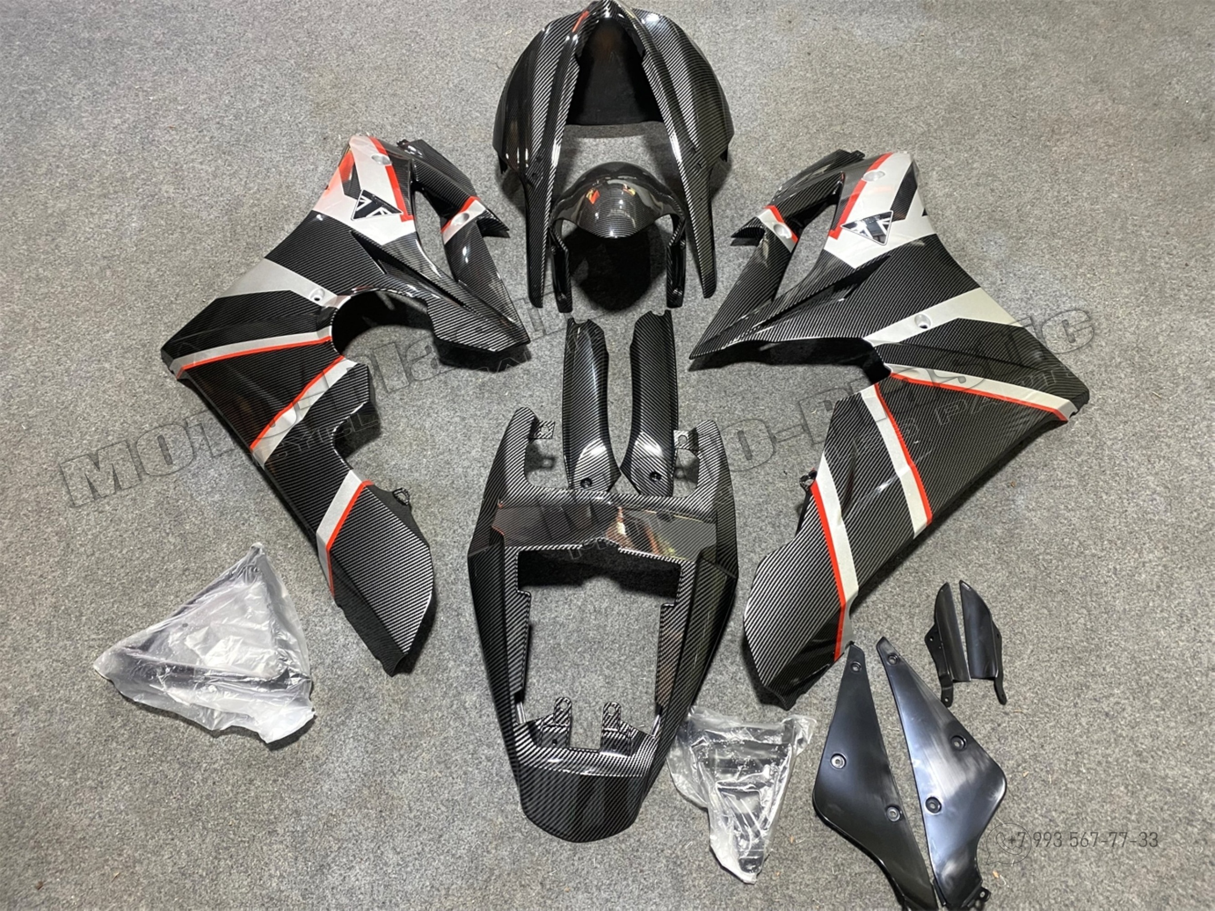 Комплект пластика Triumph Daytona 675 2009-2012. Аквапринт карбон (углеткань) Карбон аквапринт Красный Серый Черный