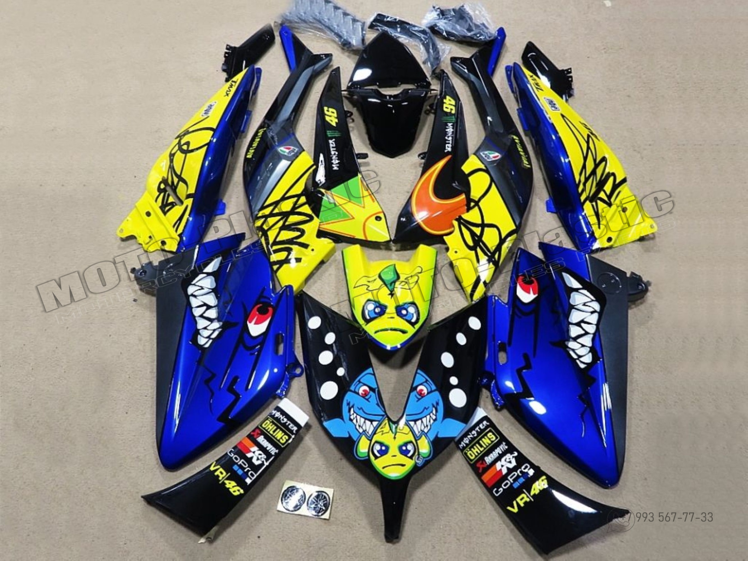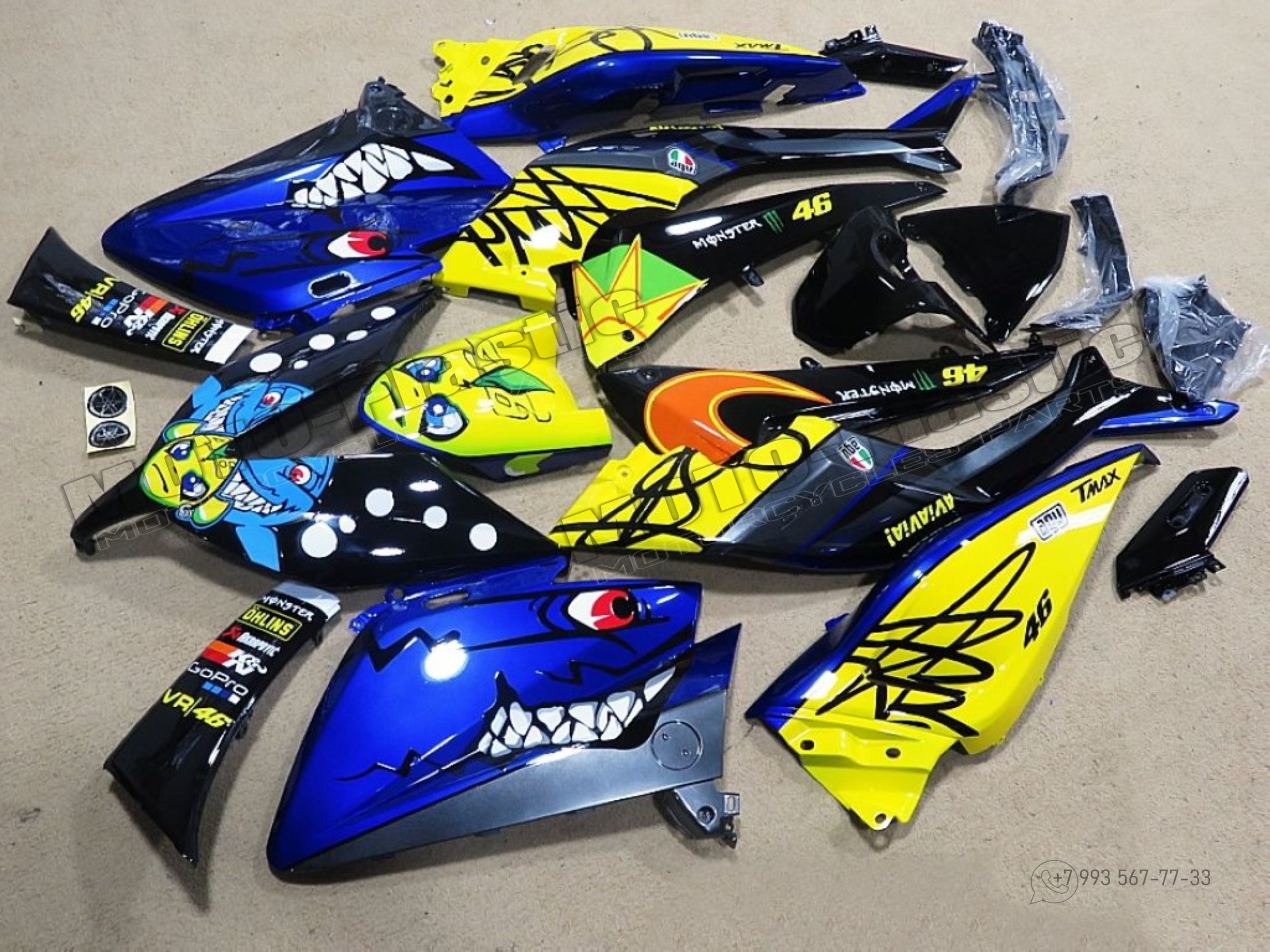 Комплект пластика Yamaha TMAX530 2015–2016 Акула Черный Синий Желтый Белый