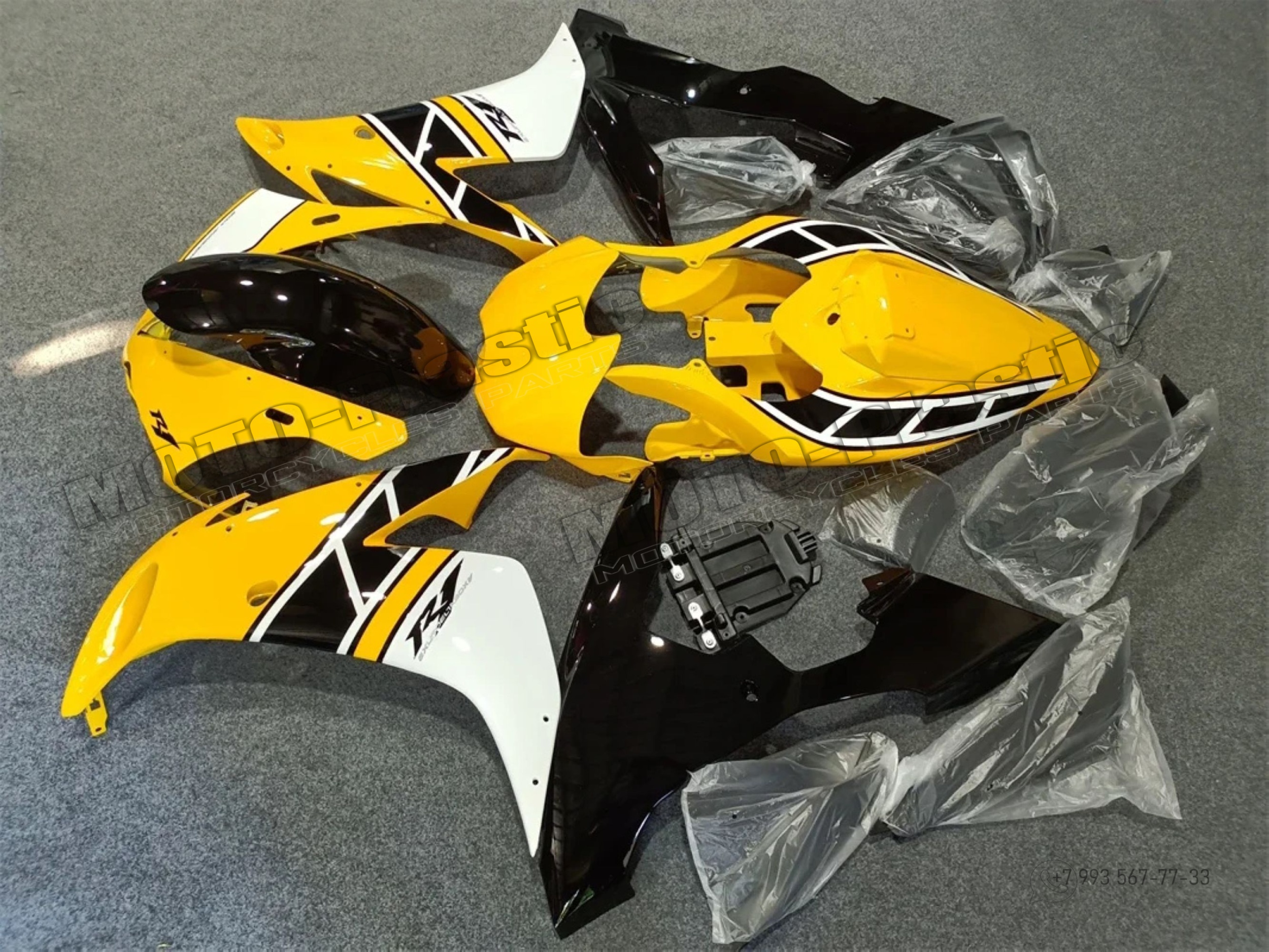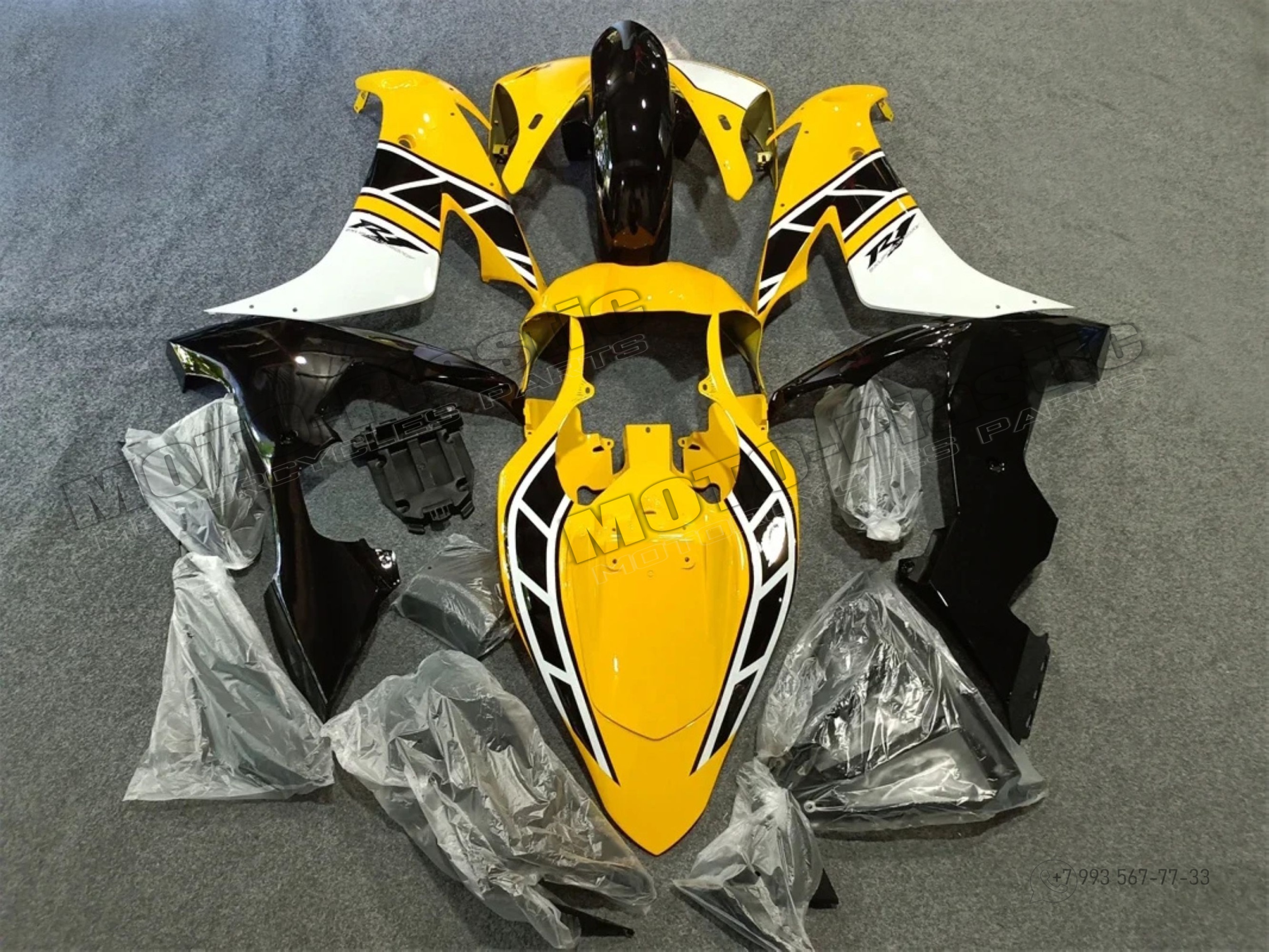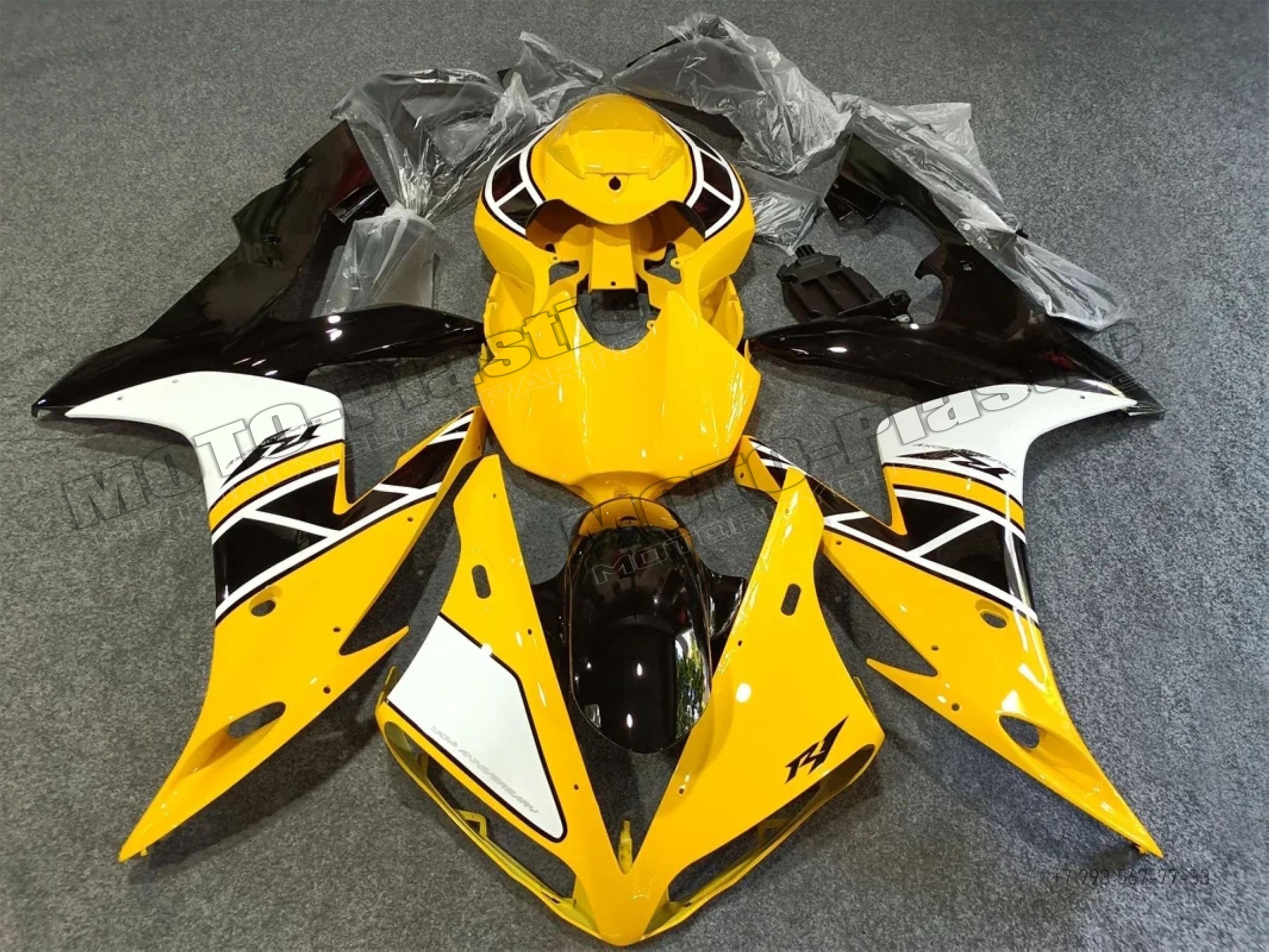 Комплект пластика Yamaha YZF R1 2004-2006 Черный Желтый Monster Белый