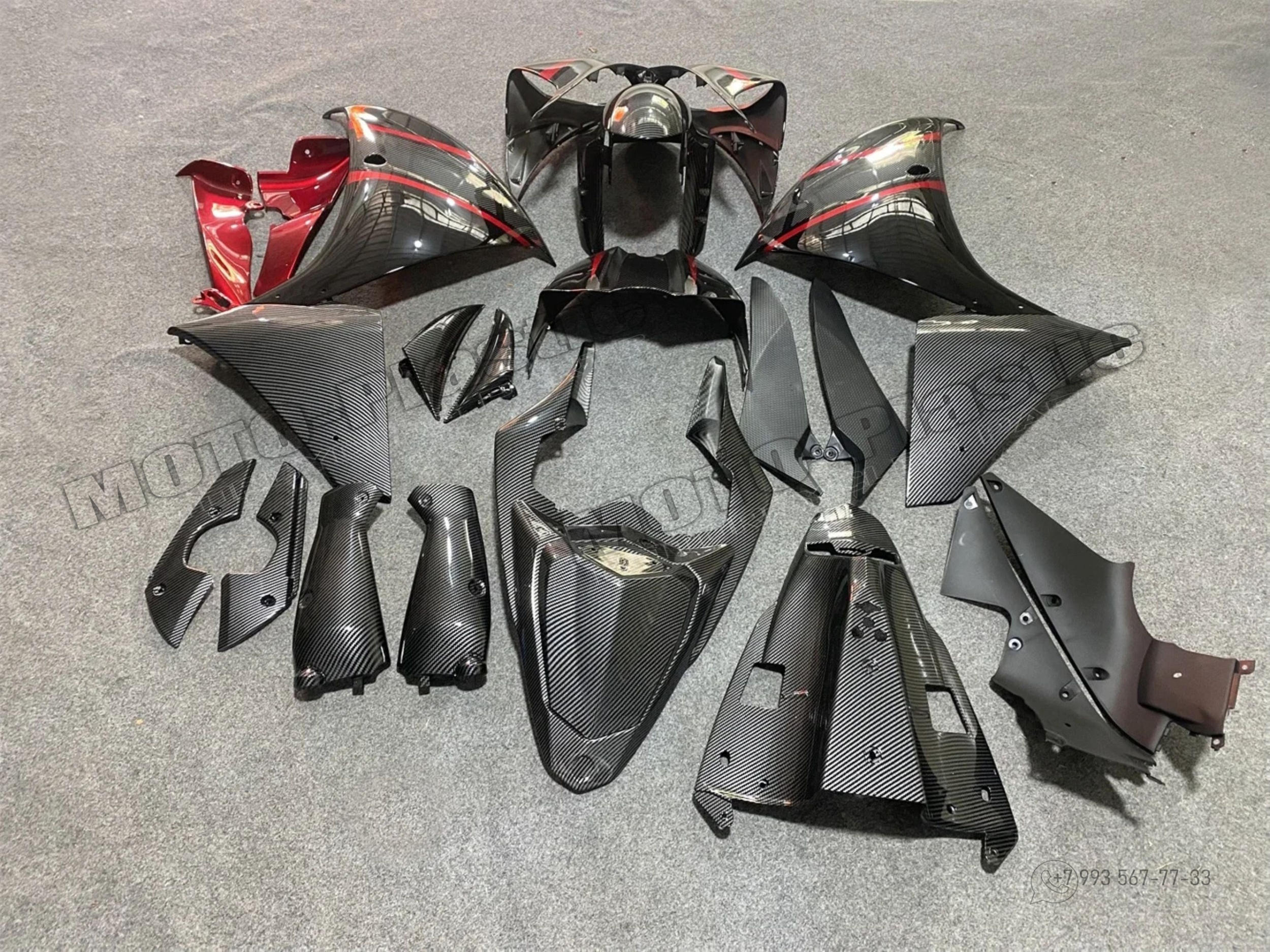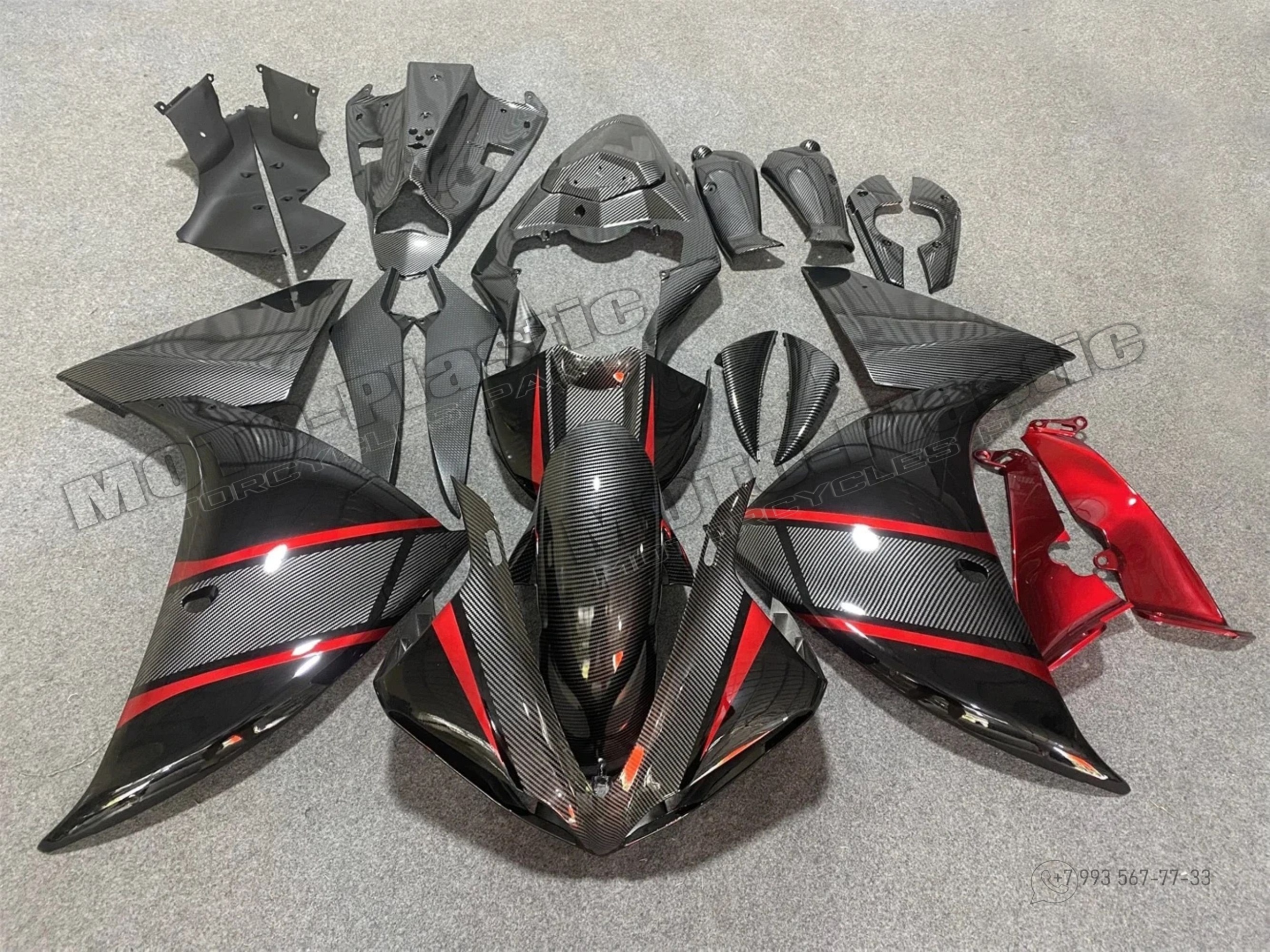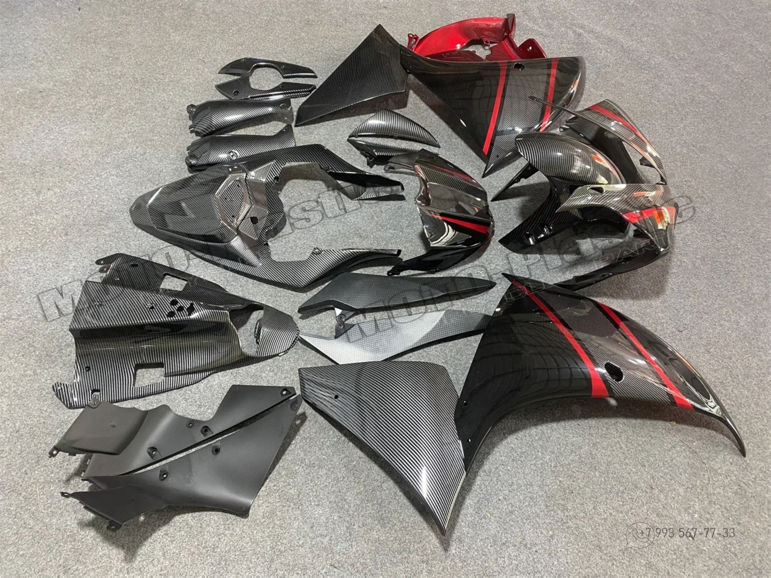 Комплект пластика Yamaha YZF-R1 2009-2011 / аквапринт карбон (углеткань) Красный Черный Серый Карбон аквапринт