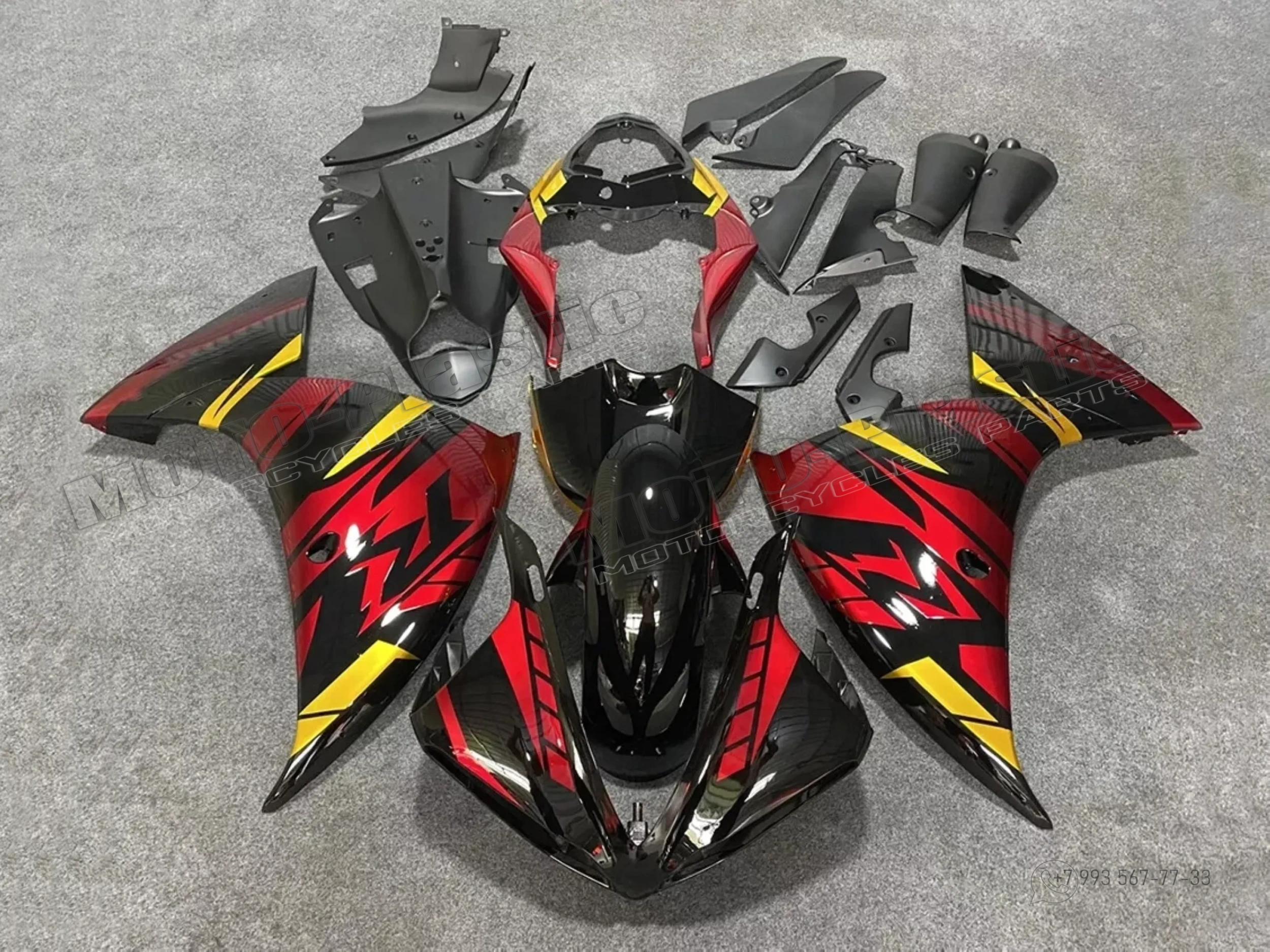 Комплект пластика Yamaha YZF R1 2012-2014 Черный Желтый Красный