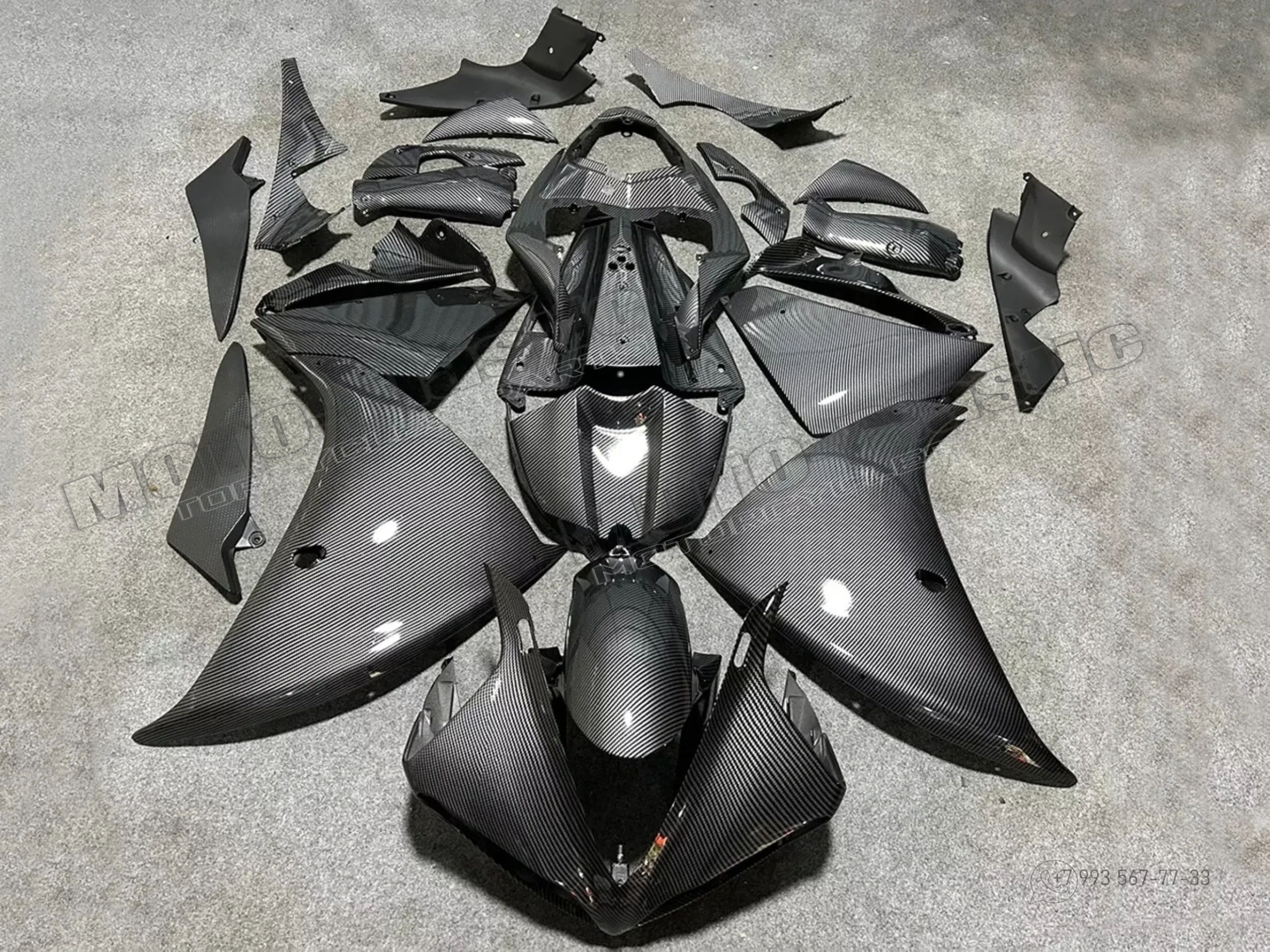 Комплект пластика Yamaha YZF R1 2012-2014 / аквапринт карбон (углеткань) Черный
