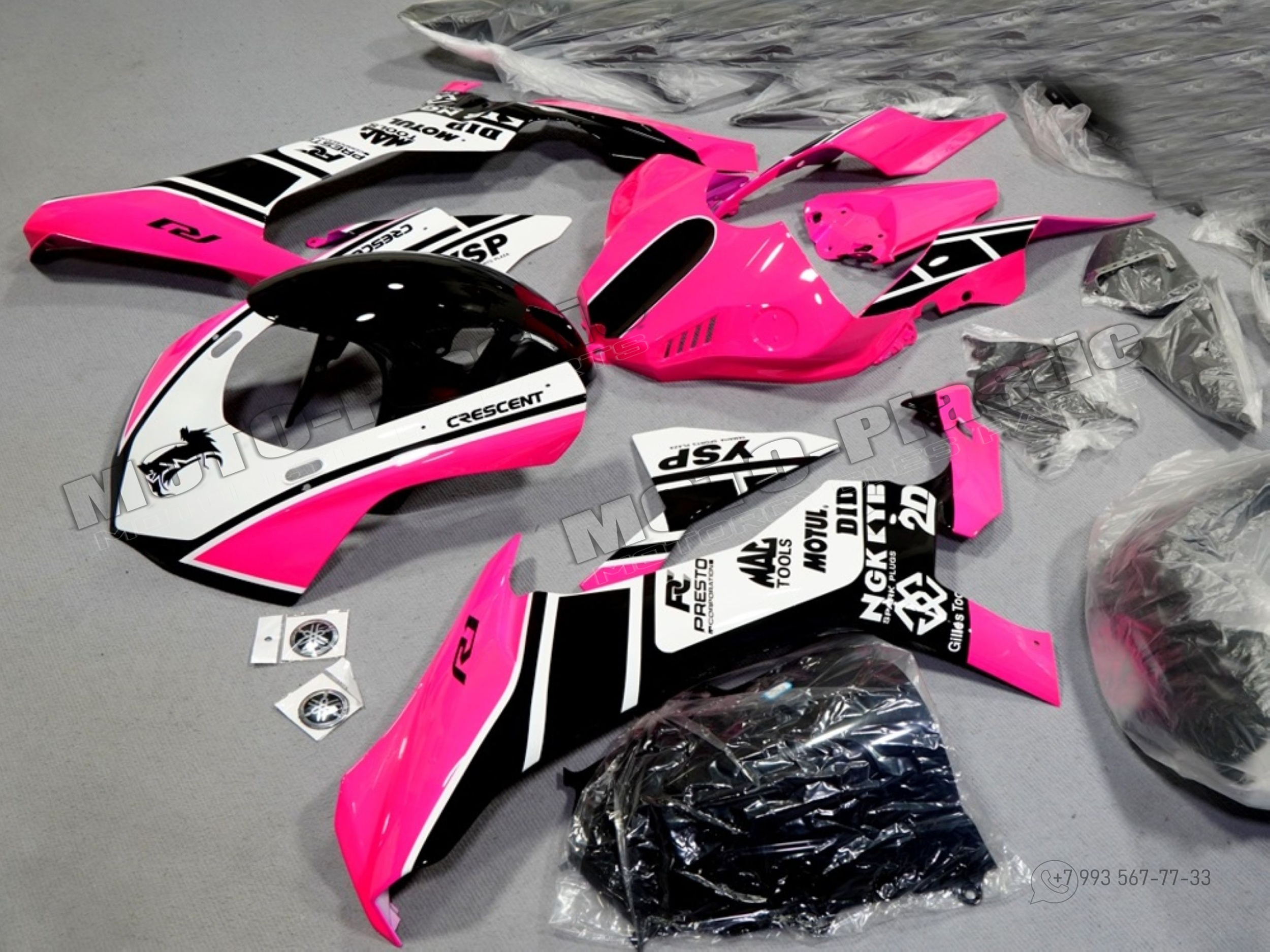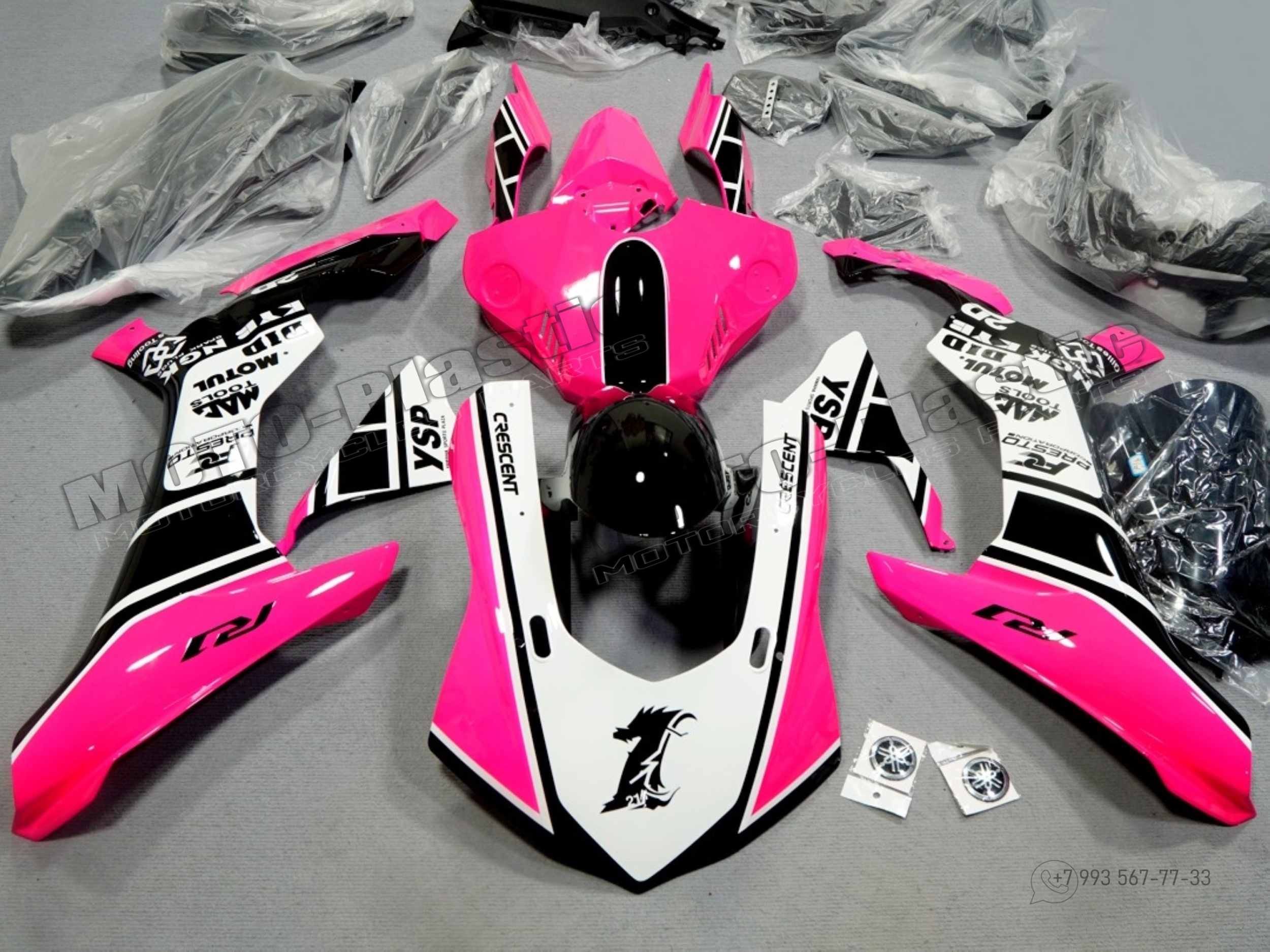 Комплект пластика Yamaha YZF R1 2015-2019 Белый Розовый Черный