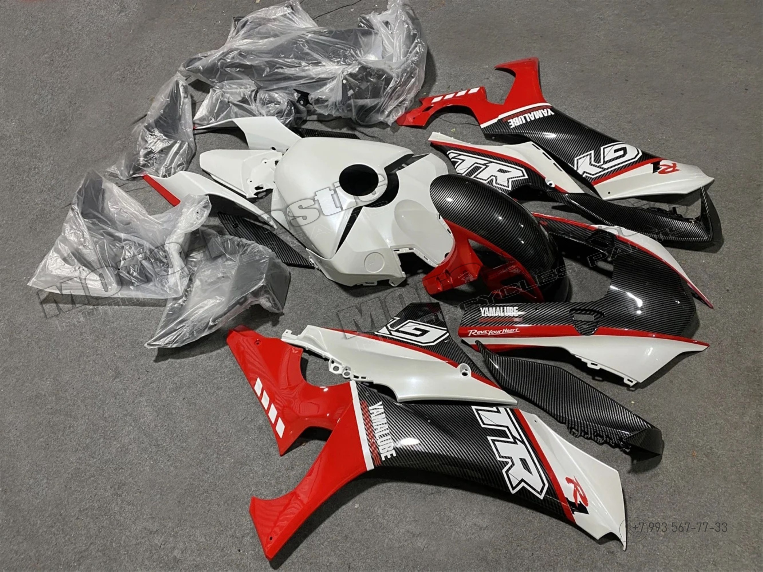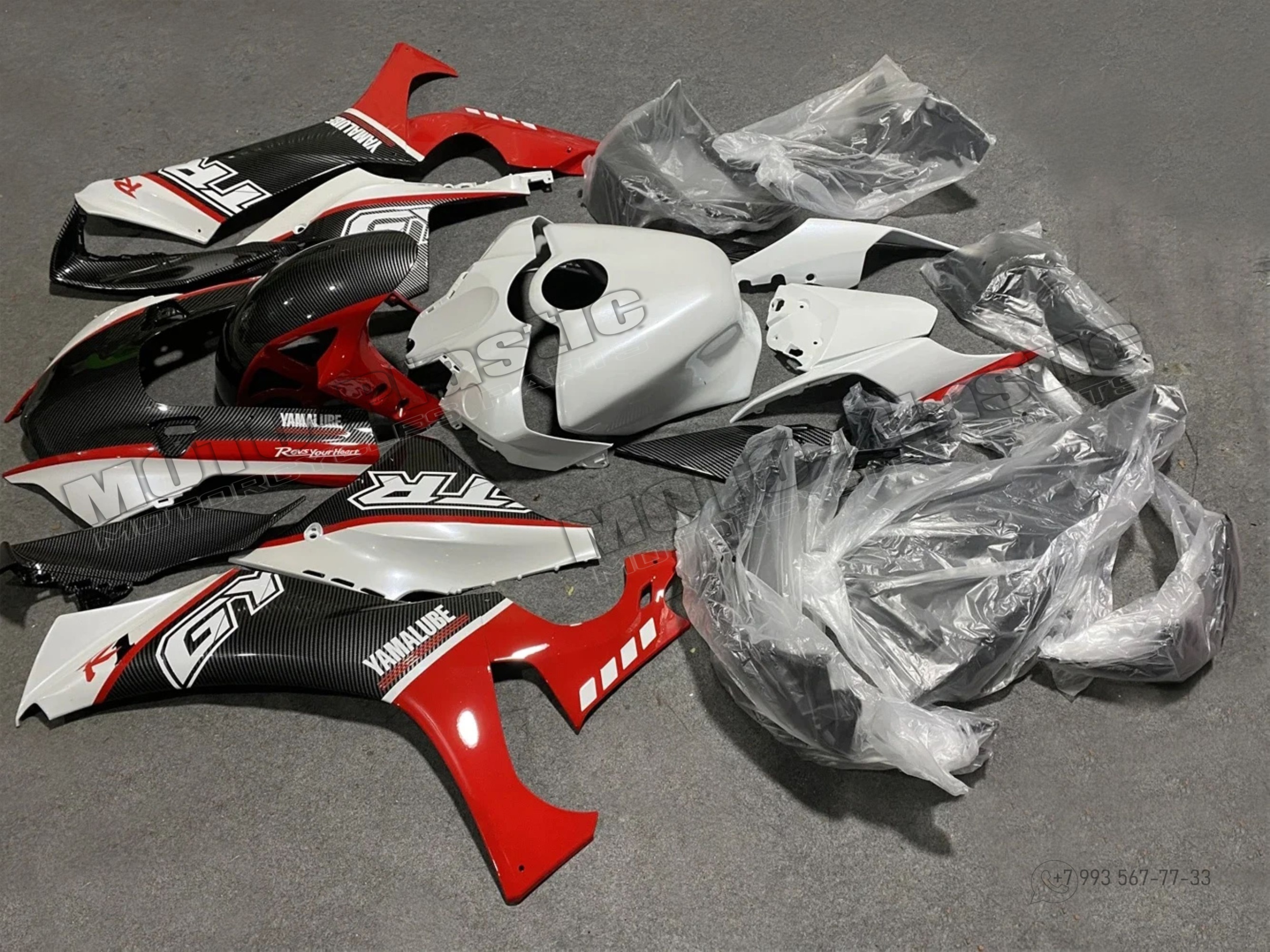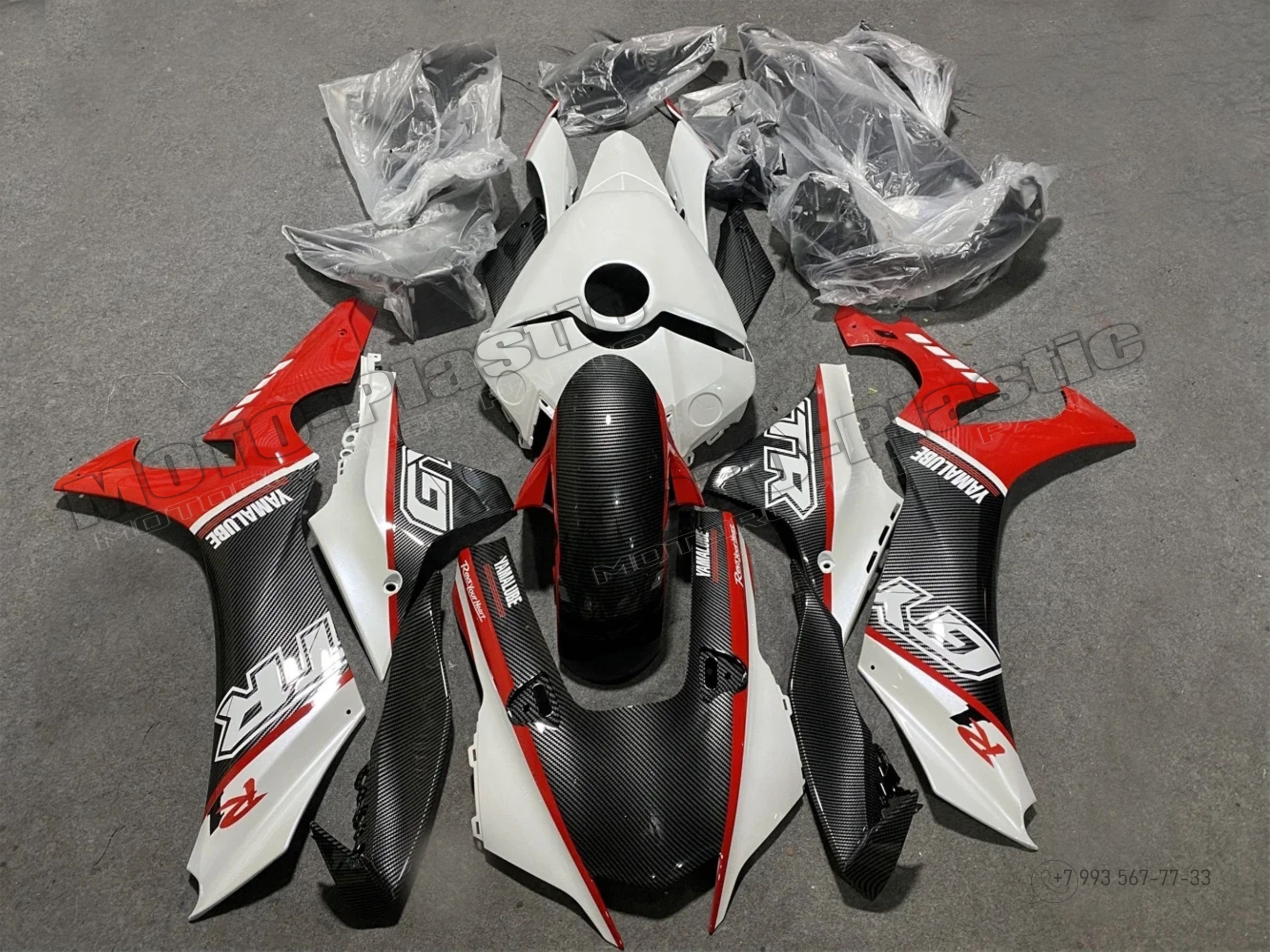Комплект пластика Yamaha YZF R1 2021-2023. Аквапринт карбон (углеткань) Карбон аквапринт Белый Красный Черный