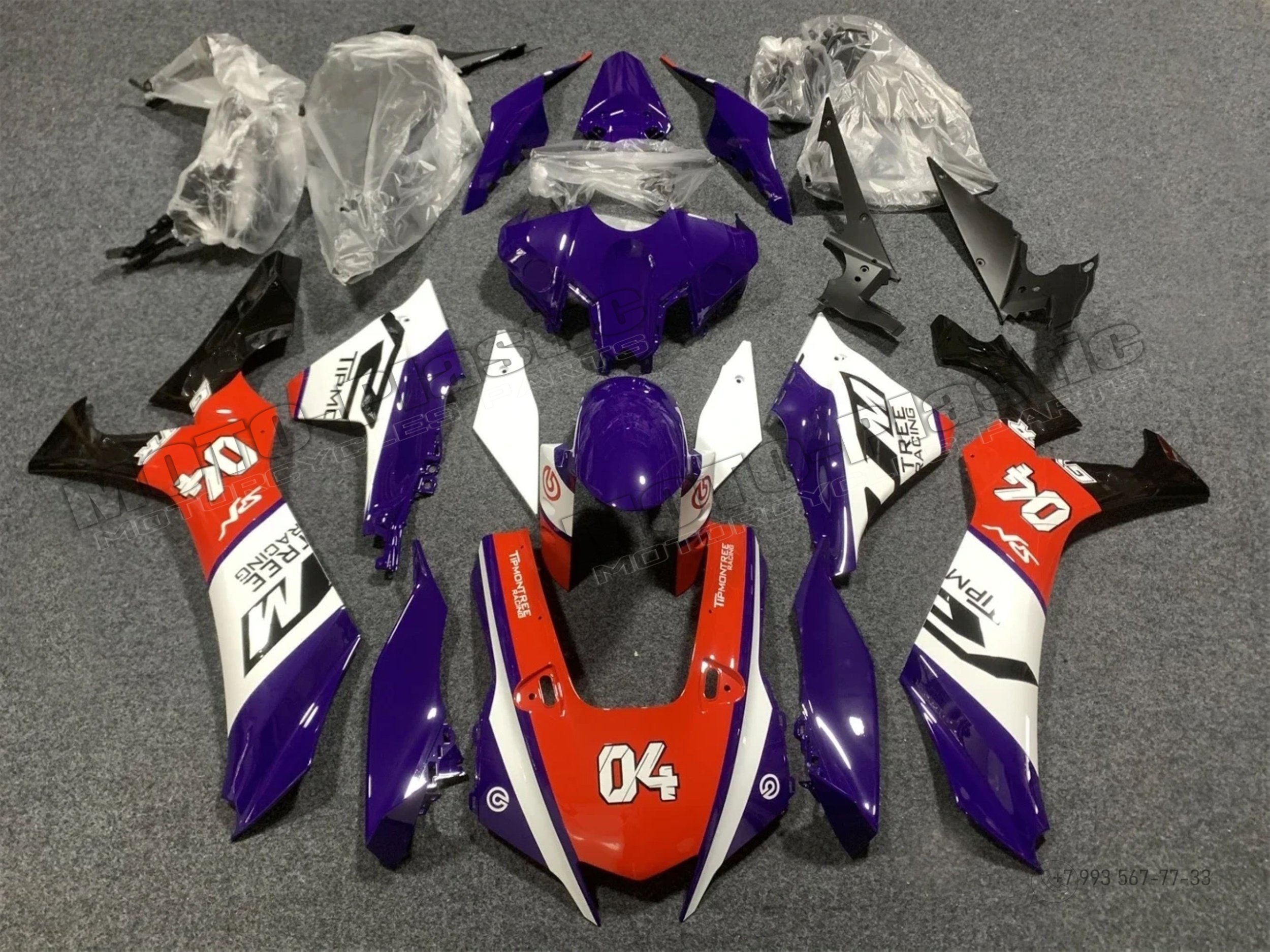 Комплект пластика Yamaha YZF R1 2021-2023 Красный Белый Фиолетовый