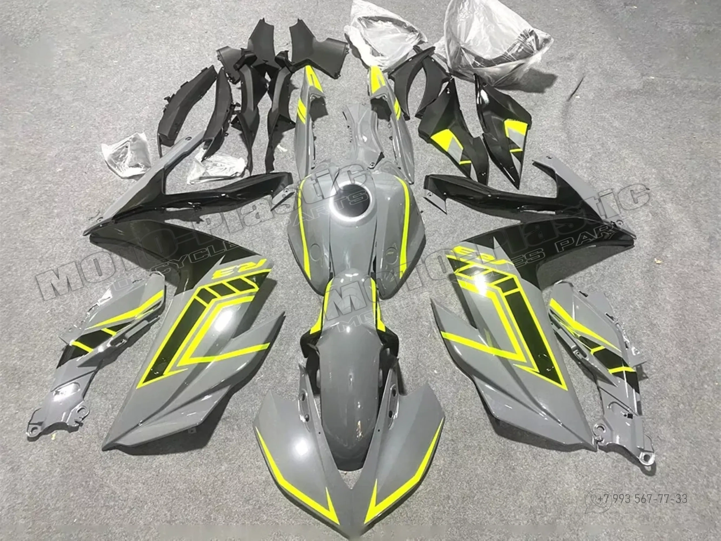 Комплект пластика Yamaha YZF R3 2015-2018 Черный Серый Желтый