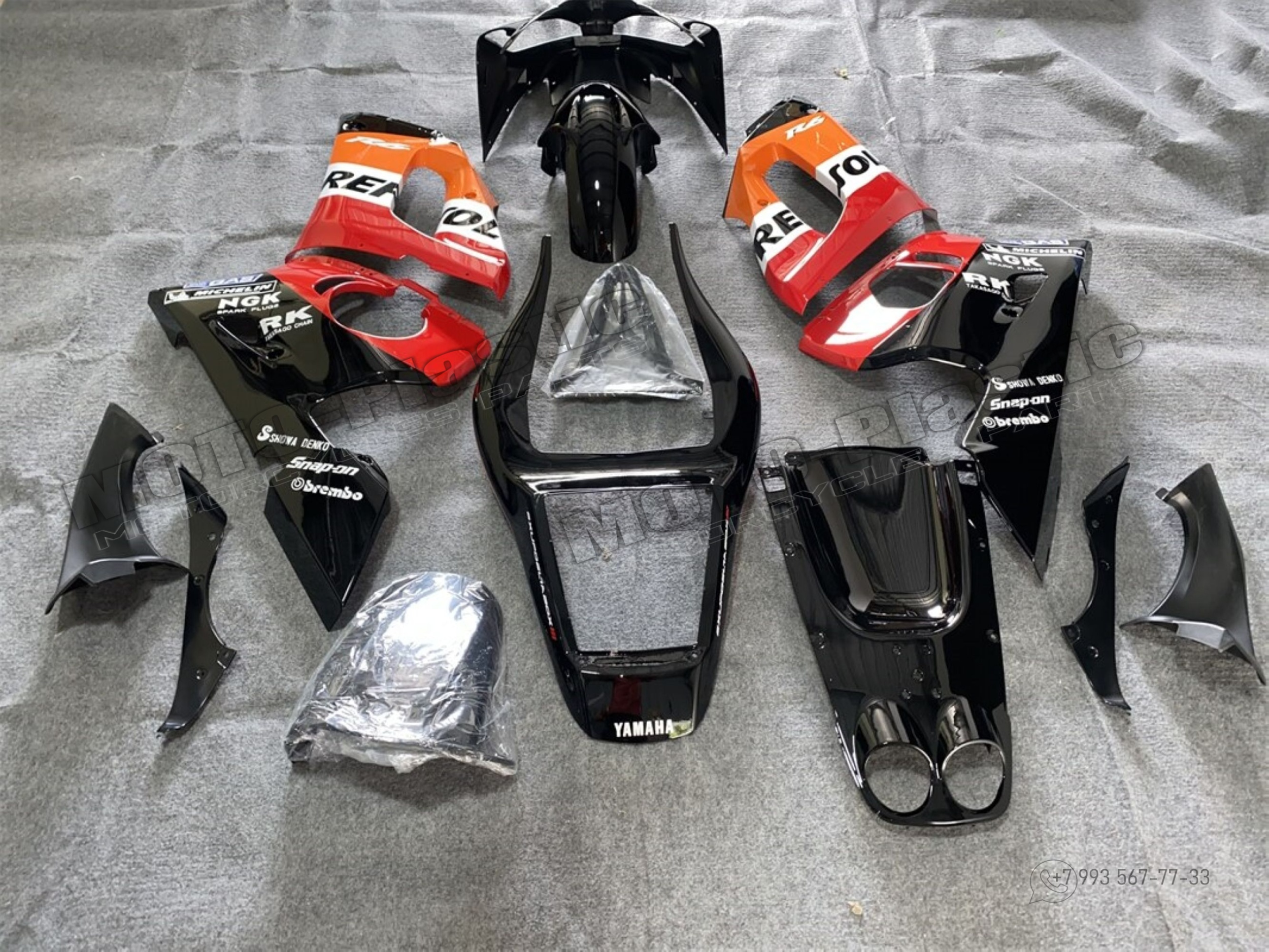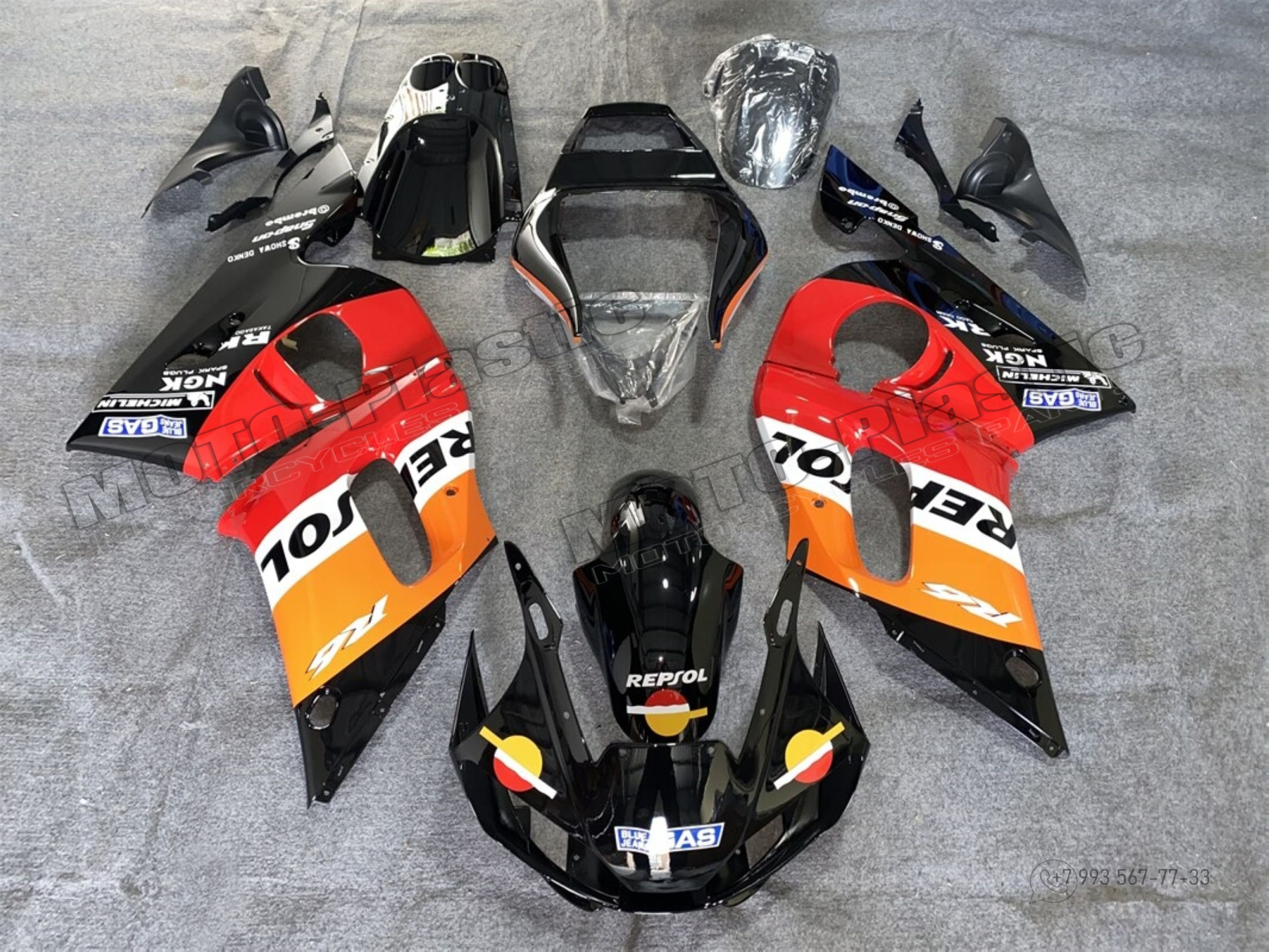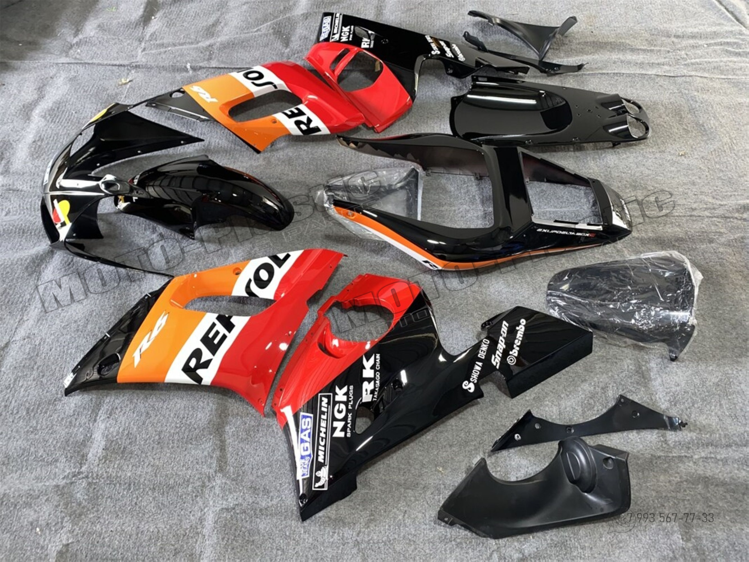 Комплект пластика Yamaha YZF-R6 1998-2002 Белый Repsol Черный Оранжевый Красный