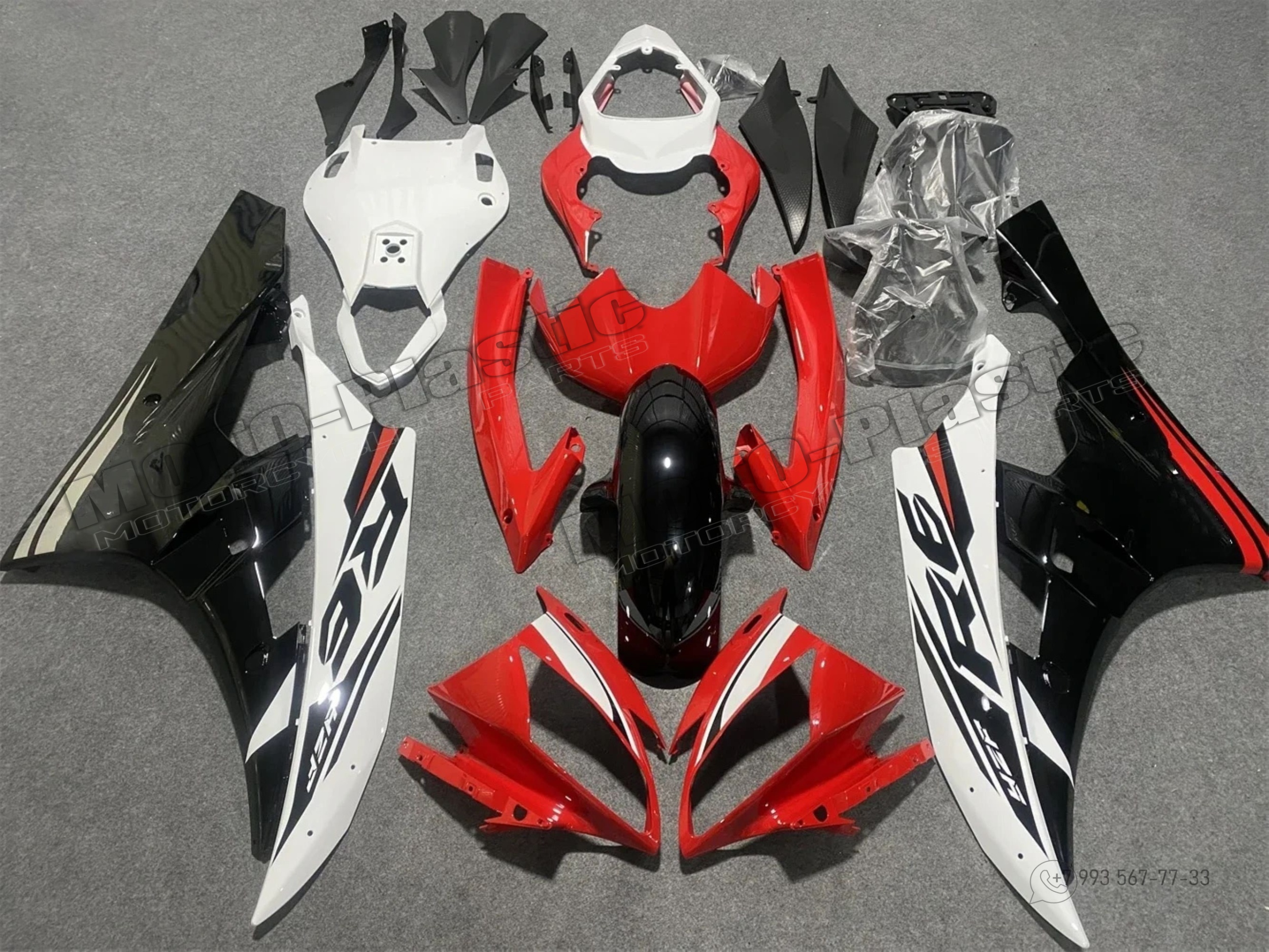 Комплект пластика Yamaha YZF R6 2006-2007 Черный Белый Красный