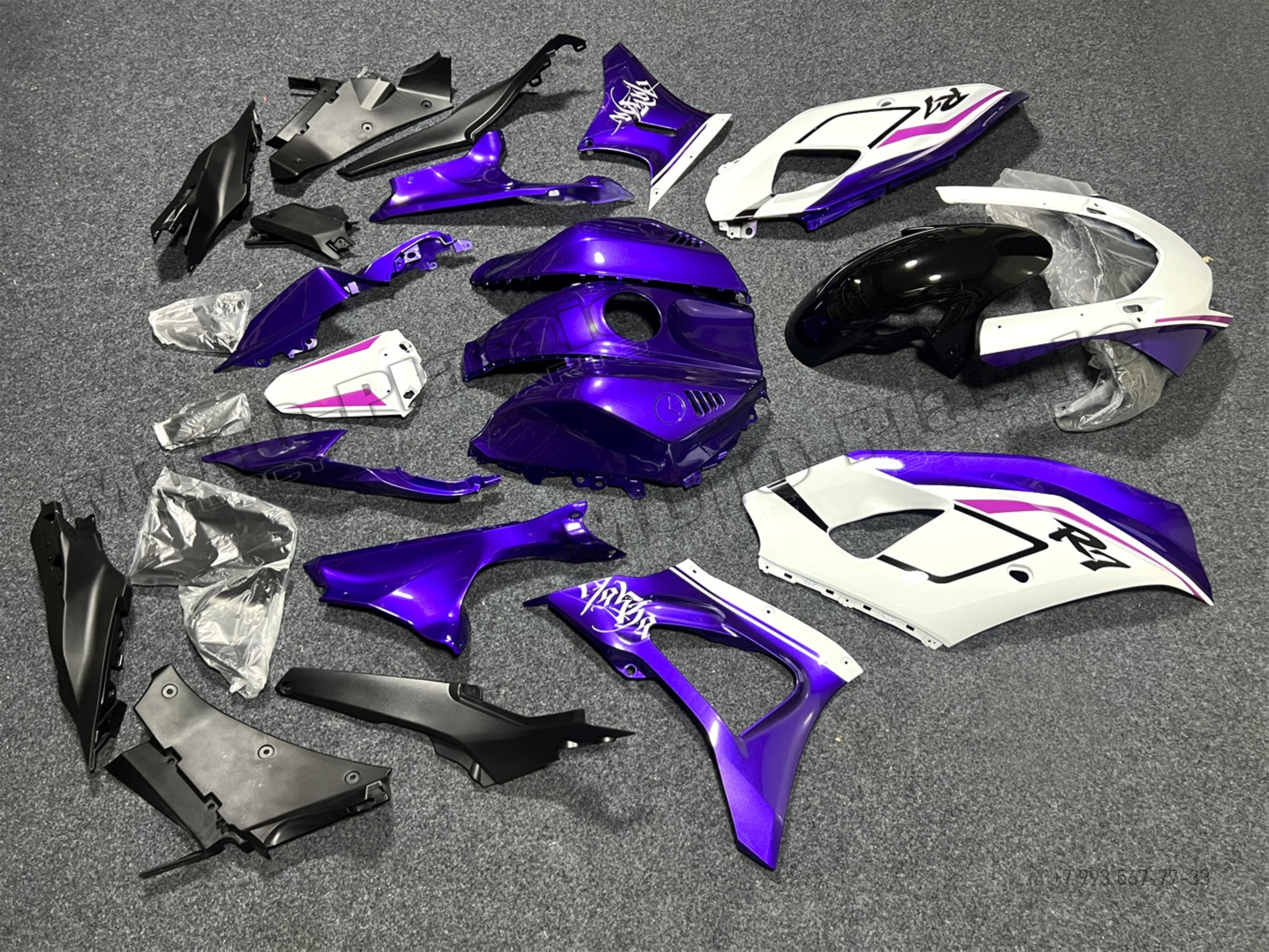 Комплект пластика Yamaha YZF-R7 2022-2023 Розовый Черный Синий Белый