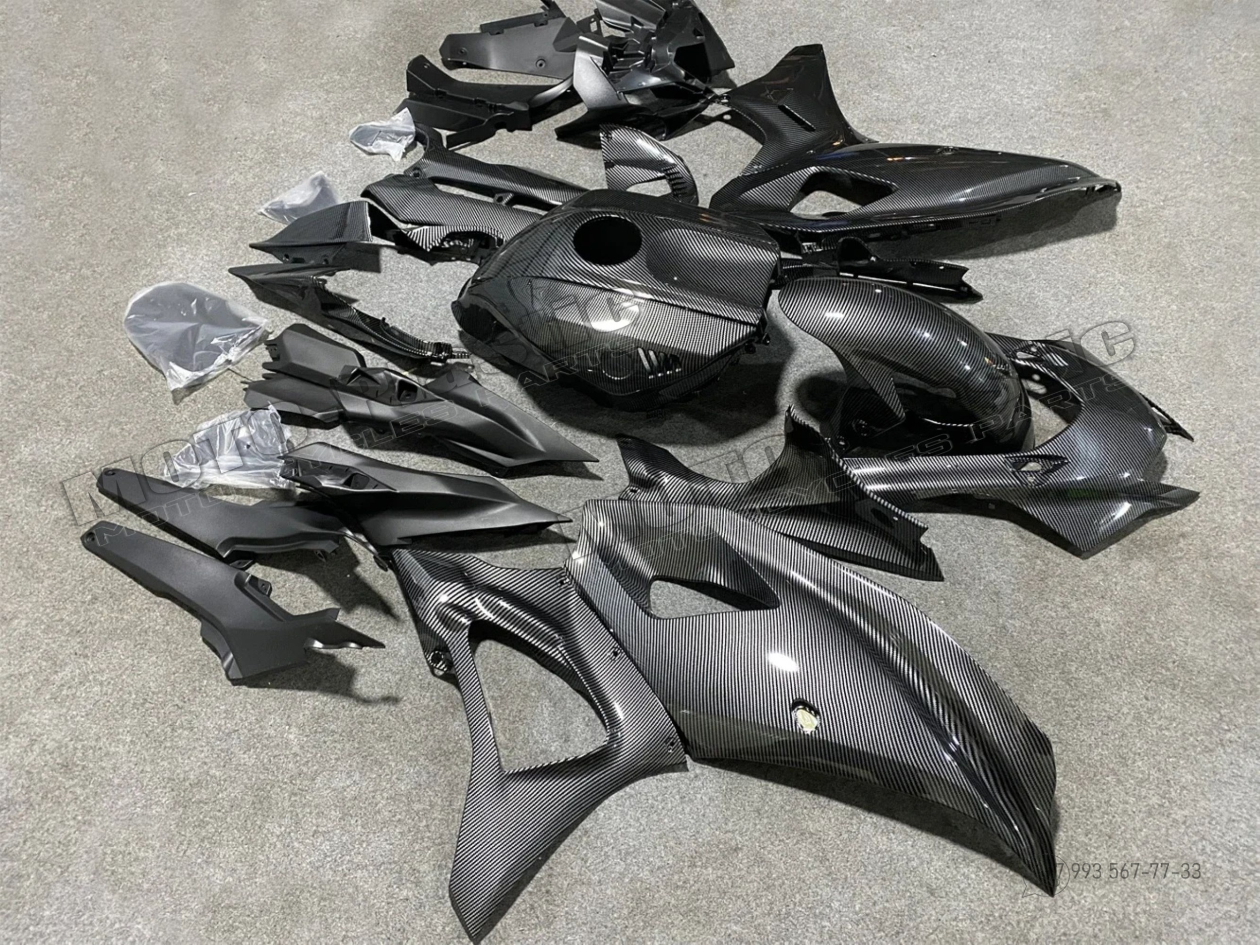 Комплект пластика Yamaha YZF-R7 2022-2023 / аквапринт карбон (углеткань) Карбон аквапринт Черный
